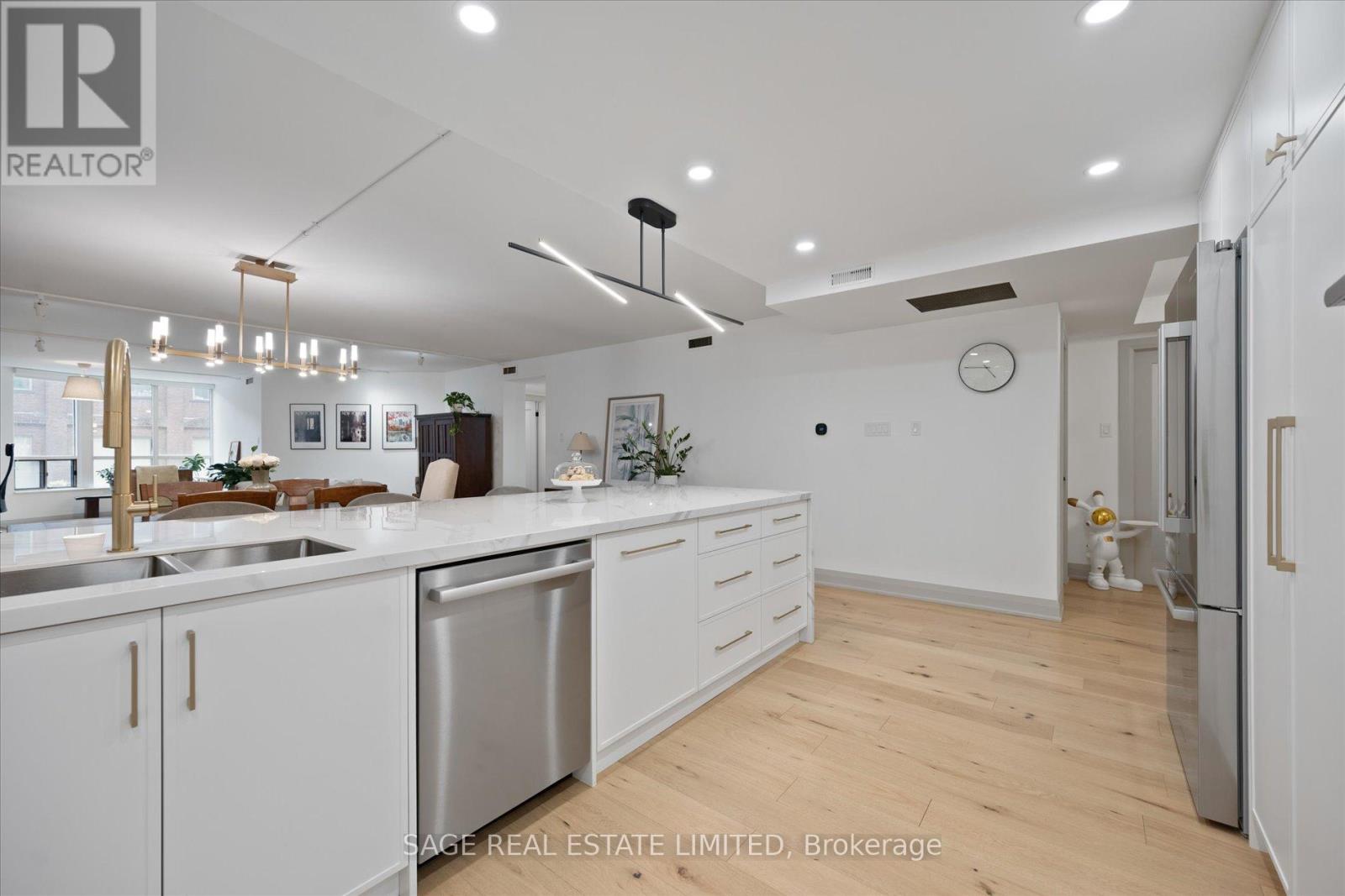 Stunning from top to bottom, this beautifully updated 2,125 sq ft luxury condo is located in an exclusive, low-rise boutique building in the heart of downtown. Featuring wide-plank 5-inch hardwood flooring throughout, the home boasts a brand-new, designer kitchen with sleek porcelain slab countertops and backsplash, premium Bosch stainless steel appliances, an induction cooktop, and an oversized island perfect for cooking and entertaining.The spacious open-concept layout seamlessly blends the kitchen, living, and dining areas, with a brilliant floor plan that maximizes every square inch no wasted space. An extra-large laundry room with a sink and generous storage completes this exceptional residence.Just steps from the iconic St.Lawrence Market, acclaimed restaurants, charming cafes, and world-class theatres, this move-in ready condo offers the space and comfort of a house with all the perks of city living. Enjoy a full suite of amenities including a pool, whirlpool, sauna, squash/basketball court, courtyard with BBQ, and fully equipped gym. (id:64974)