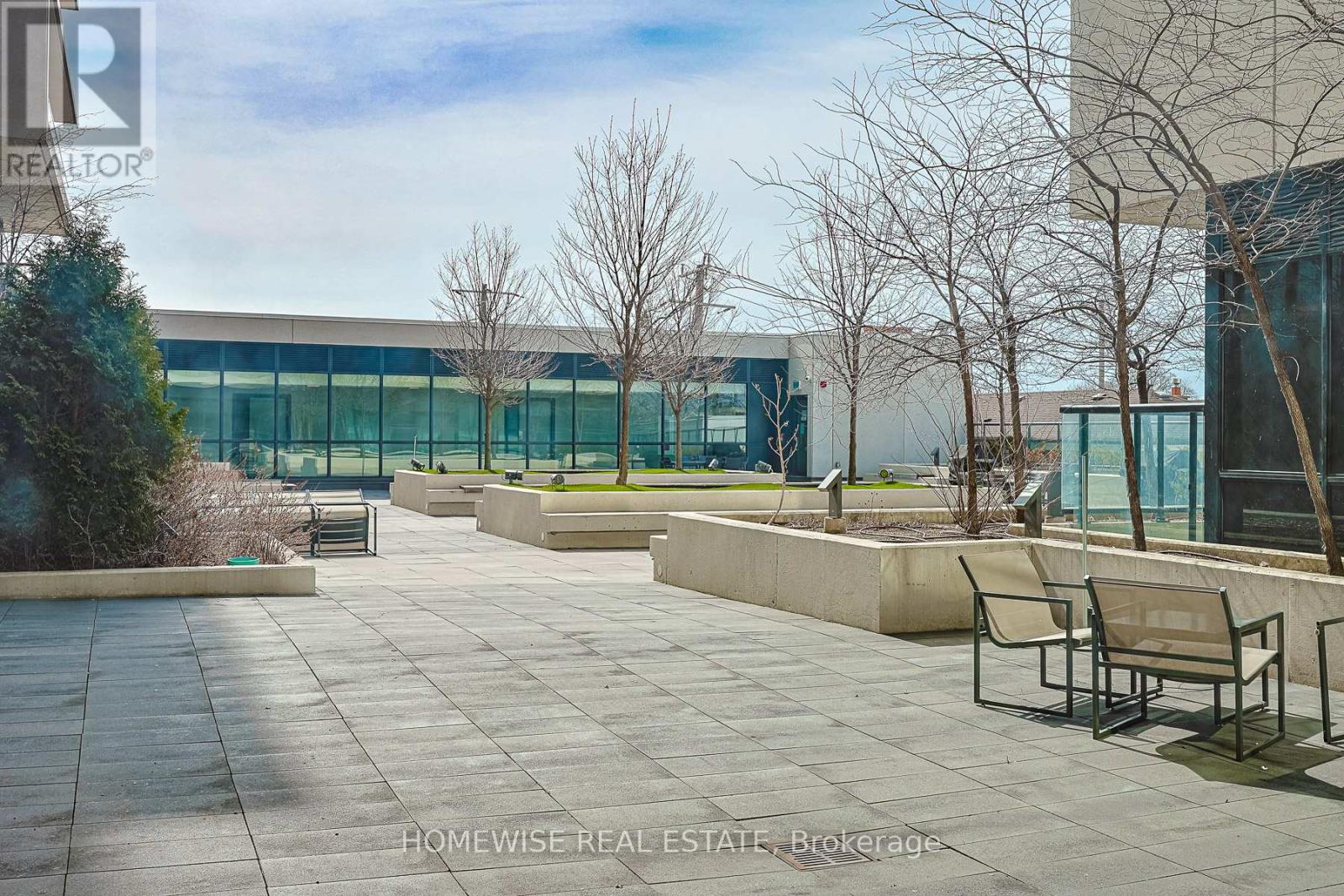 This southwest-facing corner suite is filled with natural light and offers both tranquil sunrises and breathtaking sunsets from a spacious wraparound balcony. Quietly set above a beautifully landscaped green roof with sweeping views of the Toronto skyline, this thoughtfully designed 2-bedroom plus den, 2-bath home combines comfort and style. A custom kitchen with elegant quartz countertops, engineered hardwood flooring throughout, mirrored closet doors, and a sleek glass shower in the ensuite. Enjoy the convenience of in-suite laundry and a charming built-in breakfast nook perfect for everyday living. Located just steps from the Oakwood LRT station and only a 5-minute walk to Eglinton West subway, with easy access to Forest Hill, cafes, restaurants, parks, and the 401. Exceptional amenities include a 24-hour concierge, party room with bar and chef's kitchen, fitness and yoga studio, guest suites, and an impressive rooftop terrace with BBQs. Additional features include a pet wash station, bicycle storage and repair area. (id:64974)