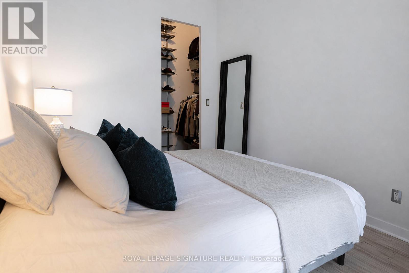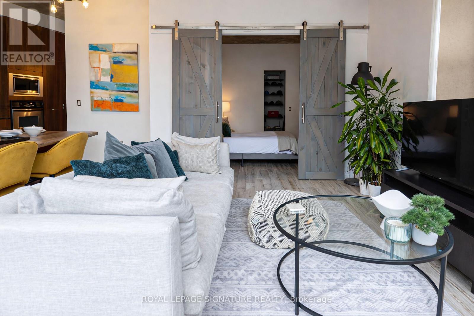 Experience the pinnacle of downtown sophistication at 23 Brant St, Unit 305. This expansive 861 sq ft soft-loft at Quad Lofts Phase II offers a rare blend of industrial edge and serene courtyard tranquility right in the heart of Toronto's vibrant Fashion District. Featuring soaring 10-ft exposed concrete ceilings and floor-to-century windows, the space is anchored by warm engineered hardwood floors that perfectly complement the authentic loft aesthetic. The heart of the home is a gourmet kitchen equipped with a built-in gas range, wall oven, and extensive storage-perfect for entertaining. Most notably, the fully enclosed den with sliding doors offers true versatility, serving perfectly as a functional 2nd bedroom or a nursery. For the modern professional, the unit features a dedicated built-in desk, creating a seamless and organized work-from-home station without sacrificing living space. Beyond the unit, you are anchored by a 100 Walk Score and immediate access to Toronto's premier lifestyle hubs. Located directly across from St. Andrew's Playground Park and just 400m from Clarence Square Dog Park, green space is always within reach. You are steps from the city's top wellness anchors, including Othership and Nutbar, with the 504 King and 510 Spadina streetcars at your doorstep. For commuters, this Metro Anchor location is only 2.2km (approx. 7 mins) from Union Station and provides rapid 8-minute access to the Gardiner Expressway via Spadina Ave, making Pearson International Airport (YYZ) an easy 28-minute drive. Families and investors will appreciate the elite school catchment, which includes Ogden Junior Public School (JK-06), Ryerson Community School (JK-08), and Parkdale Collegiate Institute (09-12), home to the prestigious International Baccalaureate (IB) Programme. With one owned underground parking space included, this property represents a high-performance lifestyle asset in one of King West's most resilient and sought-after buildings. (id:64974)