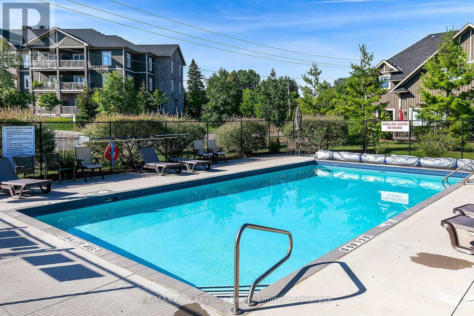 Located in the highly sought-after Far Hills community, this beautifully updated 3rd-floor, northeast-facing corner suite offers an exceptional blend of comfort, style, and lifestyle. Featuring 2 spacious bedrooms and 2 full bathrooms, the condo is filled with natural light and enhanced by 9-foot ceilings throughout. The renovated kitchen is a standout, complete with new cabinetry, quartz countertops, stainless steel appliances, and a large central island with bar seating-perfect for casual meals or entertaining. An open-concept dining and living area flows seamlessly to a generous balcony, while the private patio overlooks the peaceful park setting, creating an ideal space to relax and unwind. Additional highlights include heated underground parking with a reserved space and the confidence of renting in a well-managed, beautifully maintained community. Far Hills residents enjoy an impressive clubhouse with a swimming pool, tennis and pickleball courts, fitness room, games room, and party room. All of this is set within a well-established residential development, just minutes from Thornbury, the community centre, Georgian Peaks, and the many four-season amenities that make this area so desirable. (id:64974)