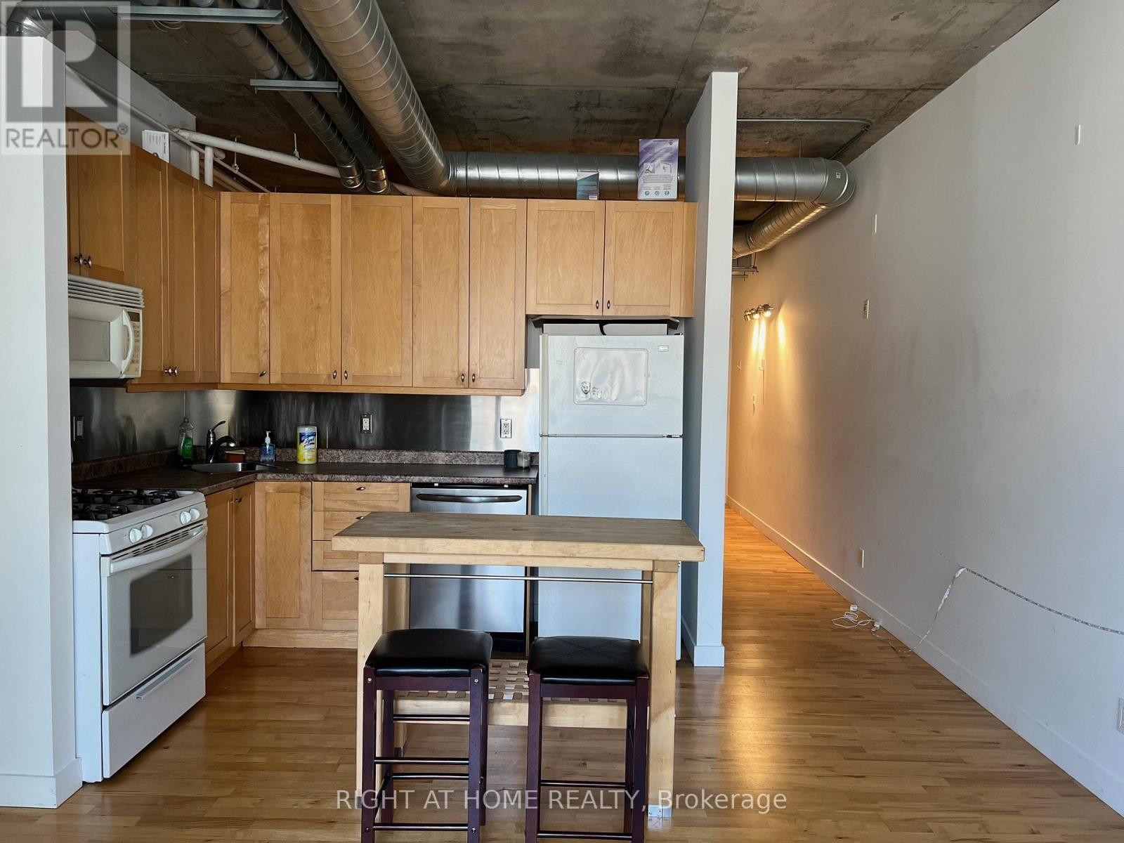 Welcome To The Stewart Lofts! Rarely Available Boutique 1 Bed Loft In The Heart Of The Fashion District, At King And Bathurst. Quiet North Facing Balcony, Floor Plan Featuring Floor To Ceiling Window With 10Ft Ceilings, Exposed Concrete Ceilings & Spiral Ductwork. Open Concept Kitchen Layout (No Column) With Gas Stove, Wood Floors Throughout, Large Bedroom With Closet. New Stainless Steel Appliances Coming! Located Across From 1 Hotel. Steps To 24Hr Ttc, Shopping, Cafes, Parks, Restaurants & Entertainment Right Outside Your Door! (id:64974)