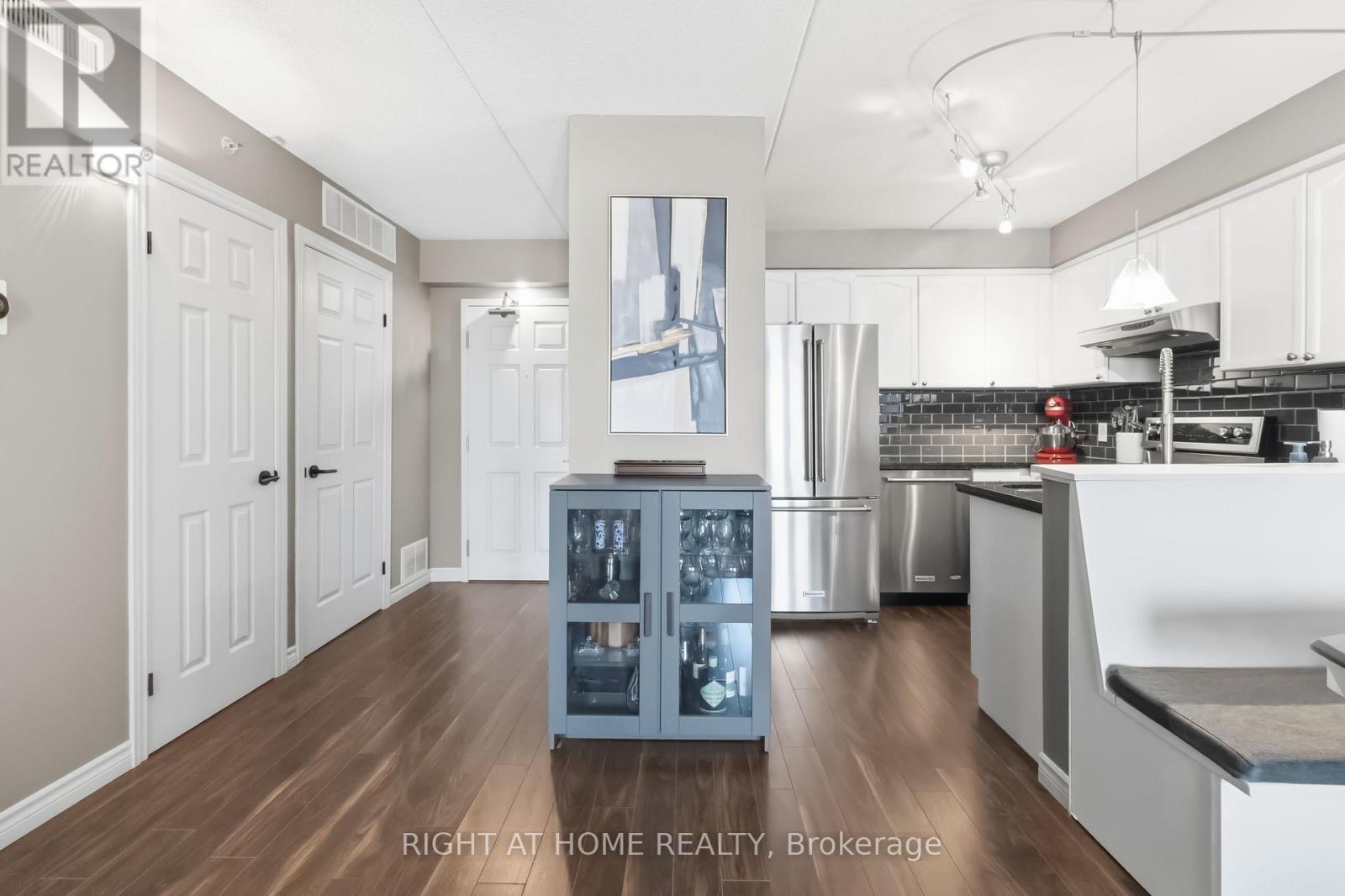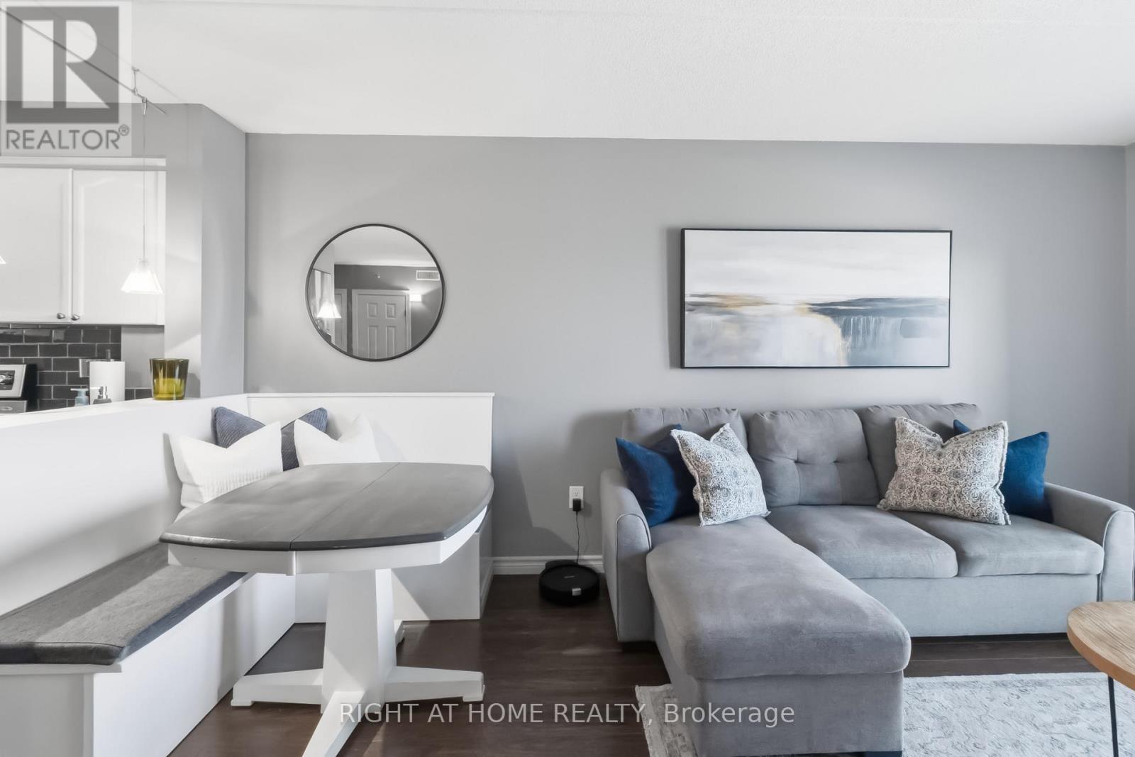 Gorgeous one bedroom condo .Open concept kitchen with Granite counters , pendant lights and stainless appliances as well as a built in seating .8' ceilings and engineered hardwood floors. Ensuite laundry and balcony .One locker and parking .Walking distance to Appleby Go (id:64974)