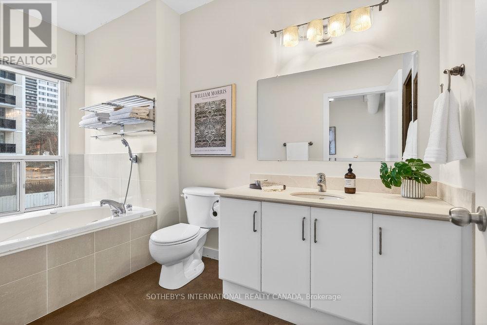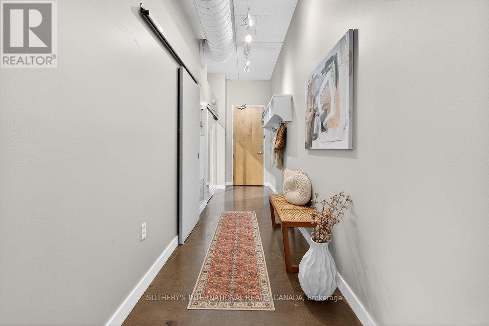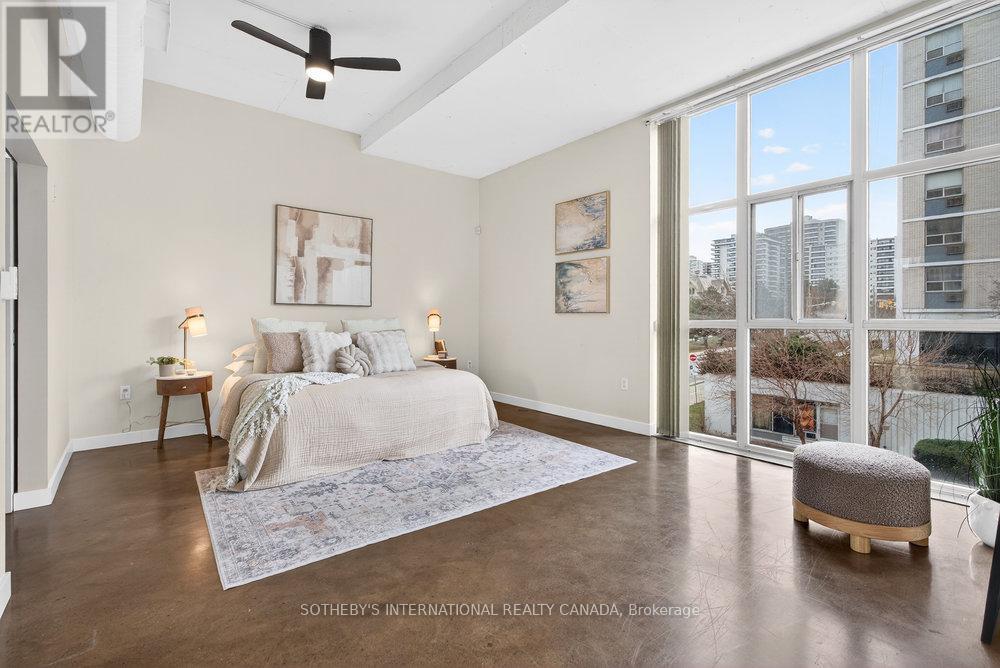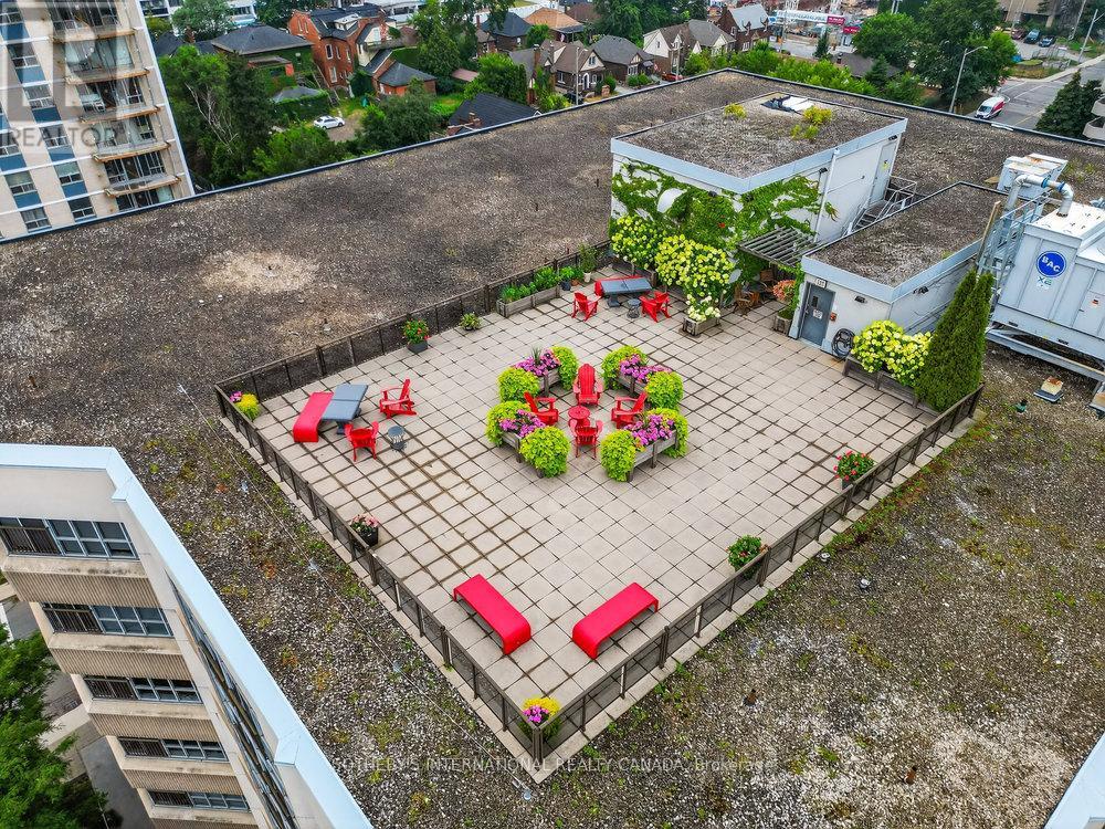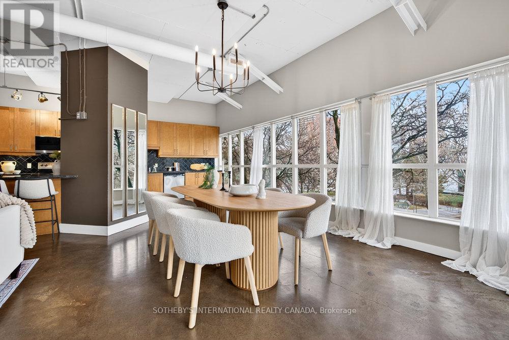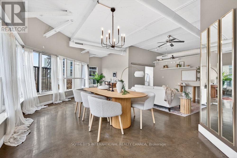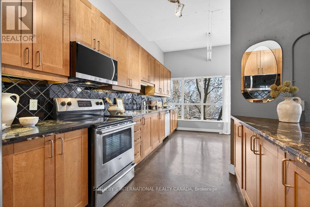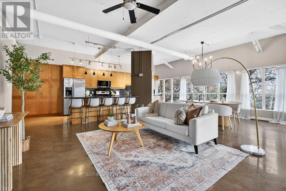 An exceptional corner loft at the sought-after Core Lofts, offering almost 1,700 sq. ft. of bright, open-concept living in the heart of downtown Hamilton. This 2-bedroom, 2-bathroom residence features 10+ ft ceilings, walls of glass, and beautiful morning sun that fills the space with natural light. The spacious kitchen is appointed with oak cabinetry and granite countertops, flowing seamlessly into expansive living and dining areas ideal for both everyday living and entertaining. The primary suite includes a spa-inspired ensuite with jacuzzi tub and oversized shower. In addition to two bedrooms, the layout includes a separate den-style alcove off the main living area, offering flexible use as a home office or sitting area. The second bedroom is interior and does not include an exterior window. Beautifully presented with a bright, clean feel throughout, this home offers effortless condo living well suited to professionals, with in-suite laundry, underground parking, and locker, in a secure, well-managed building with a fitness centre, rooftop terrace, and party room. Condo fees include heat and water, adding to the ease and convenience of day-to-day living. Enjoy a truly walkable lifestyle just steps from the newly opened TD Coliseum, along with downtown restaurants and cafés, the Art Gallery of Hamilton, Central Library, Farmers' Market, waterfront trails, GO Transit, and the vibrant communities of Locke Street South and James Street North. Convenient access to St. Joseph's Healthcare Hamilton, David Braley Health Sciences Centre, and major transit corridors makes commuting and downtown connectivity seamless. A rare opportunity to own a true loft-style corner residence offering space, light, and an effortless urban lifestyle. (id:64974)