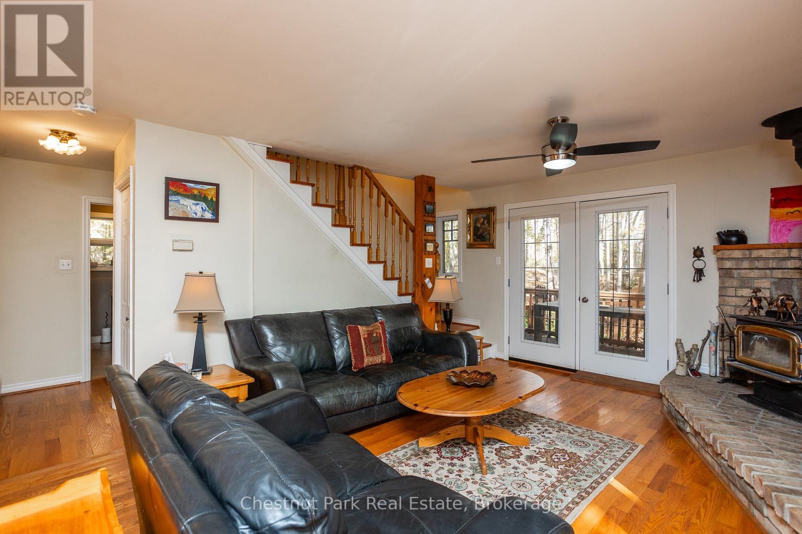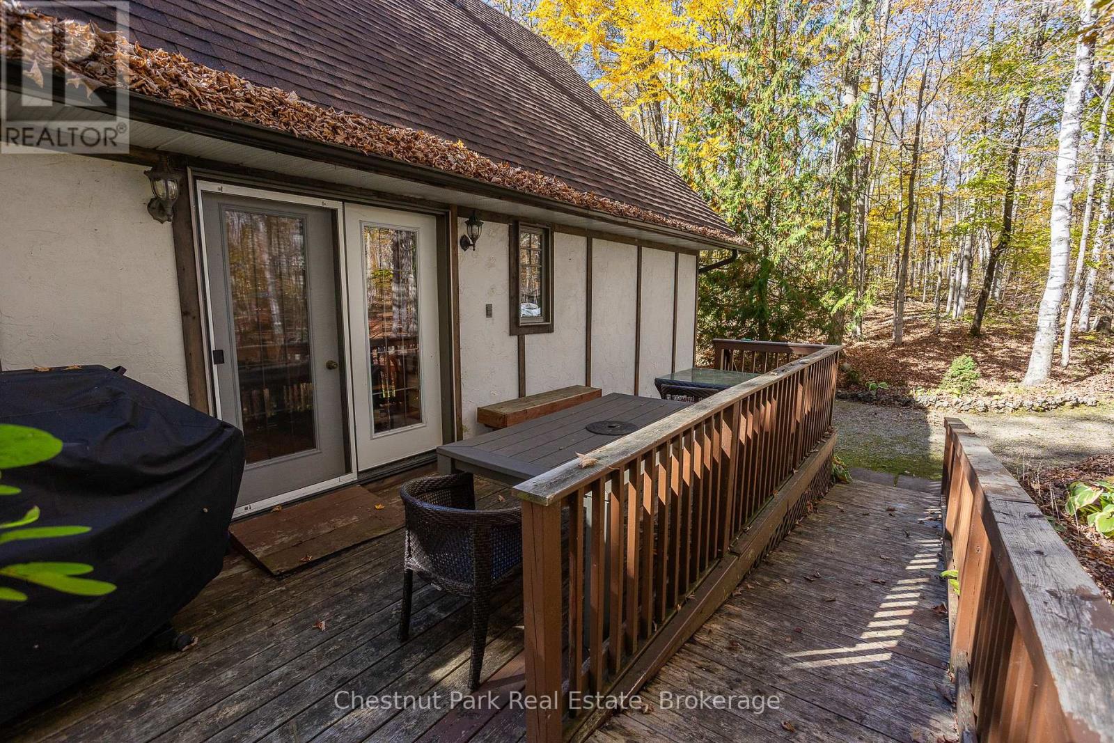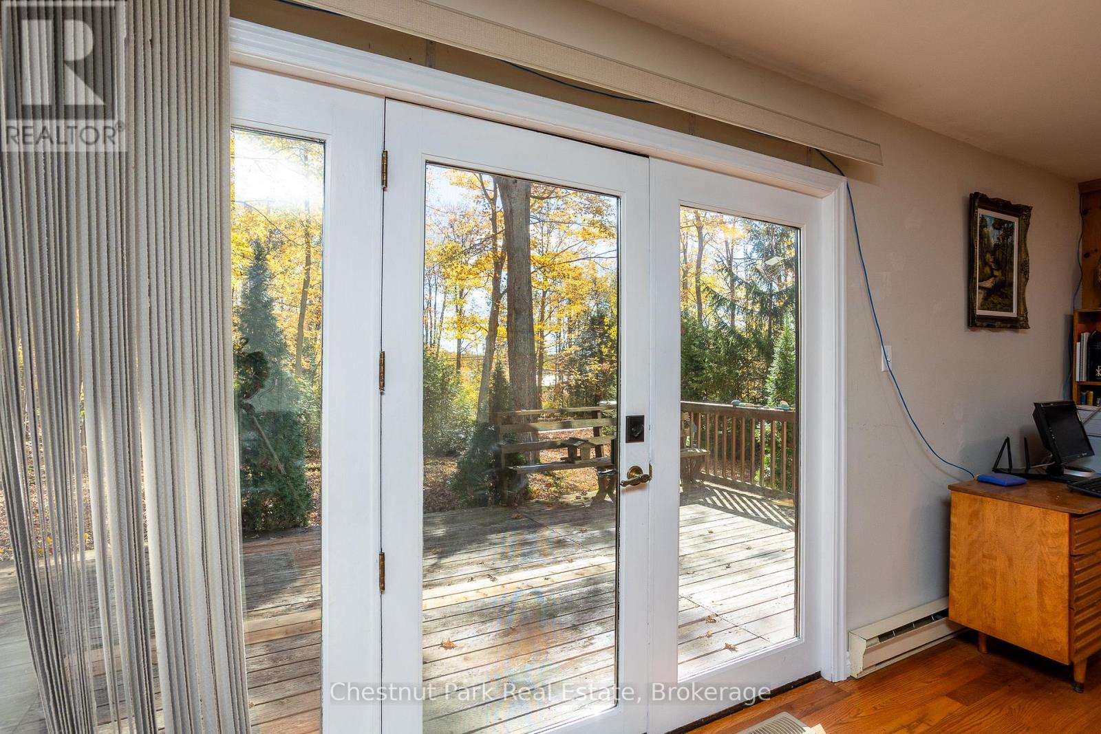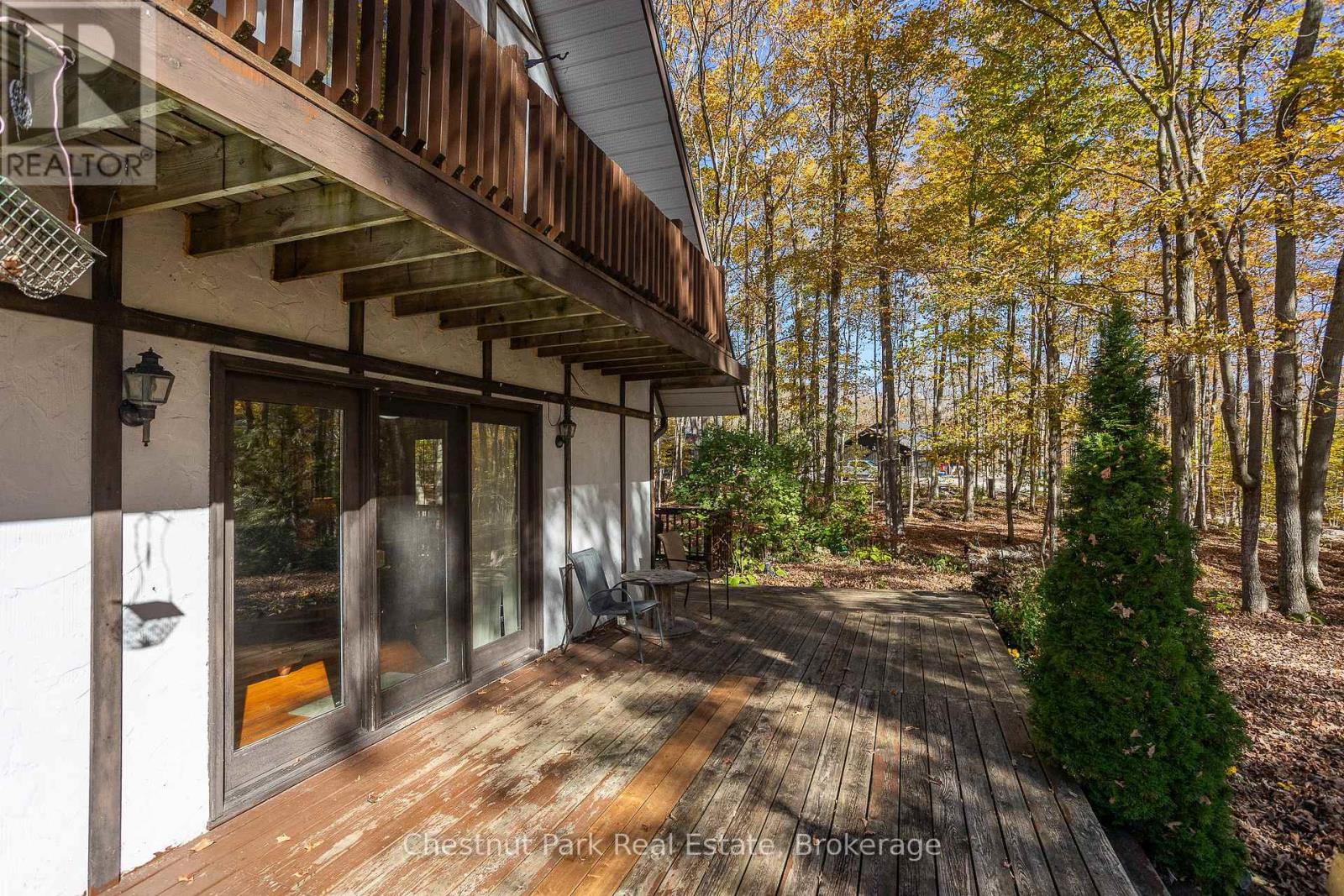 Set on a picturesque 2.3-acre hardwood lot on the beautiful Bruce Peninsula, this inviting Tudor-style four-season home or cottage offers a peaceful setting surrounded by nature, just minutes from the public boat launch on Miller Lake. With a seasonal glimpse of the water and a quiet wooded backdrop, it's an ideal retreat for those seeking privacy while remaining close to outdoor recreation. Inside, the home is bright and welcoming, featuring an open-concept living space with large windows that fill the interior with natural light. Hardwood floors add warmth and character, while the cozy wood stove creates the perfect gathering place on cooler evenings. The main level offers convenient everyday living, while the upper floor provides two additional generously sized bedrooms along with a well-appointed 3-piece bathroom. The attached 25' x 27' garage offers excellent space for vehicles, tools, and recreational gear, with a spacious bonus area above that could serve as a recreation room, studio, or creative workspace. A separate driveway includes RV parking complete with a hydro hook-up, while a large storage shed with dedicated wood storage adds further practicality for year-round use. Outdoors, the wrap-around deck with ramp access provides a wonderful place to relax and take in the peaceful surroundings. Wander along your own woodland trails, enjoy evenings gathered around the fire pit beneath the stars, or explore the nearby waters of Miller Lake, well known for swimming, boating, and fishing. Beautiful perennial rock gardens add colour and charm to the landscape throughout the warmer months. Whether you're searching for a year-round residence or a relaxing Peninsula getaway, this tranquil property offers space, privacy, and easy access to the natural beauty the Bruce Peninsula is known for. (id:64974)