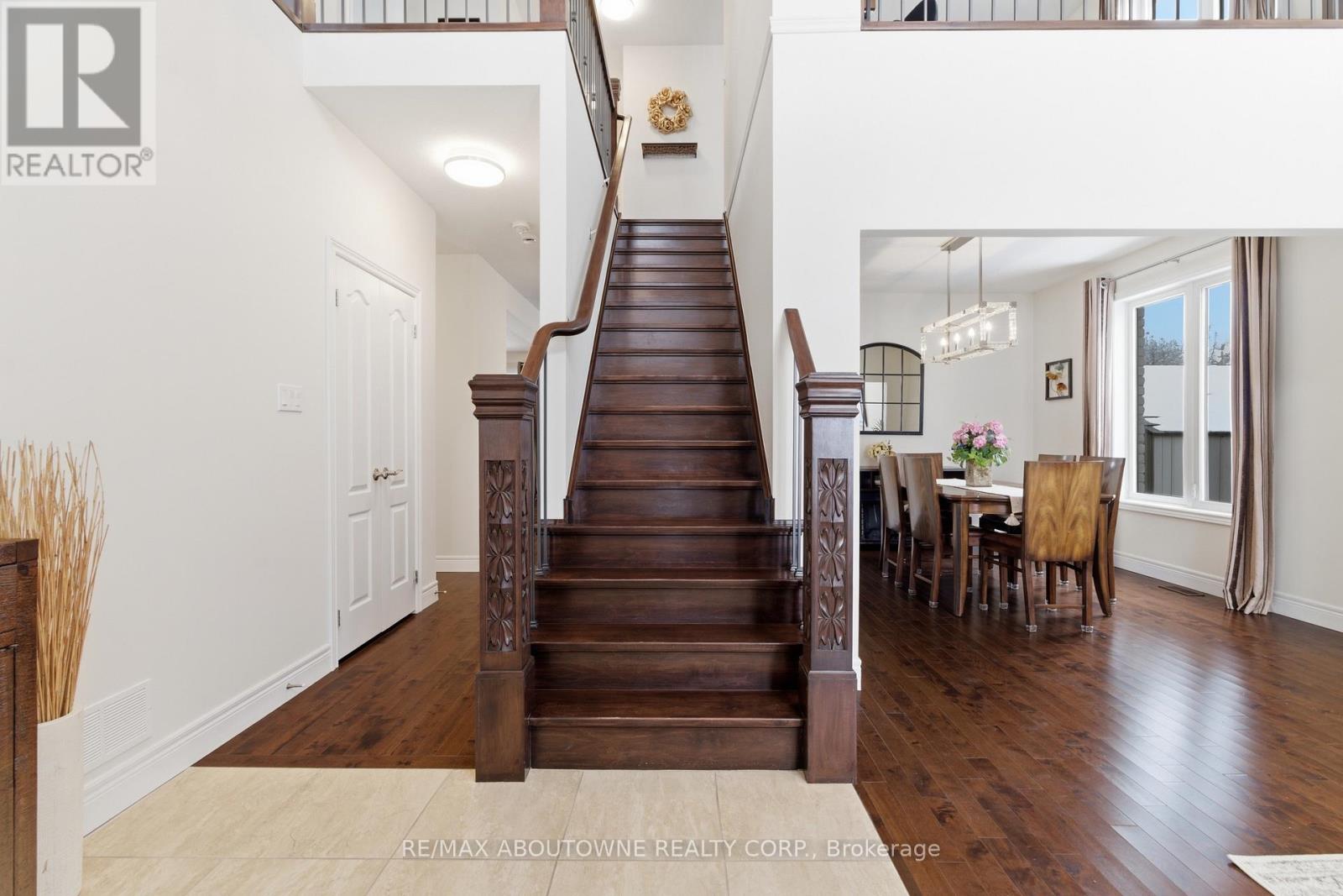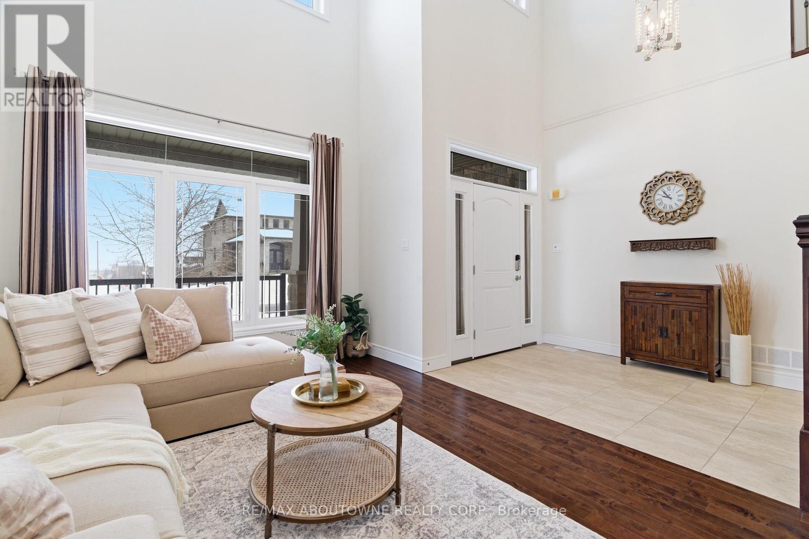 Welcome to 305 Gosling Gardens, a beautifully crafted home offering over 2,600 sq ft of living space, built by the reputable Thomasfield Homes. This residence showcases timeless design, thoughtful upgrades, and meticulous care throughout. Curb appeal is immediately evident with a double-car garage, a concrete-finished driveway accommodating up to four vehicles, a wide front porch, and a beautifully landscaped front garden.Step inside to a striking open-to-above foyer that fills the home with natural light and creates an impressive sense of space. The main level features a warm and inviting family room with a built-in fireplace. The kitchen is both elegant and highly functional, featuring a cooktop stove, premium Bosch appliances, and a large centre island. The bright breakfast area overlooks the backyard, making it ideal for family meals and entertaining. A formal dining room, living room, laundry room, and powder room complete this well-designed main floor. Upstairs, a rare open-to-below home office overlooks the foyer, offering a bright and inspiring work-from-home space. The primary bedroom retreat boasts a spacious walk-in closet and a well-appointed ensuite with double sinks. Two additional generously sized bedrooms share a Jack-and-Jill bathroom, creating an ideal layout for families. Step outside to enjoy a rare pie-shaped lot fully fenced yard, highlighted by double decks with a professionally built, remote-controlled motorized gazebo, nearly $4K investment and offering adjustable shade for comfortable, all-season outdoor enjoyment. Ideally located in Guelph's sought-after south end, this home is close to everyday amenities and future growth, including the upcoming South End Community Centre and Bishop Macdonell Catholic Secondary School, with quick access to Highway 401 for commuters. A true hidden gem combining quality construction, elegant design, and an exceptional location-305 Gosling Gardens is a home you'll be proud to call your own. (id:64974)