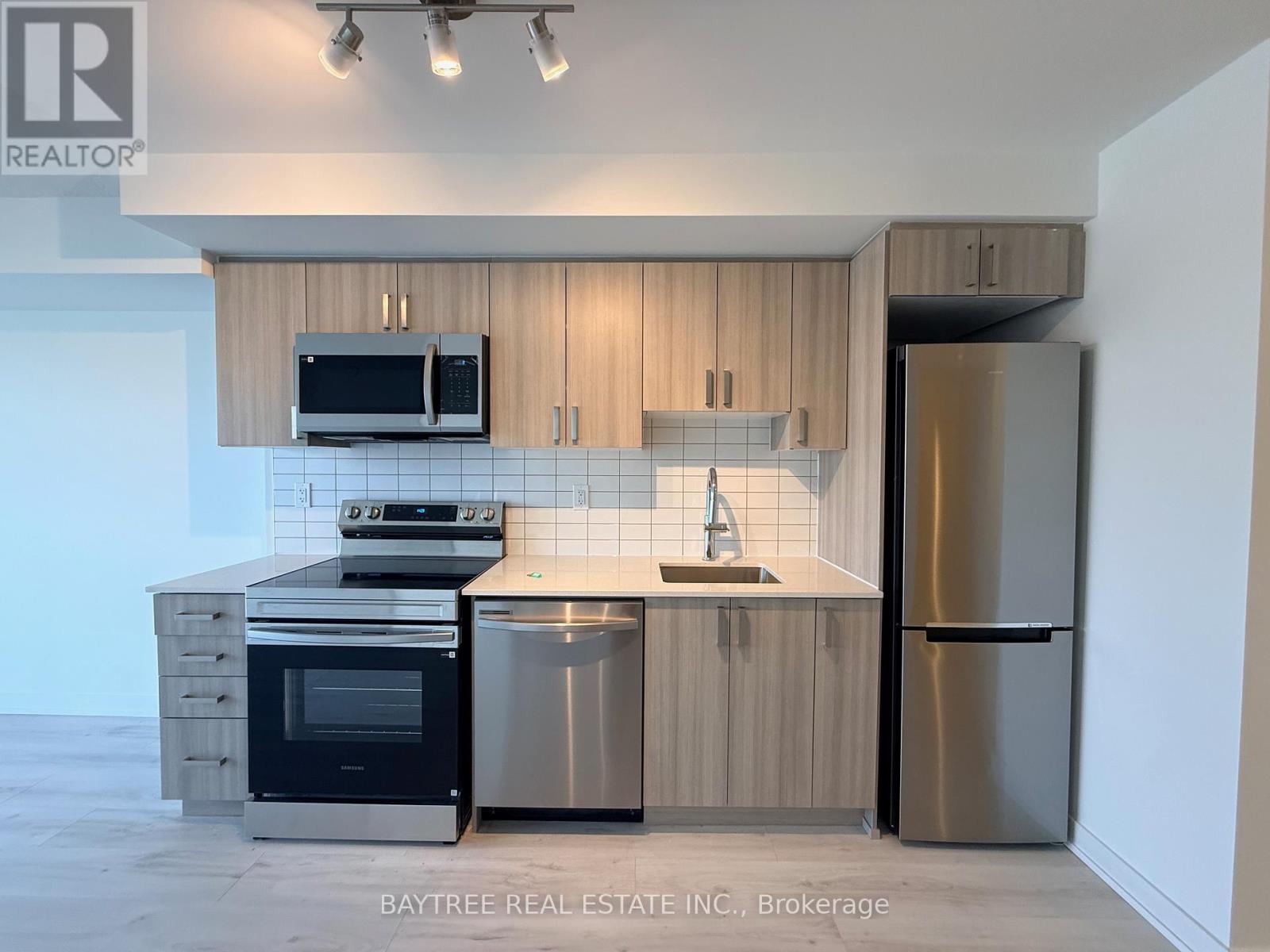 Welcome to this brand-new 1-bed + Den, 1-bathroom suite on the 3rd floor of Universal City East Condos, ideally located in Pickering's highly desirable Bay Ridges community. Offering 571 sq. ft. of bright, open-concept living space, this modern unit features smooth ceilings, expansive windows, and abundant natural light throughout.The thoughtfully designed layout maximizes both space and functionality, making it perfect for professionals or couples. Step out onto your private balcony and enjoy unobstructed lake views - an ideal setting for morning coffee or relaxing evenings overlooking Lake Ontario.The suite includes in-suite laundry, contemporary finishes, and a spacious open-concept living and dining area designed for comfortable everyday living. Rogers internet is included, adding excellent value and convenience.Residents enjoy premium building amenities including 24/7 concierge and security, a fully equipped fitness centre, and an outdoor pool, offering an elevated lifestyle experience.Conveniently located just minutes from Pickering GO Station, Highway 401, and Pickering Town Centre, this home provides seamless connectivity to Toronto and beyond. A fantastic opportunity to experience modern waterfront living in one of Pickering's most vibrant communities. (id:64974)