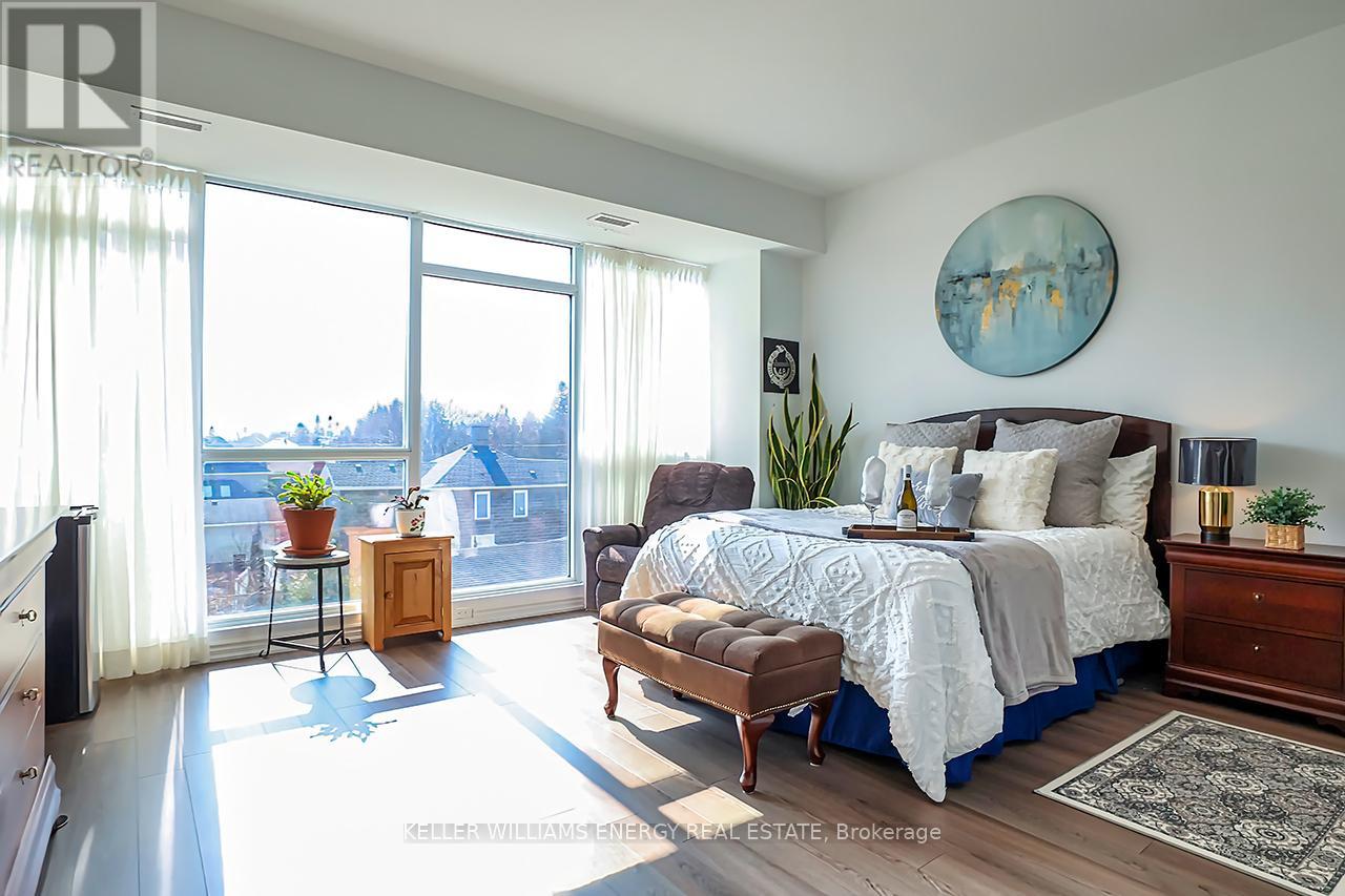 Welcome to modern low maintenance living in picturesque downtown Newcastle! This bright and inviting 2 bedroom 2 bathroom corner unit condominium offers the perfect blend of comfort, convenience and small town charm. You'll enjoy 1540 sq ft of open concept living, floor to ceiling windows and high quality finishes all within walking distance to grocery stores, shopping, pubs, and the public library. The bright spacious kitchen welcomes you with a large island, stone countertops, and luxury vinyl plank flooring throughout. The master bedroom offers two walk in closets, and a 3 piece en suite bathroom for extra storage and a relaxing place to retire to at the end of the day. The second bedroom is bright and spacious with two windows. In suite laundry, underground parking, and 9 foot ceilings are only a few of the many features that you can expect with this lovely home. A perfect fit for busy professionals and downsizers alike. (id:64974)