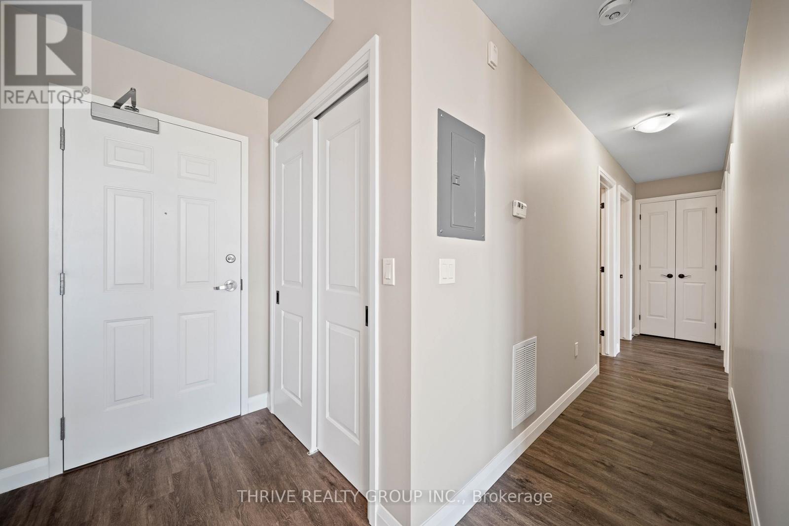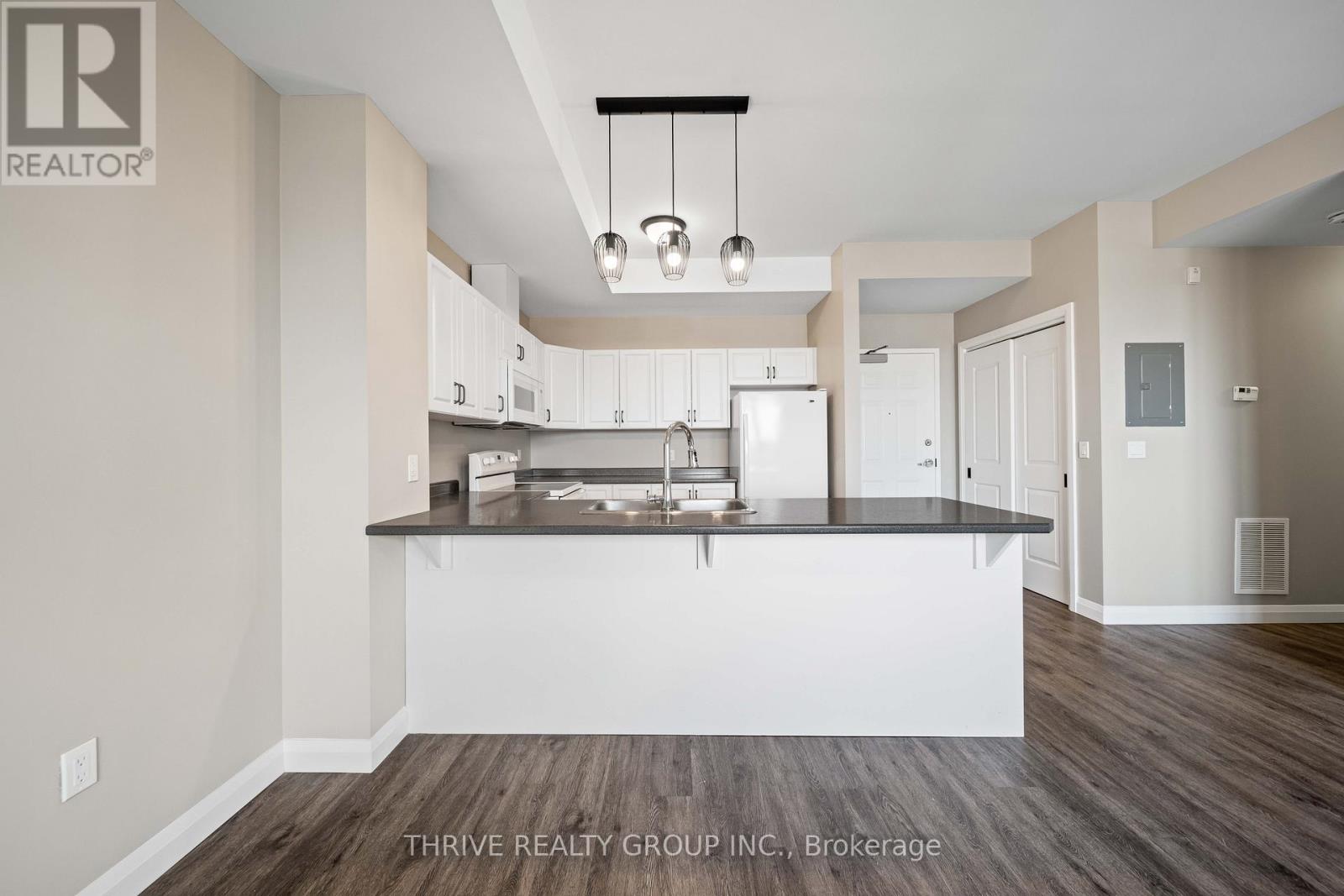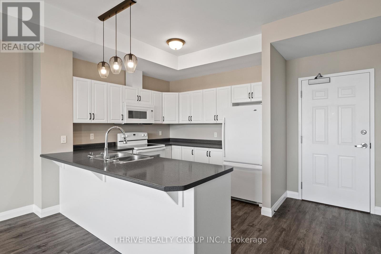 Whether you're entering the market or downsizing, this 2-bedroom condo is the perfect fit. Featuring soaring ceilings, expansive windows, and an open-concept layout, the space feels bright and inviting. Enjoy large bedrooms, ample storage, premium plank vinyl flooring, and clean, modern finishes throughout. The kitchen offers crisp white cabinetry with soft-close features, all major appliances, and a peninsula island that seamlessly connects to the living area. Start your day with coffee on your quiet, private patio as the sun rises. Bonus storage room included! More than just a condo, this building offers a true sense of community with everyday conveniences close by. Come see it for yourself! (id:64974)