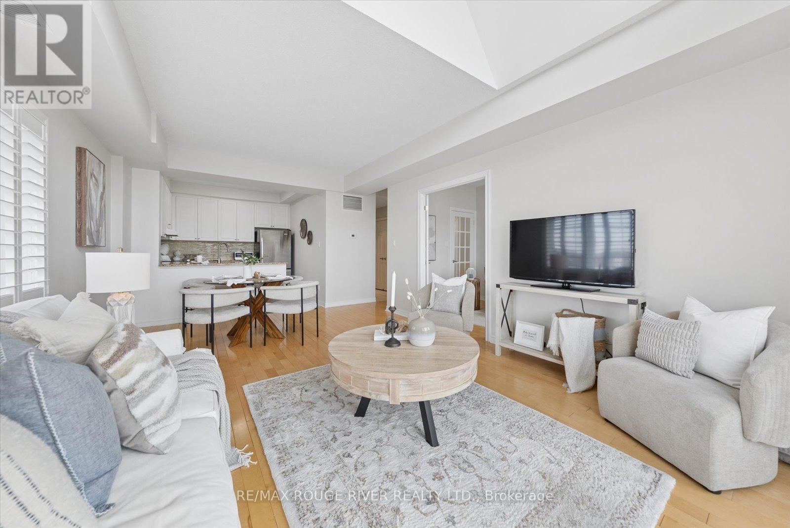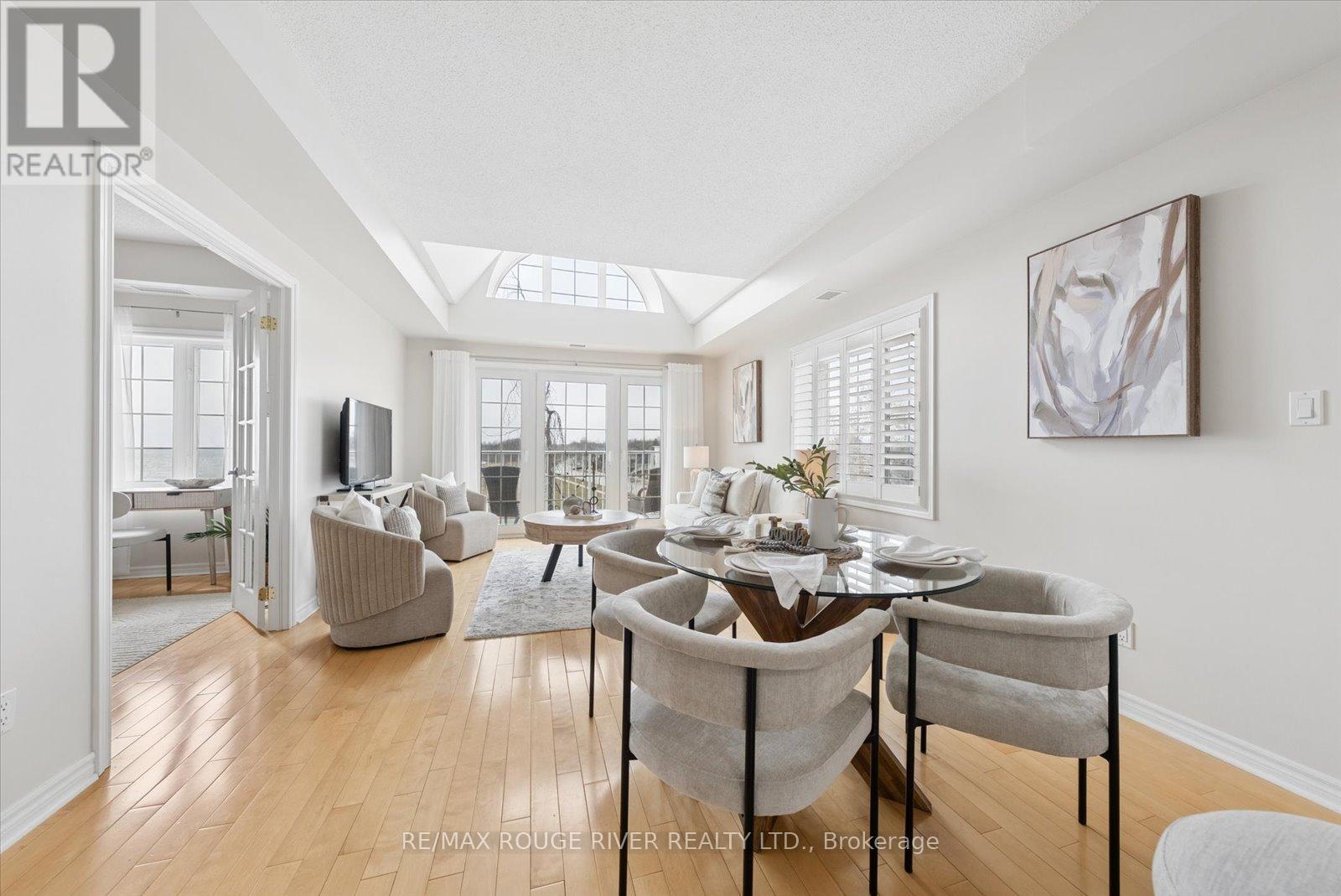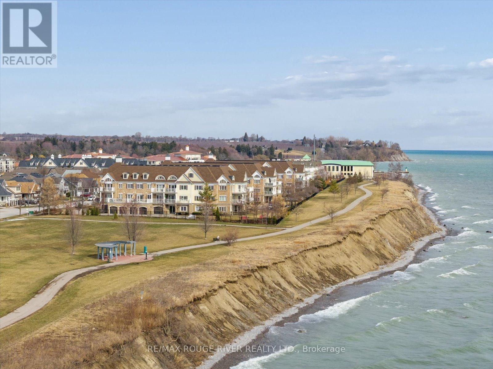 Experience the very best of lakeside living in this stunning corner condo at the highly sought-after Port of Newcastle. Perched on the top floor above the water with no neighbouring building to interrupt the skyline, this west-facing suite offers breathtaking, unobstructed views of Lake Ontario and surrounding parkland-sunsets here are simply extraordinary. At over 900 square feet, this bright and airy corner unit is filled with natural light from multiple exposures and enhanced by soaring vaulted ceilings that create a grand, open feel. Freshly painted in a modern palette with updated lighting, every detail has been thoughtfully curated. Rich maple hardwood floors, California shutters, and refined finishes add warmth and sophistication throughout.The open-concept living and dining area flows seamlessly to a private balcony where lake and park views take centre stage-an ever-changing backdrop through the seasons. The kitchen features granite countertops, an undermount sink, stylish backsplash, and breakfast bar-perfect for morning coffee overlooking the water.The primary bedroom is a true retreat with hardwood floors, a 4-piece ensuite with quartz countertops, his-and-hers closets, and serene lake views. The second bedroom is a standout, complete with a cozy fireplace and beautiful park views-ideal as a guest room, den, or inspiring home office.Rarely offered in condo living, this suite includes a private storage unit and two parking spaces. Ownership also includes two exclusive Gold Memberships to the Admirals Walk Clubhouse, featuring a gym, indoor pool, sauna, steam room, library, tennis courts, and vibrant community programming.Just steps from your door: lakeside parks, marina, and direct access to the Great Lakes Waterfront Trail-offering thousands of kilometres of scenic trails-perfect for an active, maintenance-free lifestyle. (id:64974)