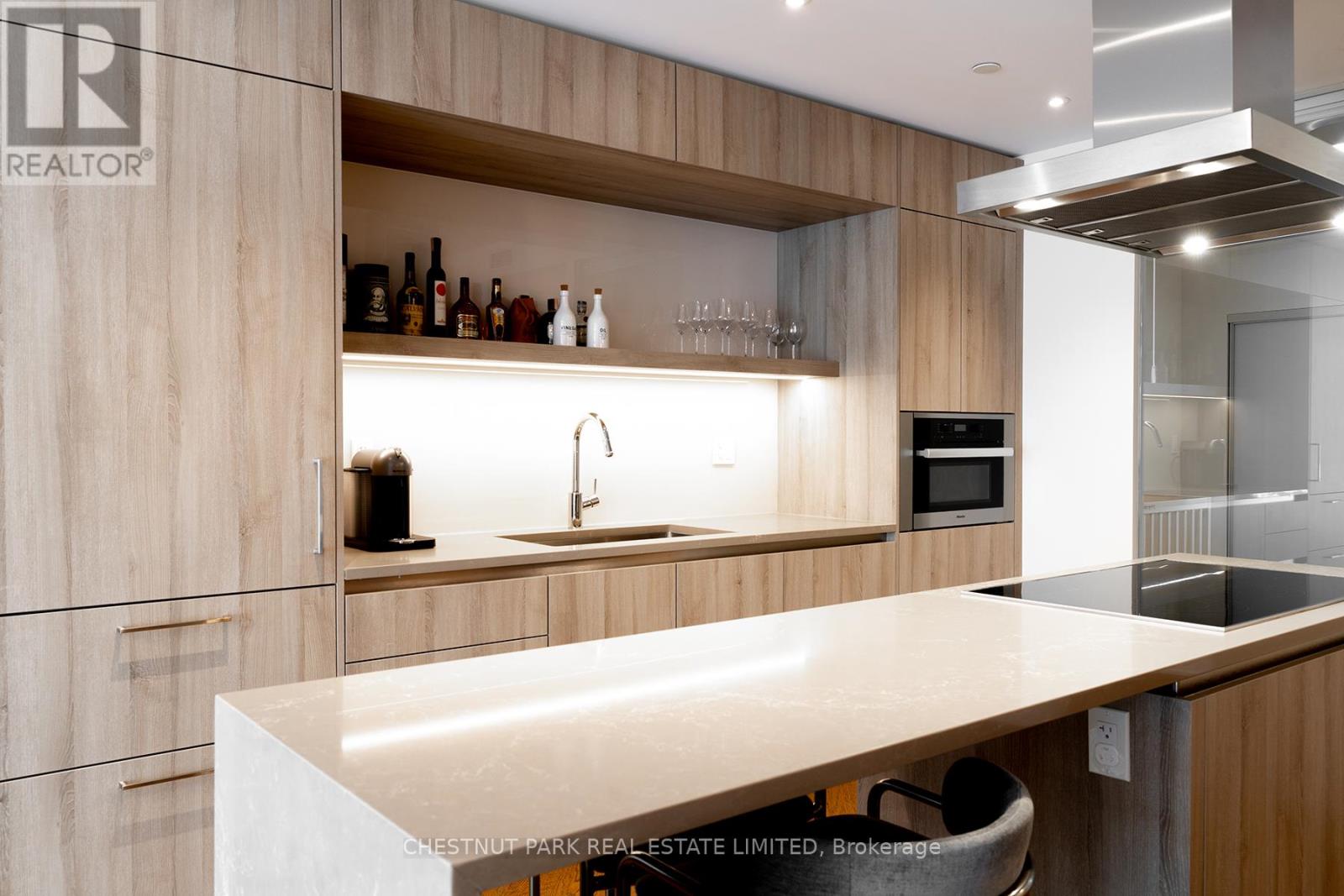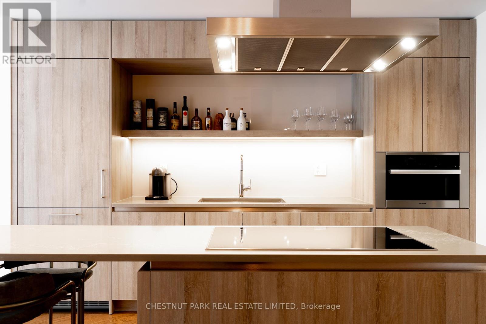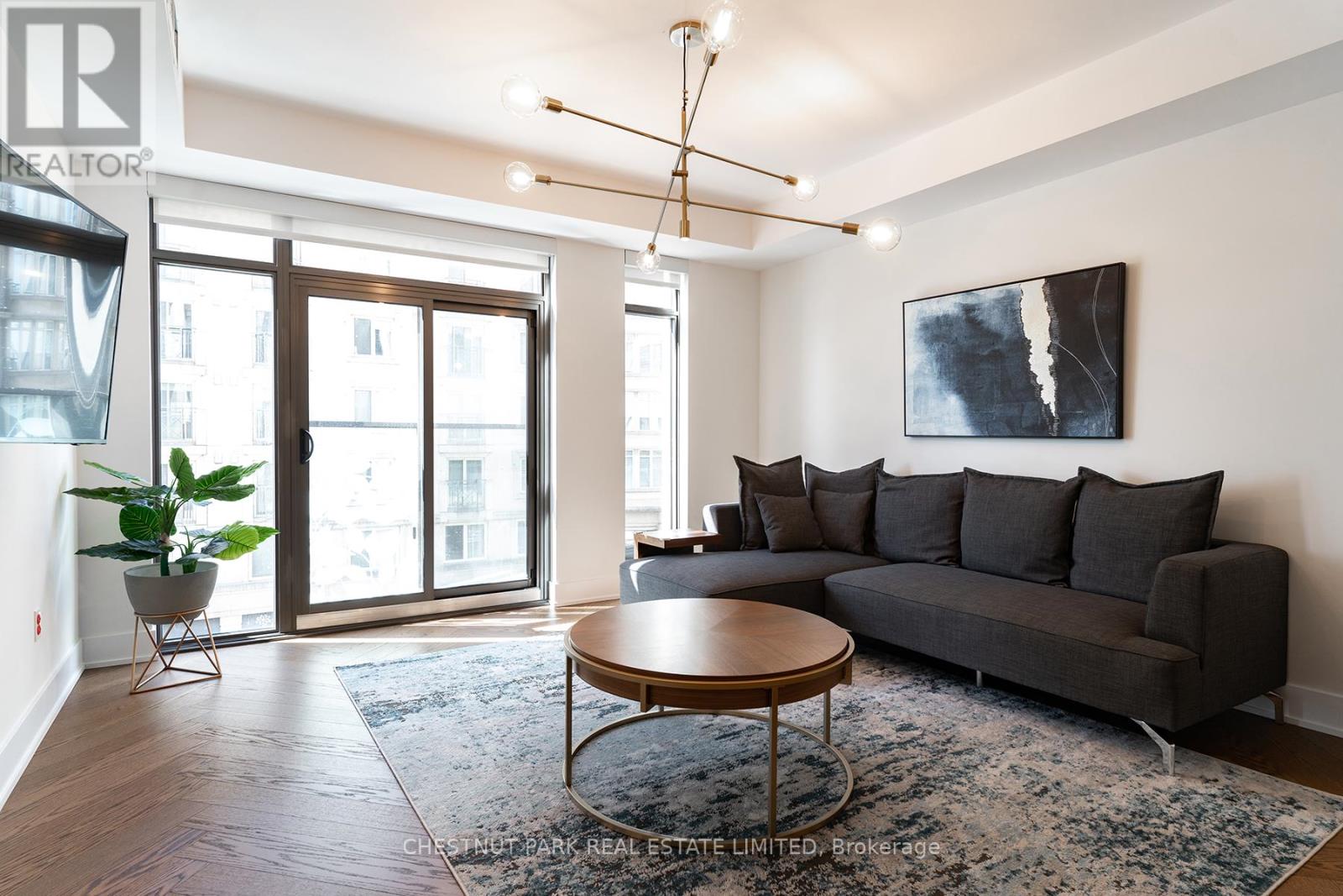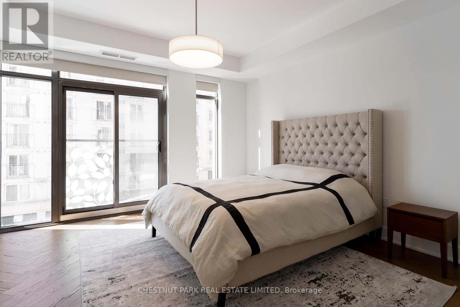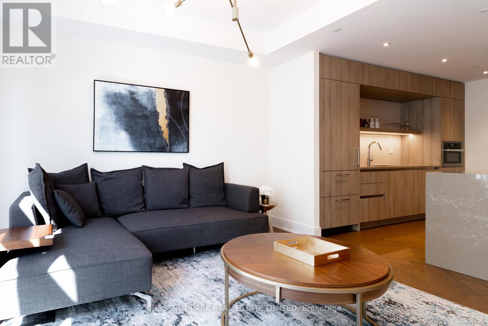 Beautifully FURNISHED executive rental at The Jack - a luxury condominium building in prestigious Summerhill/Rosedale Neighbourhood. Approx 1575SF of wonderful living space. Contemporary open concept layout features large great room with juliette balcony, herringbone hardwood floors throughout and a striking modern kitchen with Miele appliances. The primary bedroom suite boasts wall to wall closets, juliette balcony, and a well appointed 5 piece ensuite bathroom with heated floors. The second bedroom plus large den have multiple uses as a home office, den/entertainment room or bedroom. Both rooms have closets and access to a 4 piece main bathroom. The large ensuite laundry provides for side-by-side laundry and useful storage. The building is within easy walking distance to some of Toronto's finest dining establishments, boutique shops, the TTC and recreational amenities. The elegant building also features a 24 hour concierge, valet parking, gym, party/meeting room, roof top deck with BBQ and Visitor Parking. No weekend showings - call agent to discuss. (id:64974)
