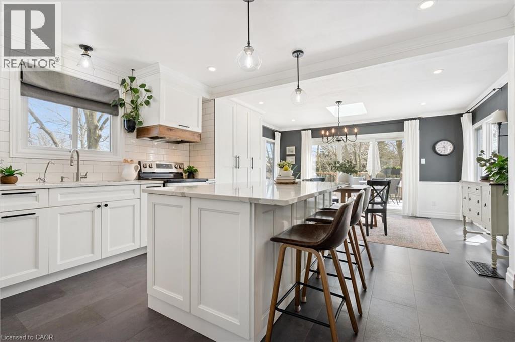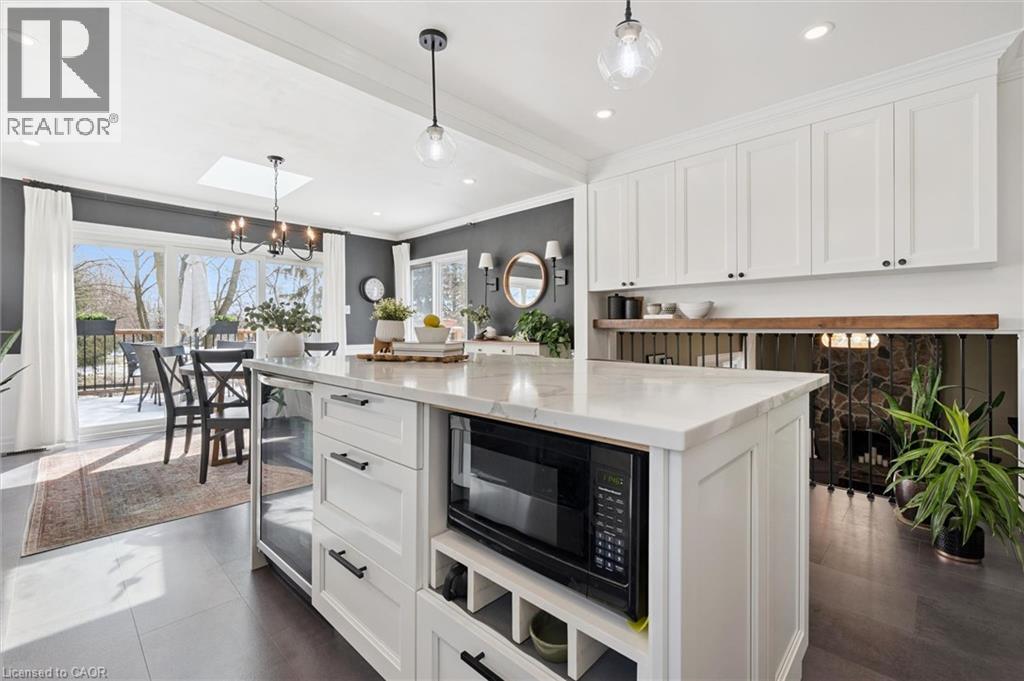 Tucked away on a quiet cul-de-sac in Waterloo, this beautifully maintained home offers the perfect blend of space, warmth, and convenience. From the moment you step inside, you’re welcomed by a warm, inviting foyer that sets the tone for the rest of the home. The main living level features a bright and comfortable living room, a stunning renovated kitchen, and a dining area designed for both everyday living and easy entertaining. Just steps away, a secondary living room and full bathroom providing the flexibility everyone loves — perfect for movie nights, a play space, home office or a quiet retreat. Upstairs, you’ll find three well-sized bedrooms and a full bathroom, creating a functional layout to start and end your day. Throughout the home, you’ll appreciate the abundance of interior storage, along with 2 additional exterior storage spots for all the extras. Outside, the pie-shaped lot offers a fully fenced backyard surrounded by mature trees — completely private in full bloom - a beautiful setting for kids, pets, and summer gatherings. No matter the weather you can enjoy the great outdoors - whether it is soaking up the sunshine on the upper deck or watching the rain on the lower covered patio. The peaceful court location adds an extra layer of privacy, while still being incredibly convenient to shopping, amenities, and quick highway access. Well loved and thoughtfully maintained and updated over the years, this is a home that truly offers comfort, space, all in an exceptional location — ready for its next owner. *UPDATES* 2012 electrical panel and receptacles, 2014 - 12x16 shed and fully fenced yard, 2015 most flooring, 2015 kitchen and bedroom windows, 2015 roof, 2017 driveway and patio - asphalt and aggregate, 2018 water softener & furnace, 2018 deck, 2020 patio doors, 2021 lower bathroom, 2023 kitchen & fridges, 2023 heat pump, 2025 water heater, 2026 garage door, 2026 stove. Book your showing today! (id:64974)
