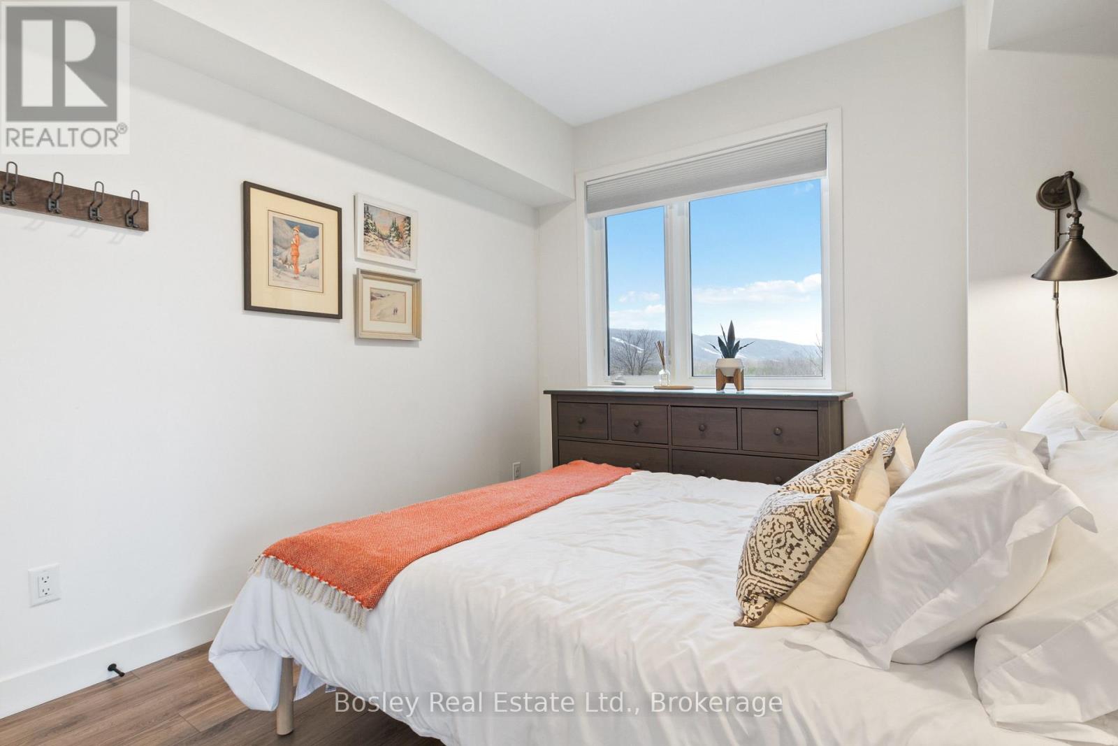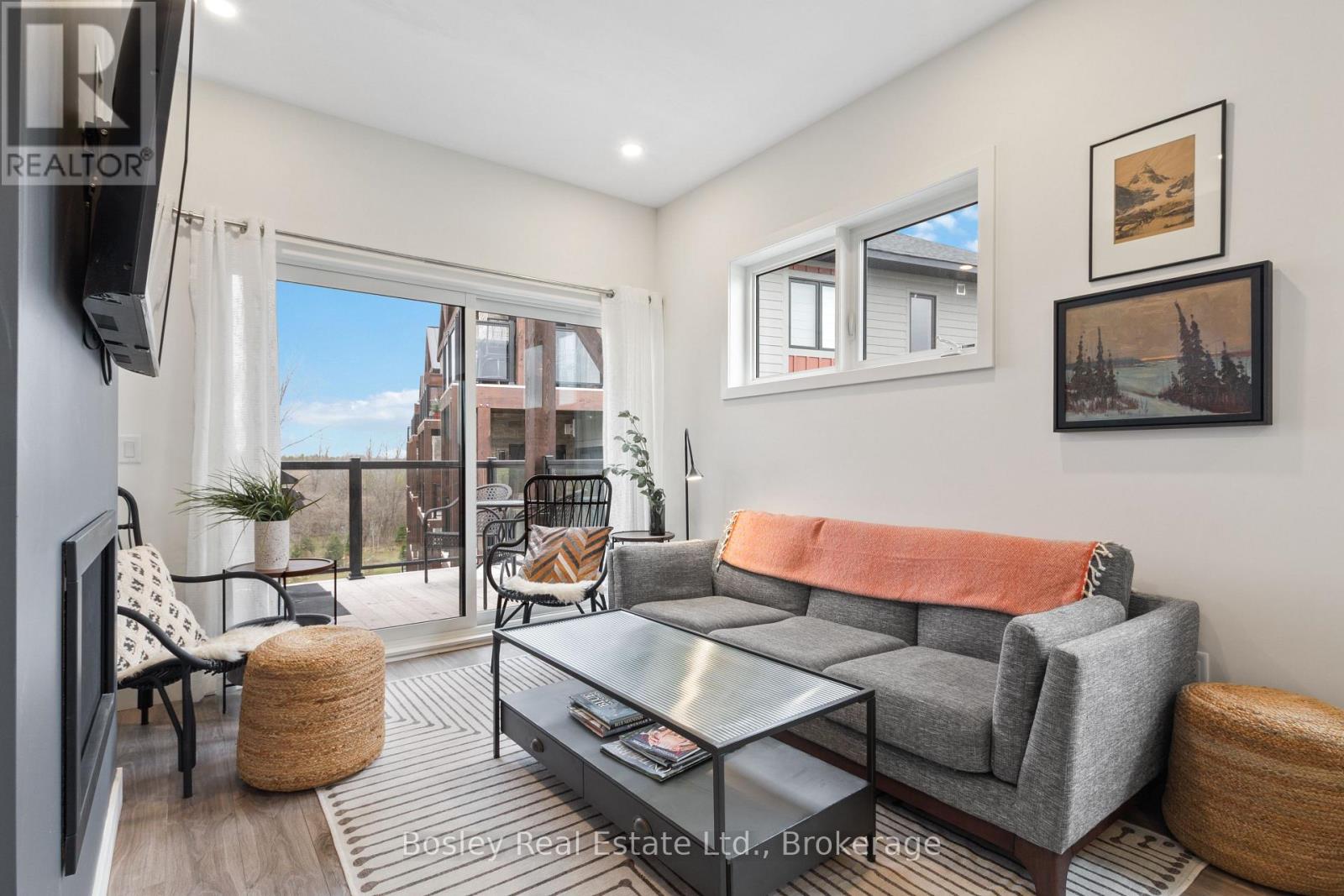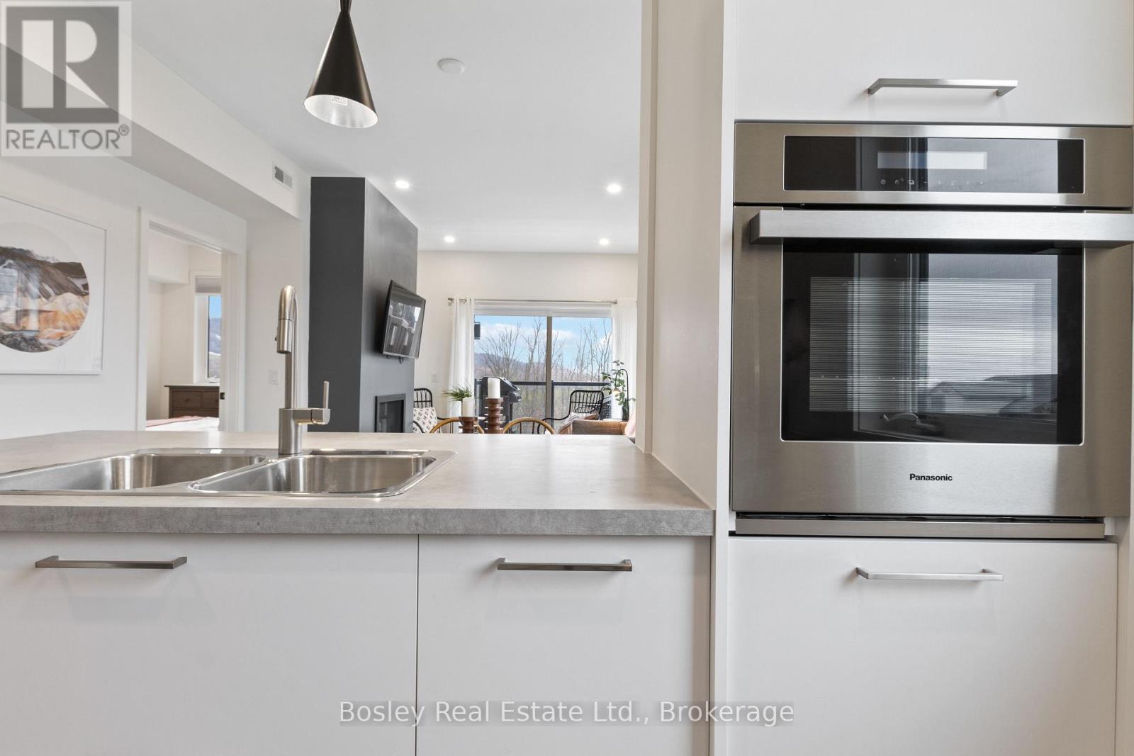 This modern top-floor corner suite offers two parking spots and is filled with windows that flood the space with natural light. Featuring 3 bedrooms and 2.5 bathrooms, Unit 307 delivers the perfect base to experience everything the Blue Mountains lifestyle has to offer. The open-concept living and kitchen area is made for entertaining, anchored by a stone gas fireplace with a beautiful wood mantel. Step out to the spacious balcony-ideal for BBQs and relaxed evenings. The kitchen showcases a quartz waterfall countertop and backsplash, integrated appliances, and a generous breakfast bar. The primary bedroom features a stylish ensuite with an oversized glass walk-in shower. Owners enjoy access to Mountain House's Zephyr Springs oasis, complete with a year-round heated outdoor pool, seasonal cold pool, sauna, fitness room, and the Apres Lodge with its indoor/outdoor fireplace. Embrace four-season living surrounded by scenic views and endless outdoor adventure. (id:64974)