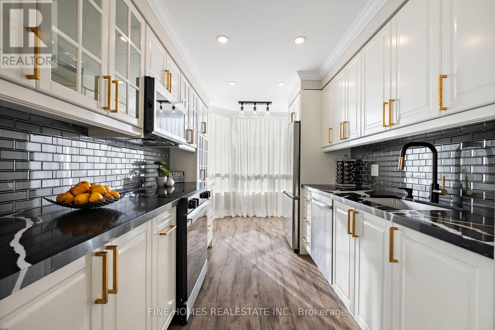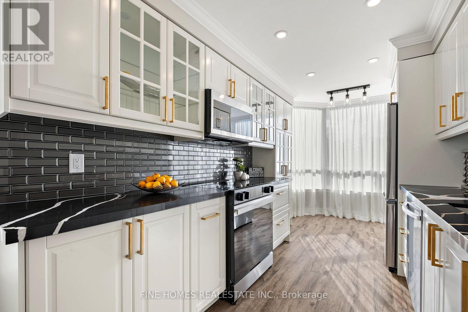 Fully Renovated Luxury Corner Suite! Stunning open-concept layout with a new kitchen featuring quartz countertops, stainless steel appliances, and premium finishes. Both bathrooms beautifully remodelled with sleek, modern design. Enjoy new flooring, LED pot lights, crown molding, and brand-new fan coil units throughout. Spacious primary bedroom with designer touches and custom built-ins. Truly a top-quality renovation-nothing overlooked.Located in a prestigious building with exceptional amenities: 24-hour gatehouse & security, pool, gym, sauna, tennis/squash courts, party & meeting rooms, library, guest suite, and ample visitor parking.Move-in ready and a rare opportunity in an unbeatable location! (id:64974)