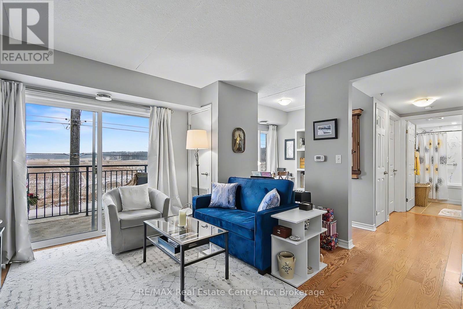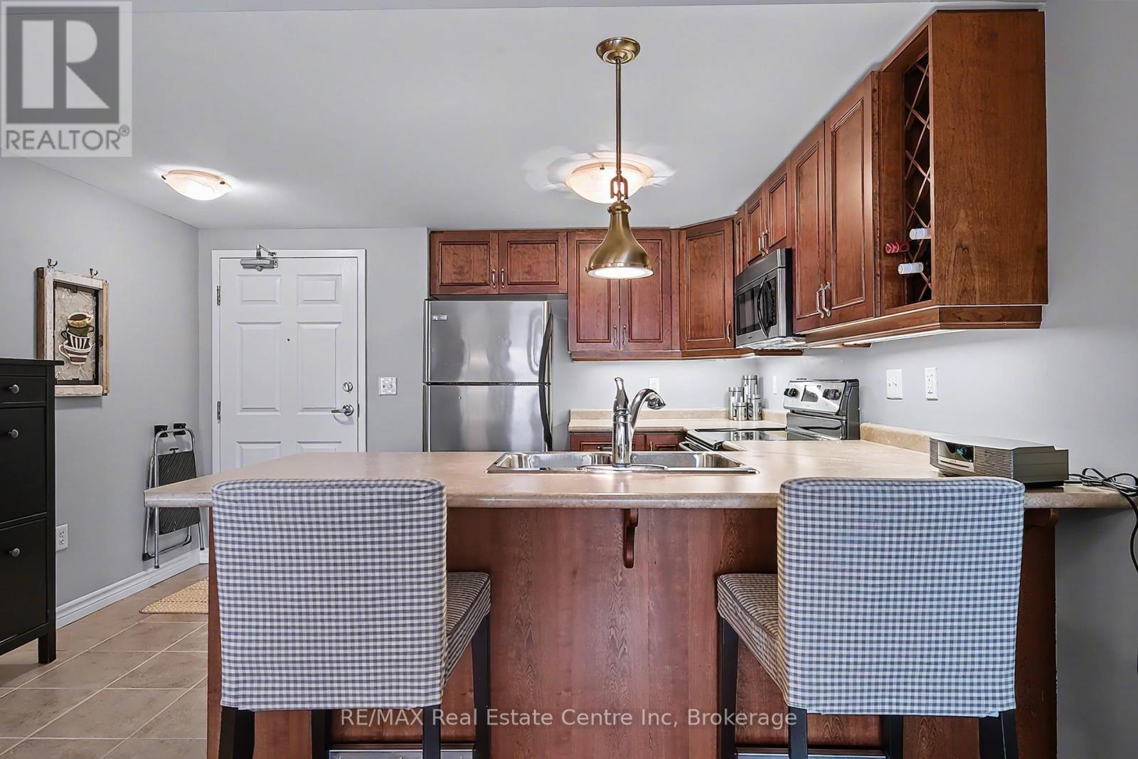 Exceptional corner unit condo apartment situated in the vibrant south end of the city! This beautifully updated home, is a pleasure to show, with a gorgeous cherry wood kitchen, complete with a custom wine rack, sleek stainless steel appliances, and a convenient breakfast bar. A sun-filled great room is enhanced with wide plank hardwood flooring, that flows throughout the unit, and looks onto an open concept den, that is perfect for an office or small dining area. The bedroom is quite spacious, and offers great closet space, and a 4pc bath adds a touch of luxurious relaxation. With a serene view of U of G lands from your private balcony, this is a spectacular space for professionals, commuters, downsizers, or first time buyers! (id:64974)