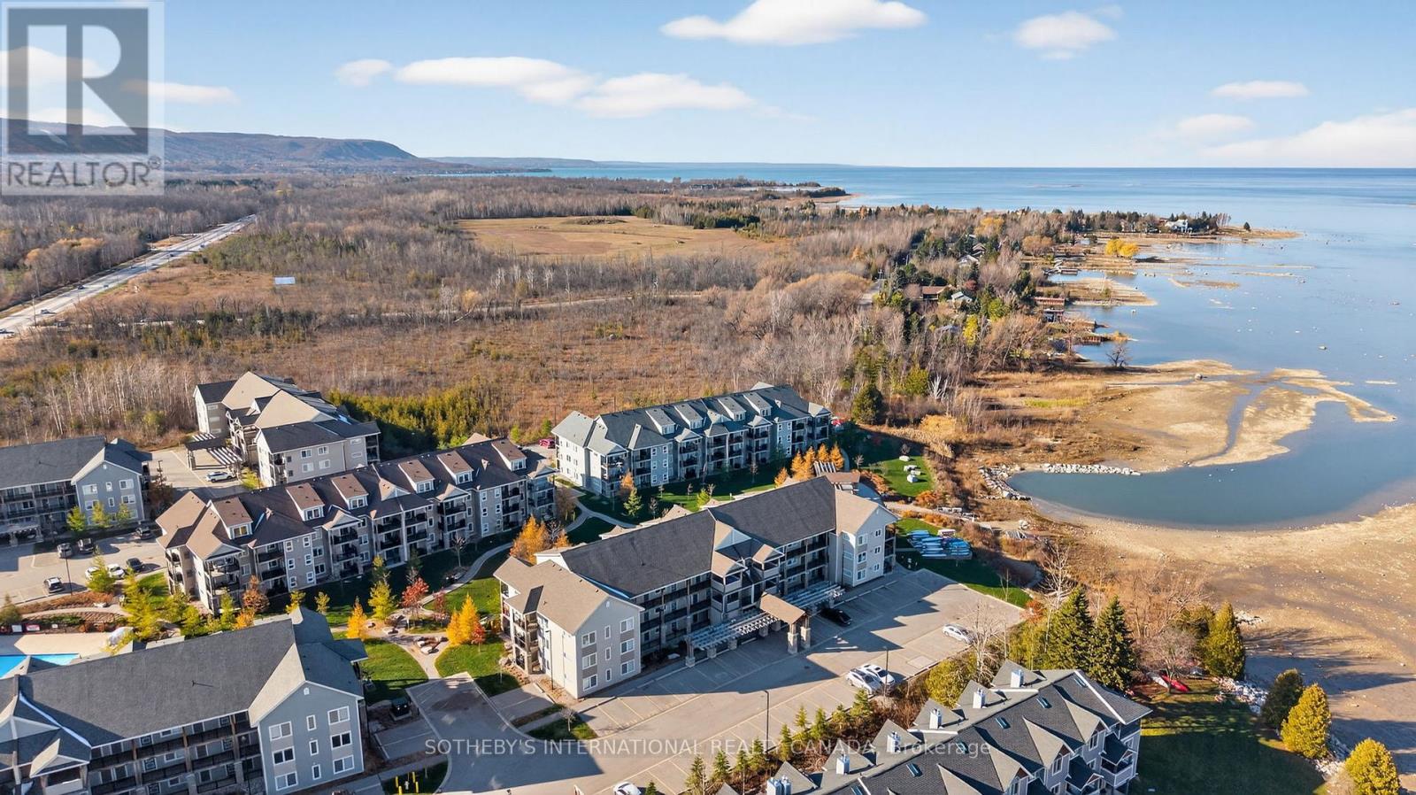 Welcome To The Most Sought-After Waterfront Condo Residence In Wyldewood Cove, Collingwood. This Rare Offering Overlooks The Shores Of Georgian Bay With Unobstructed Water Views. Spanning Over 1,300 Sqft Of Functional Living Space, This Upgraded 3-Bedroom, 2.5-Bath Suite Also Includes 150 Sqft Of Outdoor Space Across Two Balconies, Perfect For Enjoying Panoramic Views Of The Nottawasaga Lighthouse Set Against The Shimmering Waters Or The Glowing Blue Mountain Lights By Night. Inside, Thoughtful Upgrades Elevate The Suite, From The Beautiful Stone Gas Fireplace To California Closets Throughout, Custom Built-In Closets, Pot Lighting, Elegant Window Coverings, And A Glass Walk-In Shower In The Primary Suite. The Kitchen Features Full-Size Stainless Steel Appliances, An Oversized Breakfast Bar, And Granite Counters. The Second Full Bathroom Offers A Double Vanity, Perfect For Families, Guests, And Day-To Day Living. Wyldewood Is A Well-Managed, Four-Season Community Offering A Quiet, Boutique Lifestyle With Access To A Year-Round Outdoor Pool, Gym, And Pristinely Maintained Grounds That Complement The Natural Landscape And Waterfront Setting. Situated Just Minutes Away From Blue Mountain Resort, Alpine Ski Club, Craighleth Ski Club, Scandinavian Spa, Golf Courses, Country Clubs, Beaches, And The Charming Shops And Restaurants Of Downtown Collingwood, This Is The Ideal Home For Both Relaxation And Recreation. Experience The Very Best Of Collingwood Living, Where Comfort, The True Canadian Lifestyle, And Breathtaking Views Come Together Perfectly. (id:64974)