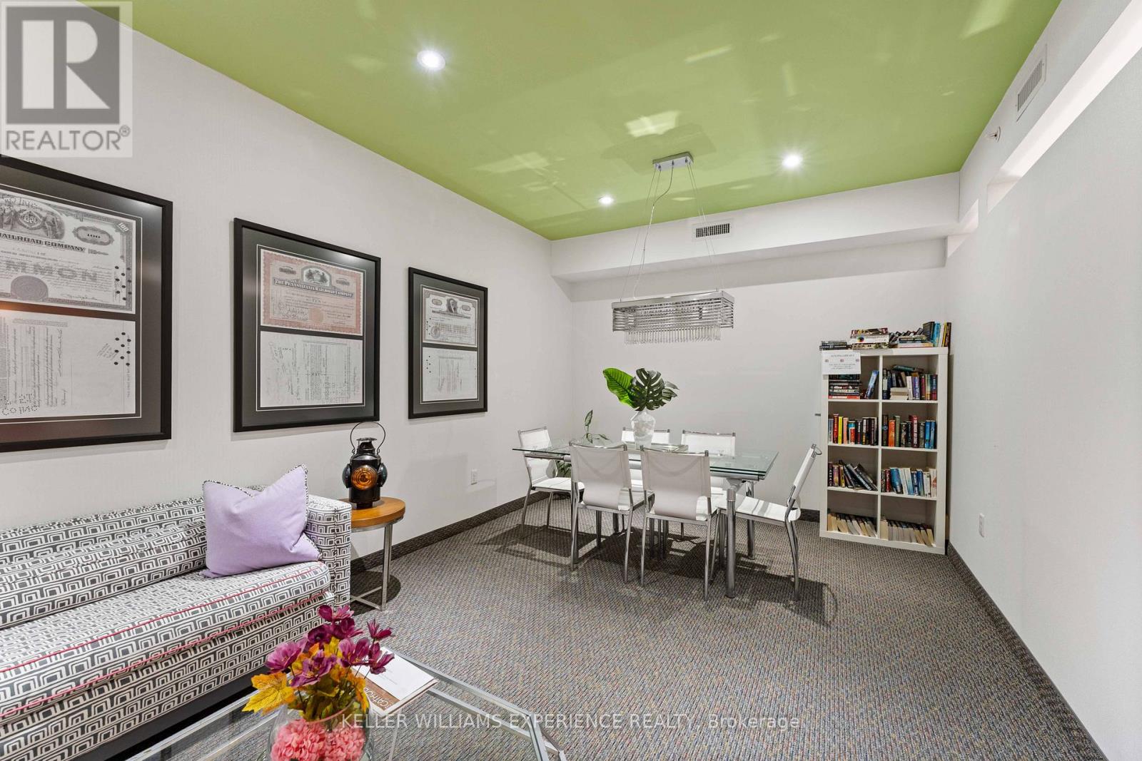 Welcome to #307-780 Yonge St in Barrie! Beautifully maintained 3rd-floor 1 Bedroom + Den condo in the sought-after Yonge Station community, perfectly located for commuters-steps to the South GO Station, minutes to the highway, and walking distance to schools, parks, shopping, and all amenities. This bright and airy suite features a modern open-concept layout with 9 ft ceilings and tasteful upgrades throughout. The kitchen offers quartz countertops and a breakfast bar, overlooking the spacious living/dining area with walkout to a covered 13.9 x 6.10 ft balcony-ideal for entertaining and BBQs. The large primary bedroom is filled with natural light and comfortably fits a king-sized bed. The versatile den provides the perfect space for a home office or potential second bedroom. Additional features include in-suite laundry, 1 underground parking space, and a storage locker. Enjoy access to a renovated private gym. Impeccably clean, smoke and pet-free, and truly move-in ready. A fantastic opportunity in a prime commuter location-don't miss it! (id:64974)