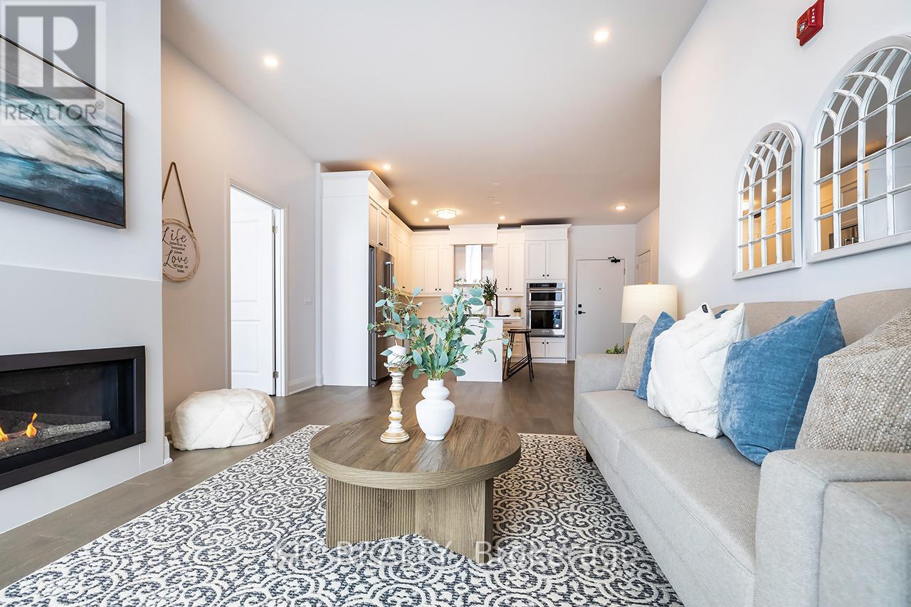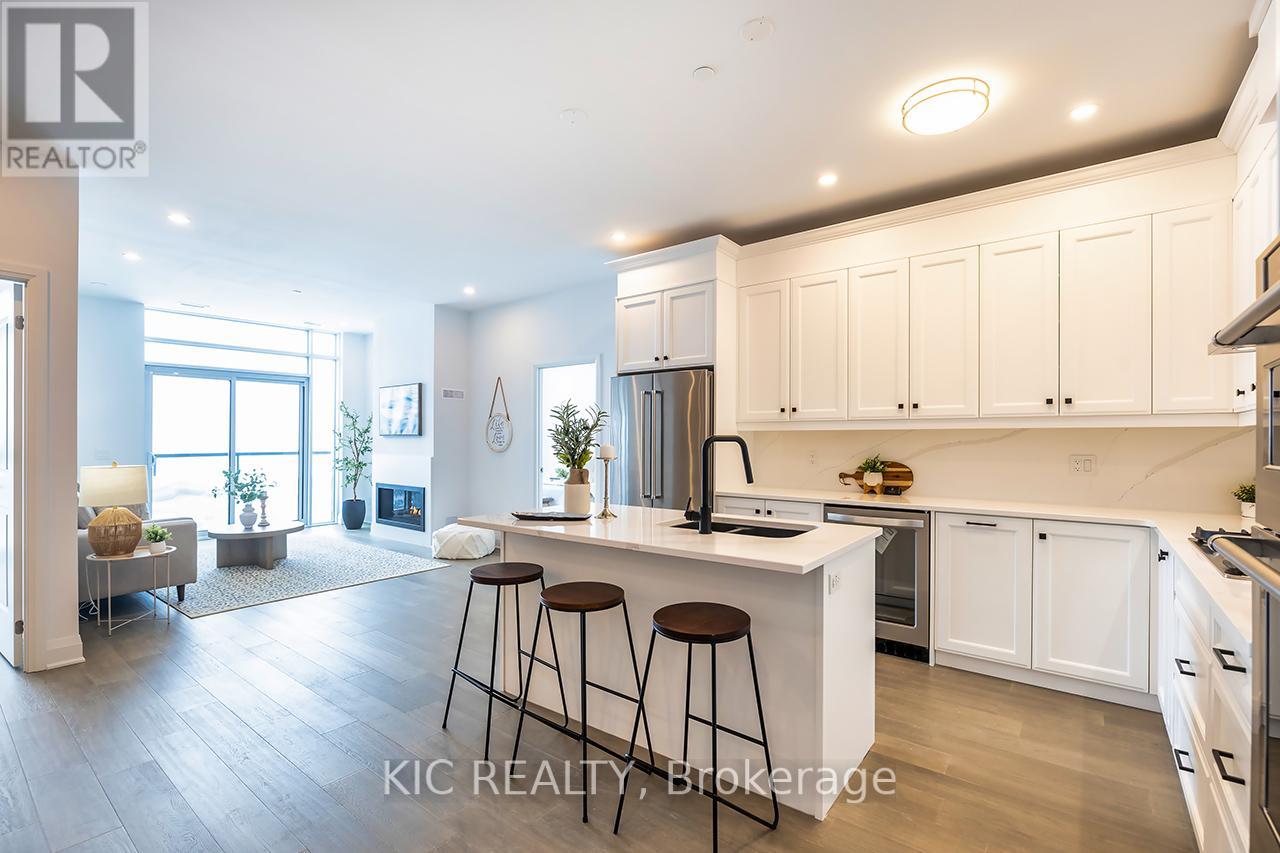 Experience luxury lakeside living at The Moorings on Cameron Lake. On the top floor this stunning 2 bed + den, 2 bath suite offers 1331 sq ft of refined elegance with upgraded finishes, floor to ceiling windows create light filled spaces, soaring 9 foot ceilings and a 32 foot private terrace captures spectacular western sunsets over the water. A luxurious, designer kitchen with island perfect for entertaining, top of the line stainless steel appliances, gas cooktop with an open concept plan to living room with gas fireplace with incredible lakeview. Formal dining area and a separate den for home office, or could be a third bedroom! Primary bedroom overlooks lake, tons of light and 5 piece ensuite bath! Guest bedroom shares the incredible lakeview! Premium amenities include a lakeview fitness centre with sauna, owners' lounge with theatre room with spacious lakeview balcony, 2 guest suites when you need extra room for guests, a pet spa and beautifully landscaped grounds where you'll find the waterfront courtyard, just steps to the lake with waterfront amenities to include a swim platform and boat slips available for purchase at the future on-site marina. , resort style heated outdoor pool and hot tub, tennis and pickleball courts and more! Two underground parking spots + locker located conveniently near elevator access. Steps to the Victoria Rail Trail, the locks, walk to downtown to enjoy lunch, the shops, and all that Fenelon Falls has to offer. Minutes to Lindsay/Bobcaygeon. A secure building with a rare blend of resort luxury and Kawartha charm-just 90 minutes from the GTA. (id:64974)