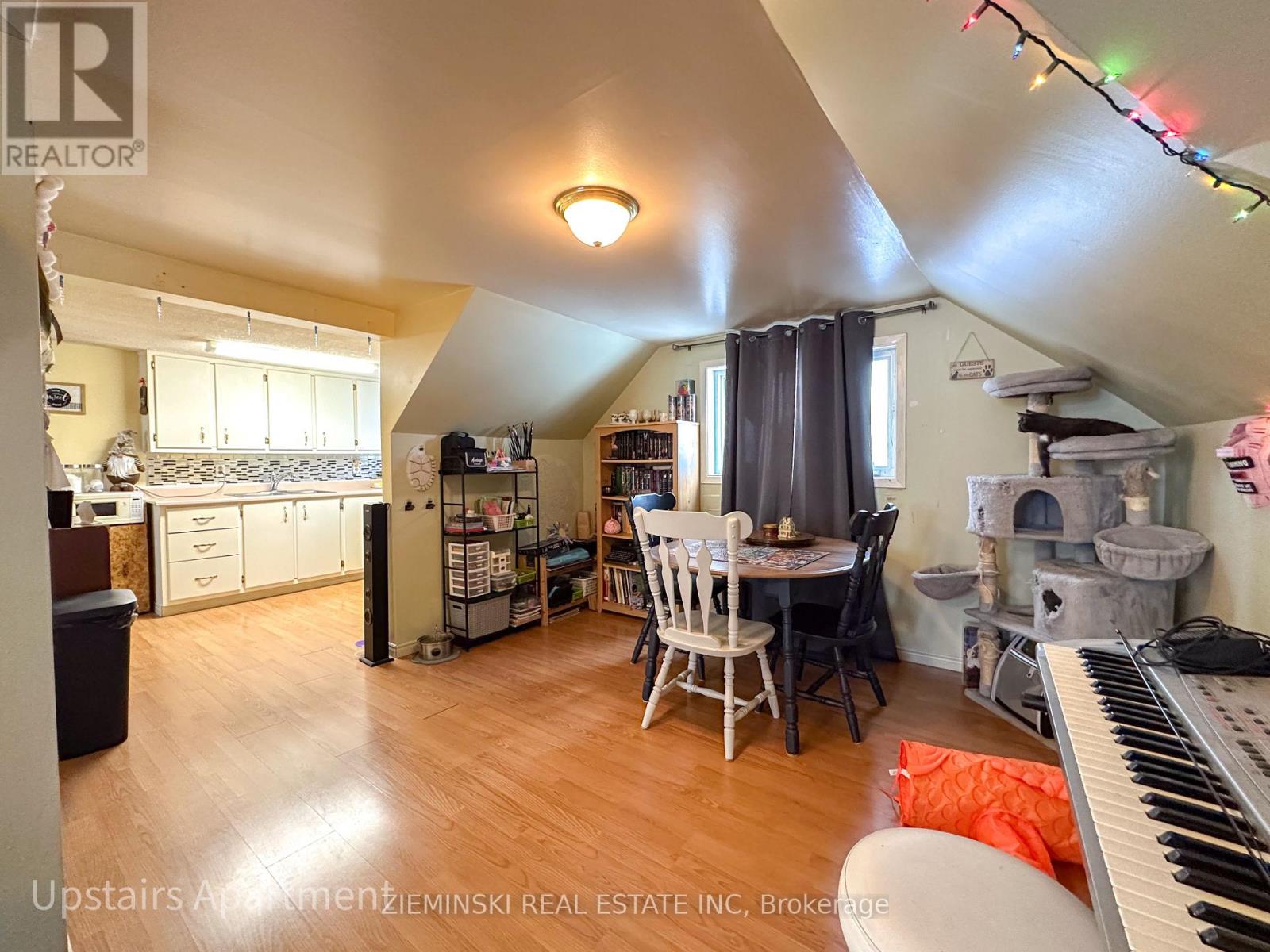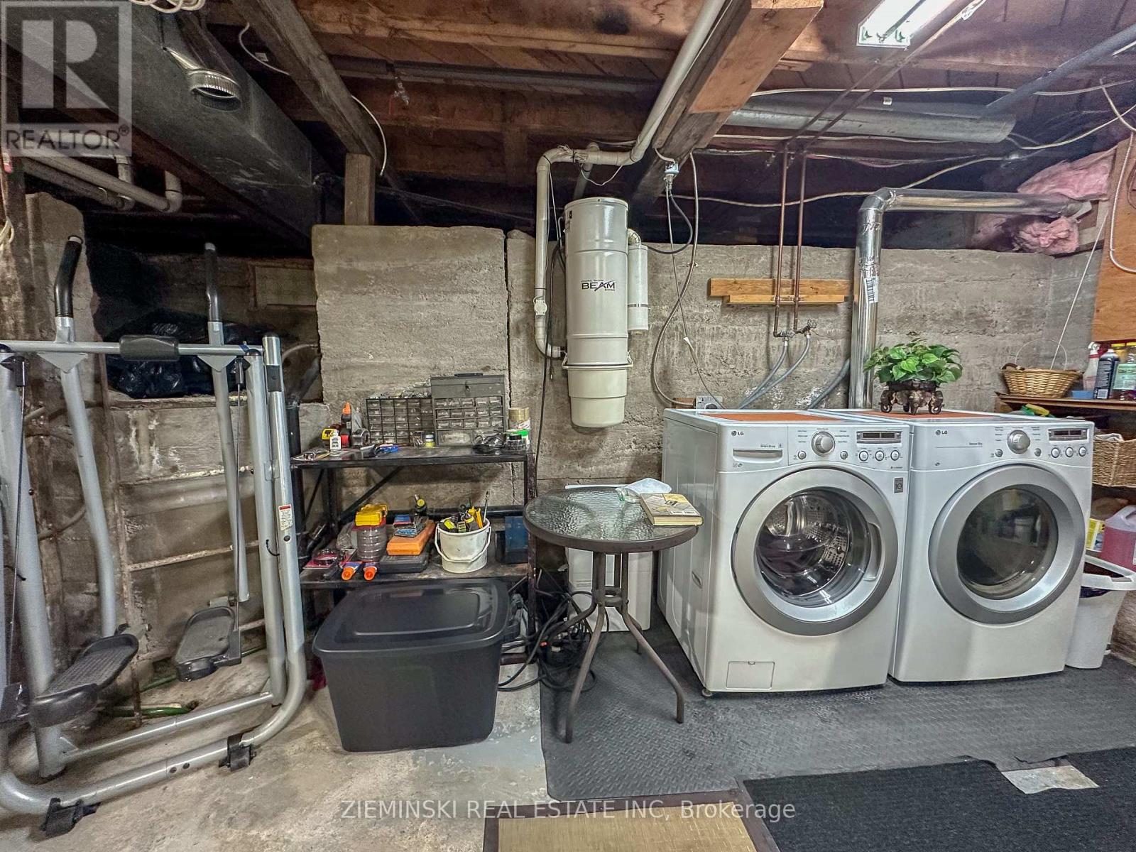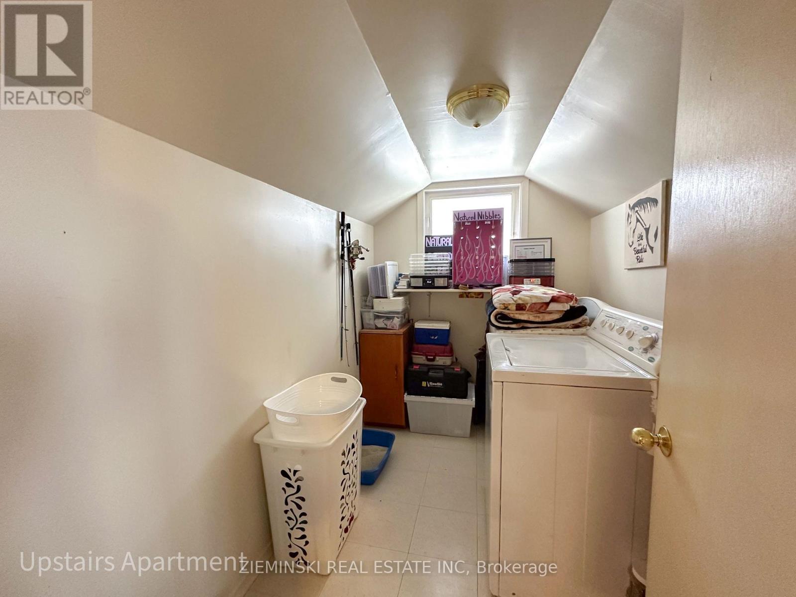 This fully tenanted duplex offers a spacious 3-bedroom unit on the main floor and a 1-bedroom unit on the upper level, complete with a large private backyard.The main-floor unit features three bedrooms, a 4-piece bathroom, an eat-in kitchen, a bright living room, and an unfinished basement that houses utilities (natural gas forced-air furnace, hot water tank, water softener, and central vacuum) plus in-unit laundry. Upstairs, the second-floor unit enjoys a private deck with views over the backyard, one bedroom, a 4-piece bathroom, kitchen, living room, and a laundry/storage room. Both units benefit from individual hydro meters and their own laundry facilities, making this a truly turnkey, low-maintenance investment. (id:64974)