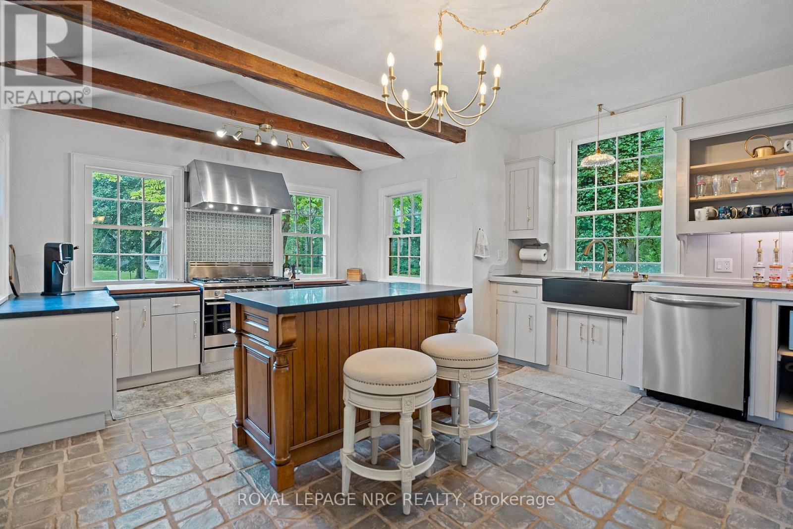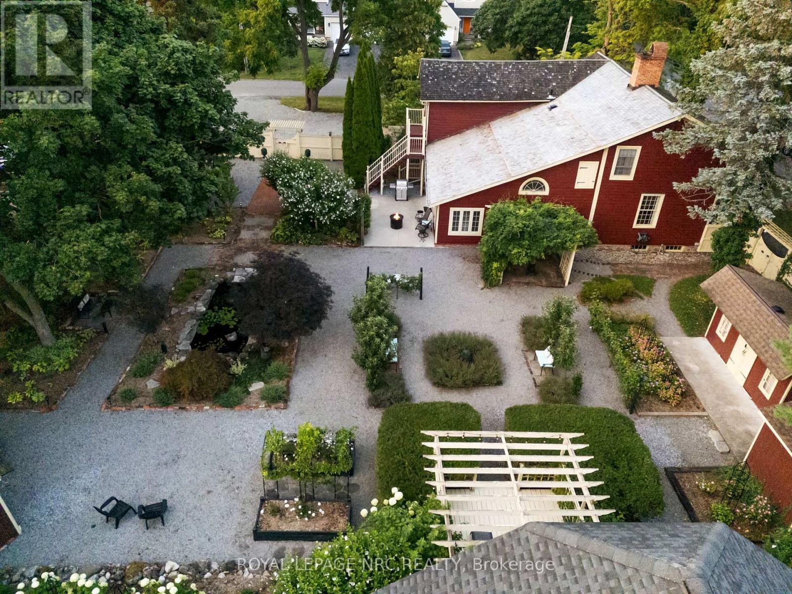 Step into The Schoolmasters House, a beautifully preserved c.1818 residence that blends historic charm with modern comfort in the heart of Old Town Niagara-on-the-Lake. Set on a generous 144 x 104 ft lot with landscaped gardens and a tranquil fish pond. With four bedrooms, three of which include private ensuites, and two additional full bathrooms, this former Bed and Breakfast is ideal for extended families, home office, or rental use. Several bedrooms feature private entrances, making them perfect for guests or short-term stays. Original wide-plank wood floors run throughout the home there is no carpet while four wood-burning fireplaces and a gas fireplace add warmth and character to every space. The main floor includes a spacious primary bedroom with ensuite, a second full bathroom with a deep soaker tub, laundry, and a large family room that also offers space for a home office or hobby area. The chefs kitchen is outfitted with a professional gas stove, abundant prep surfaces, and generous storage. Meals can be served in the formal dining room or enjoyed casually at the large island with breakfast bar. Upstairs, you'll find two additional ensuite bedrooms one with private stairs and an exterior entrance alongside a fourth bedroom, another full bath, and a cozy sitting area. This multi-generational, multi-family home offers exceptional flexibility and income potential. The home also includes powered workshops, a garden shed, and a garbage shed. Major upgrades include a new cedar roof on the front (2021) and rear (2024), and updated furnace and central air in 2017. A heritage grant is available to assist with roofing on the addition along Gage Street. This is a rare opportunity to own a piece of Niagara-on-the-Lakes history, with timeless character and modern convenience just steps from the shops, dining, and charm of Old Town. (id:64974)