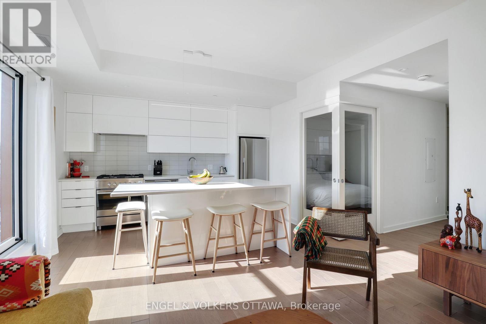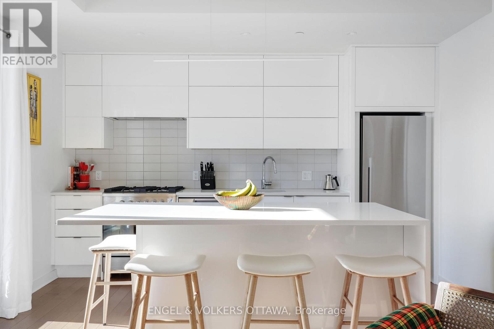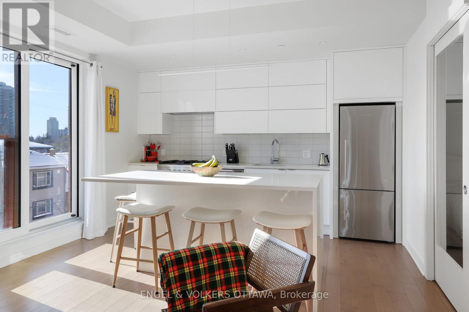 Welcome to St. Charles Market at 135 Barrette, a luxury condominium in the heart of vibrant Beechwood Village. Built on a historic site centred around the iconic St. Charles Church, this unique development blends modern living with rich community heritage.This bright south-east facing 1-bedroom, 1-bathroom suite is filled with natural light and features a thoughtfully designed layout. The modern kitchen showcases an oversized island, premium Fisher & Paykel appliances, two-tiered dishwasher, gas range, and quality finishes, ideal for cooking and entertaining.Residents enjoy concierge service, fitness studio, yoga room, dry sauna, billiards room, elegant communal spaces, and e-valet underground puzzle parking with storage. Just steps to cafés, restaurants, specialty shops, parks, and river pathways. Ideally located near Global Affairs Canada and minutes to Parliament Hill and downtown.A rare opportunity for refined urban living in one of Ottawa's most desirable neighbourhoods. (id:64974)