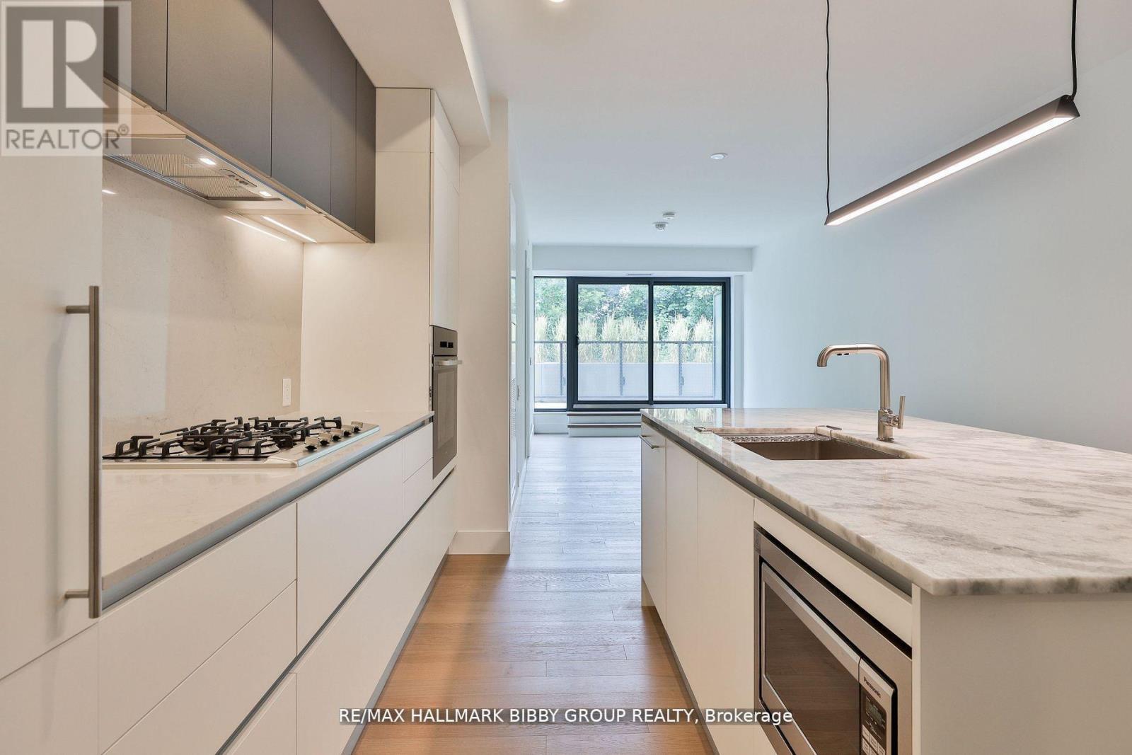 A Grand & Tranquil Living Experience. This Two-Bedroom, Two-Bathroom Unit In 1414 Bayview Provides An Abundance Of Living Space And An Unmatched Outdoor Experience Complemented By A 115 Square Foot Private Terrace Oasis, Integrating Into A Majestic Garden Which Features Pre-Cast, Concrete Built-In Planters And Exceptional Tree Coverage In The Distance. Every Inch Of This Residence Reflects Superior Craftsmanship And Attention To Detail With Refined Modern Finishes Throughout. Floor To Ceiling Windows Provide An Abundance Of Natural Light And The Expansive, Sun-Drenched Principal Rooms Are An Entertainers Dream With Soaring Ceilings. The Breathtaking Modern Italian Kitchen Features Integrated Miele Appliances, Caesarstone Countertops And Ample Storage. The Primary Bedroom Retreat Boasts A Large Walk-In Closet And Three-Piece Spa Like En-Suite Bathroom. The Large, Private Second Bedroom Is Perfect For Guests And Includes An Adjacent Four-Piece Bathroom Immediately Outside. World Class Amenities Designed By Sixteen Degree Studio Include Residents Library Lounge, Co-Working Space And A Private Garden Courtyard. Unbeatable Location As You Are Steps From The Best That Leaside Has To Offer. Acclaimed Shopping And Dining Of Bayview, Upscale Grocers, Easy Access To Public Transit, Toronto's Best Running, Biking Trails And Ravine Systems. (id:64974)
