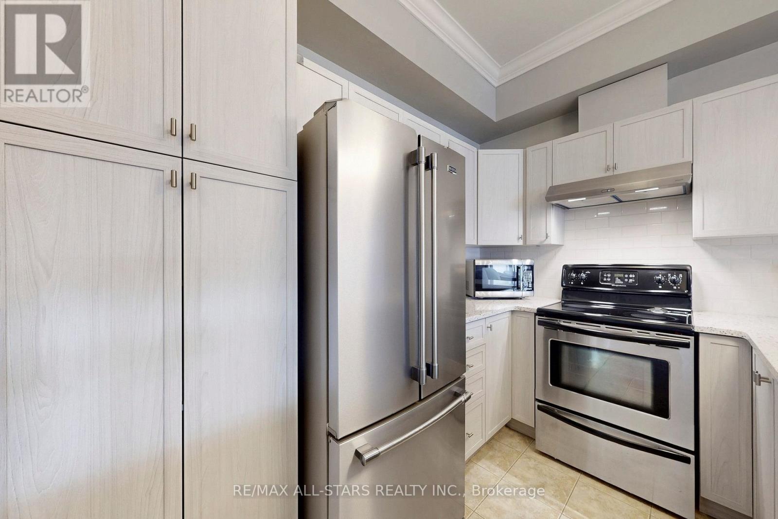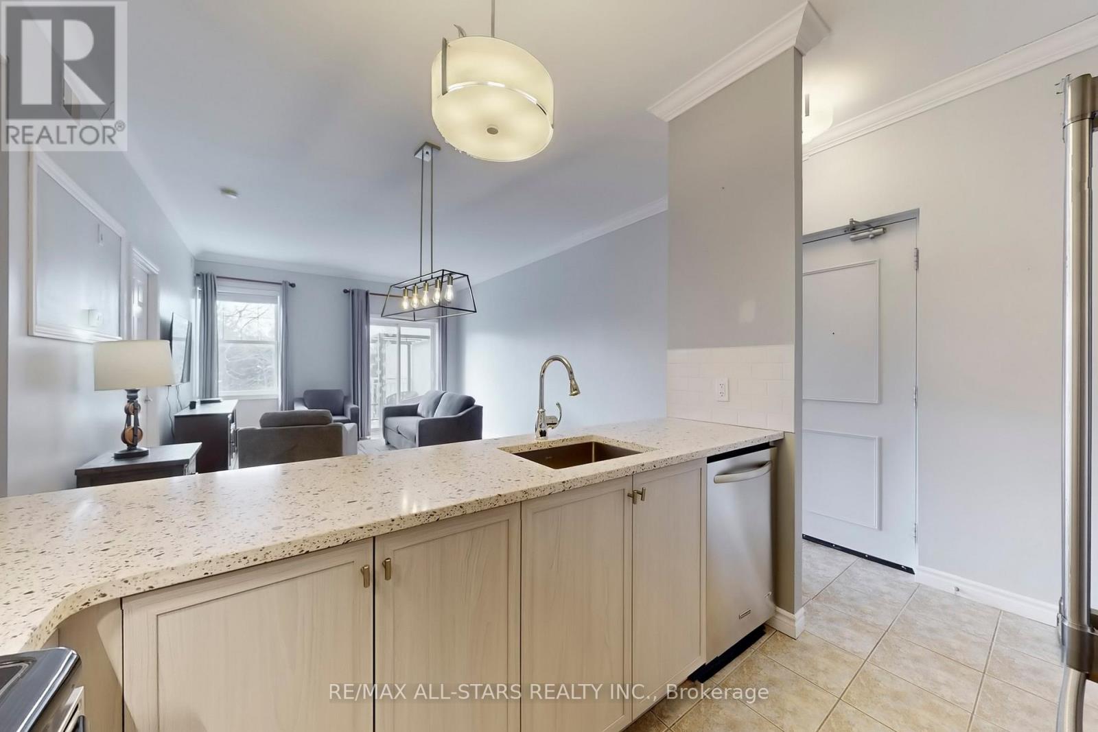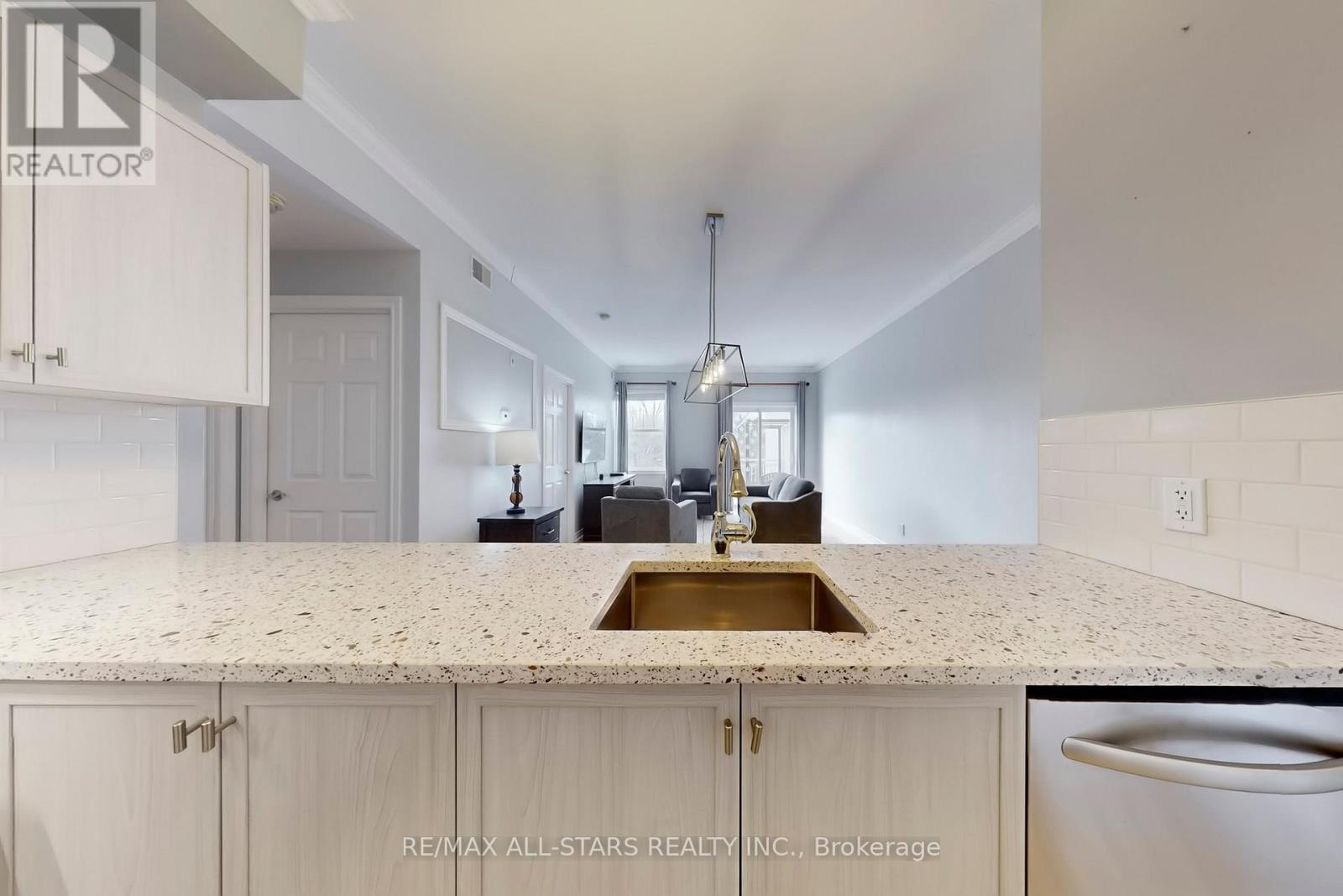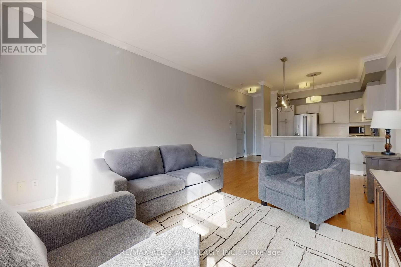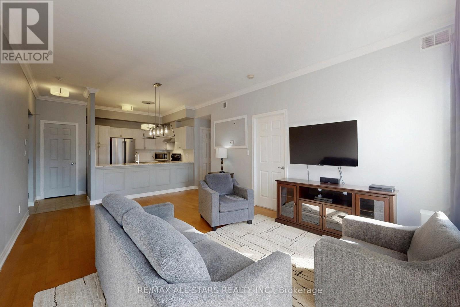 Welcome to Suite 308 in beautiful Brookview Terrace! This sought-after third-floor corner unit offers 2 bedrooms and 2 bathrooms in a bright, open-concept layout with 9 ft ceilings and crown moulding throughout. The updated kitchen features quartz countertops and plenty of cabinet space, seamlessly flowing into the living and dining areas-perfect for everyday living and entertaining. The spacious primary bedroom includes a 4-piece ensuite bathroom, and full-size in-suite laundry adds to the convenience. Step out onto your large open balcony with gas hook-up, overlooking protected greenspace, providing a relaxing and private setting for morning coffee and evening barbeques. This rare offering is complete with two parking spaces, including one underground, and perfectly situated within walking distance to downtown Uxbridge's shops, restaurants, parks, and highly praised walking trails. You won't want to miss this exceptional opportunity! (id:64974)