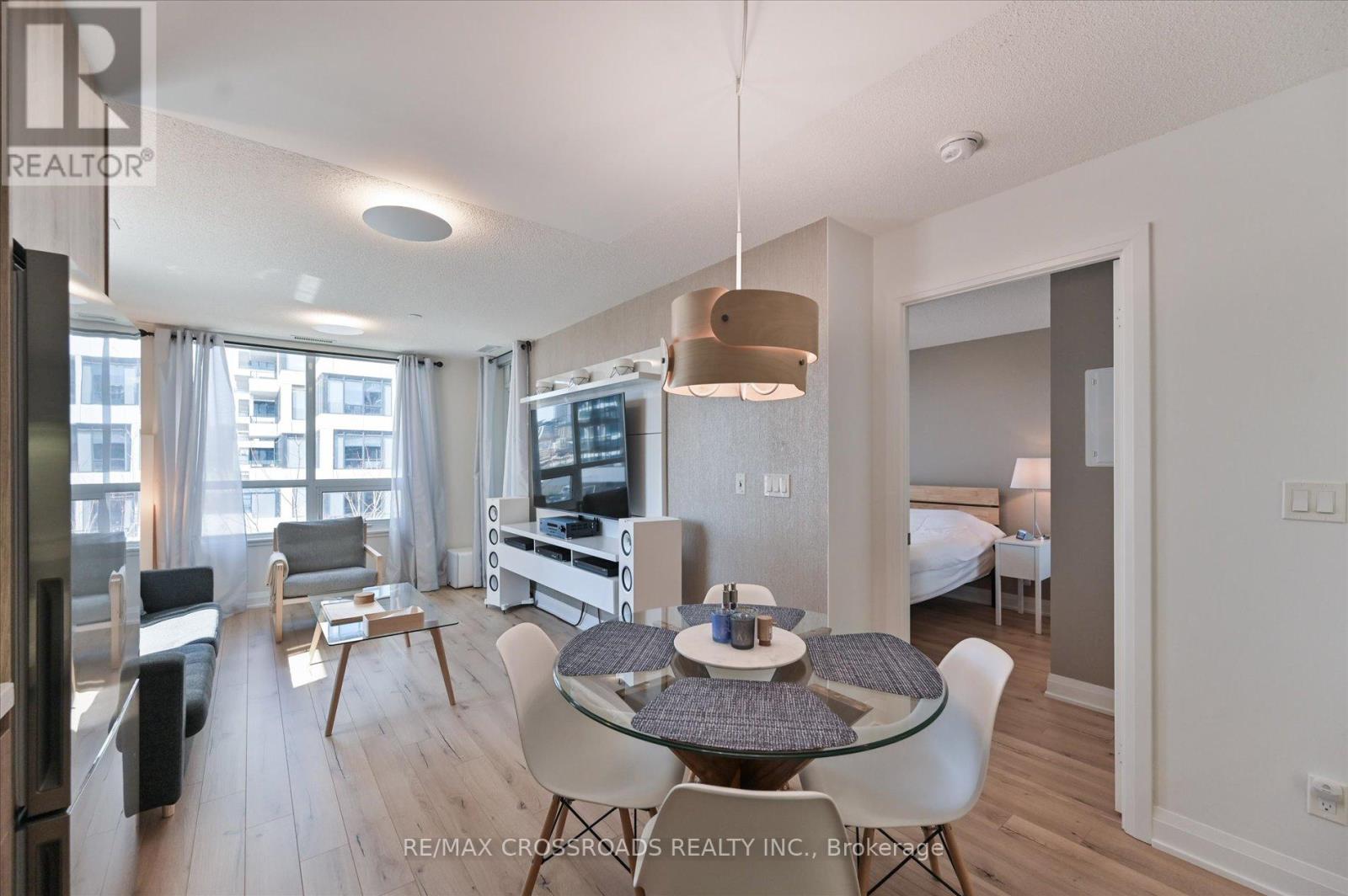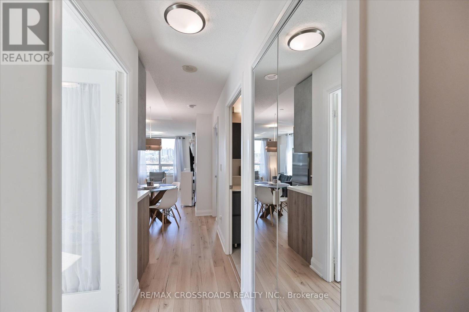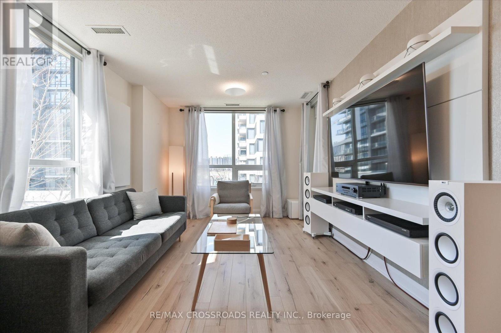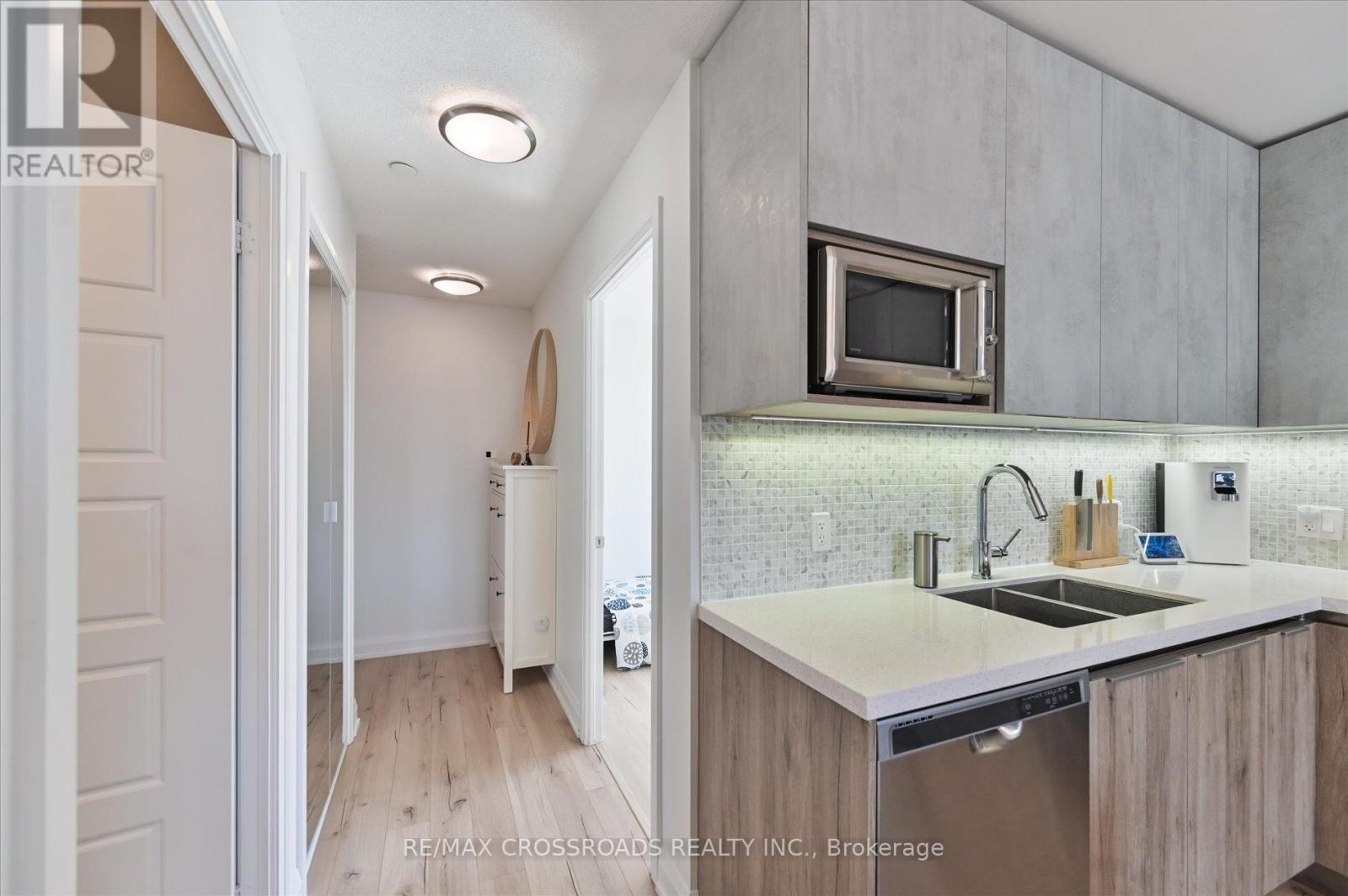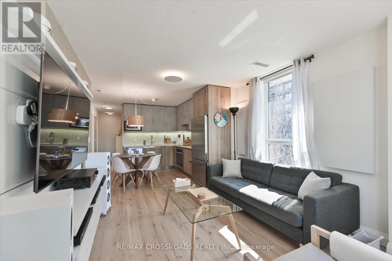 Rare Corner Sanctuary in Riverside Uptown Markham - Sunset Views & Ultimate Privacy. True pride of ownership! Experience the pinnacle of urban living in this meticulously maintained oversized 1-bedroom plus den corner suite. Spanning 695 square feet of meticulously upgraded space, this southwest-facing unit is flooded with natural light and offers a rare level of tranquility - tucked away at the end of the hallway with no neighbours above! The versatile, sun-filled den features a large window and is easily convertible into a functional second bedroom or executive home office. The gourmet kitchen is a chef's dream, featuring an upgraded GE Cafe induction cooktop, premium stainless steel appliances, and sleek cabinetry. The open-concept living area is anchored by a custom built-in media wall unit and accented by upgraded designer light fixtures throughout. Upgraded with CAT6 network wiring throughout for seamless, high-speed internet connectivity in every room. Not to mention, already included in the maintenance fee is Rogers 1.5 gigabit internet for your convenience! Includes 1 Parking & 1 Locker. Enjoy world-class LEED Gold amenities: an infinity rooftop pool, fitness centre, library/Wi-Fi lounge, and 24-hour concierge. Located steps from Whole Foods, luxury dining, and Viva Transit, with rapid access to Highways 407 and 404. (id:64974)