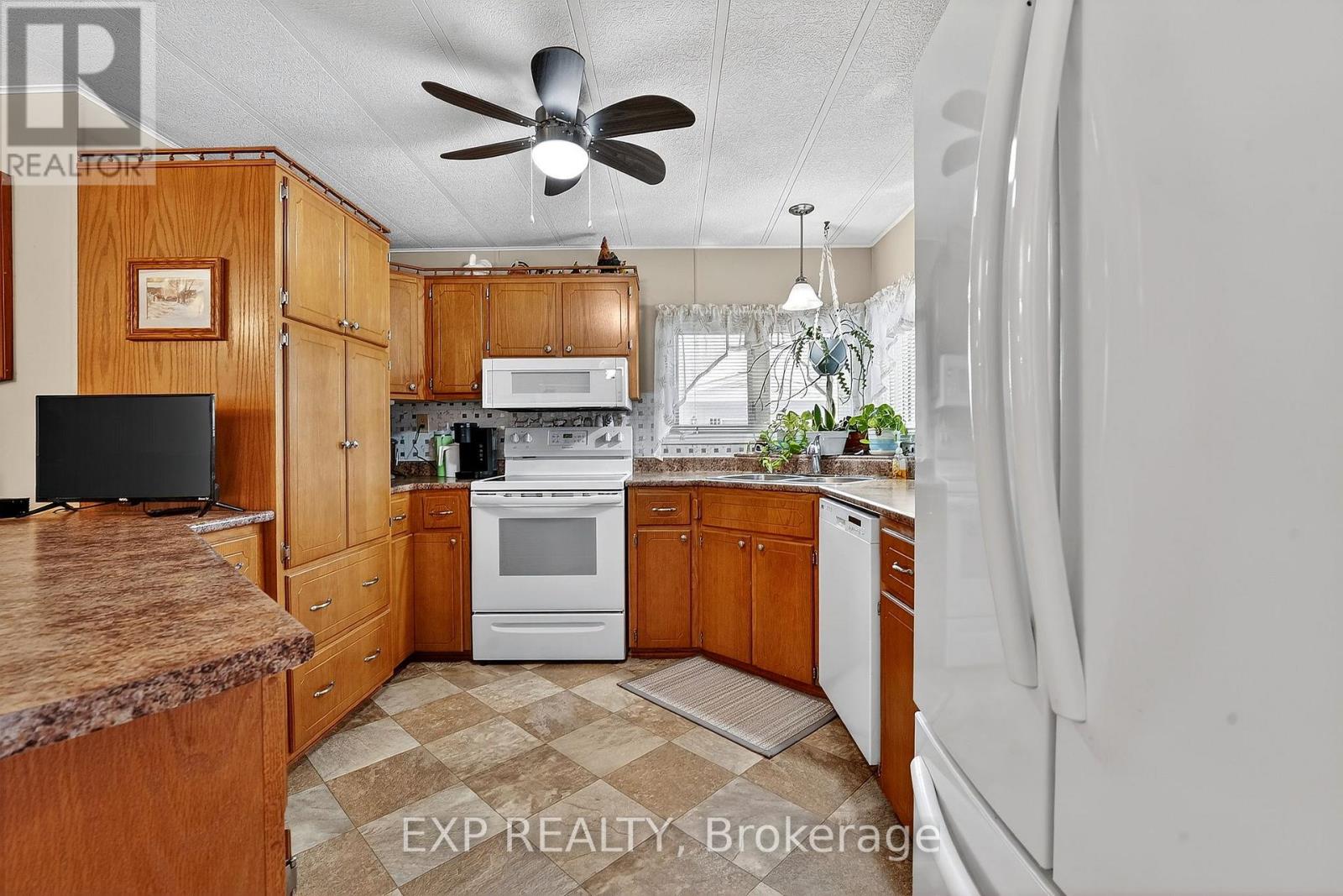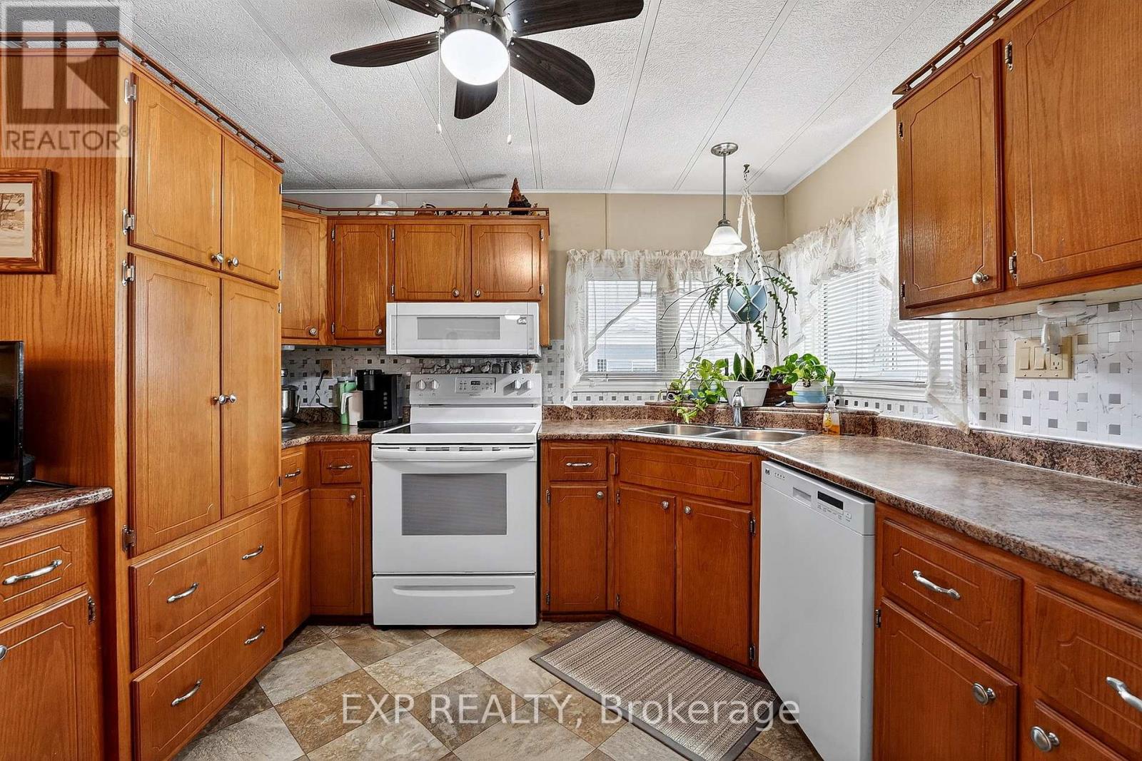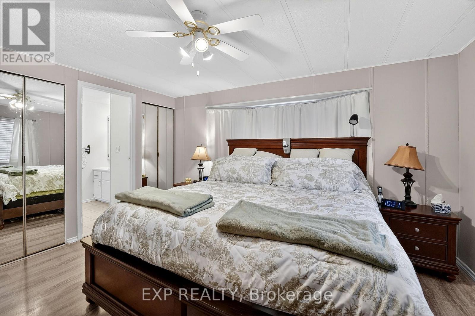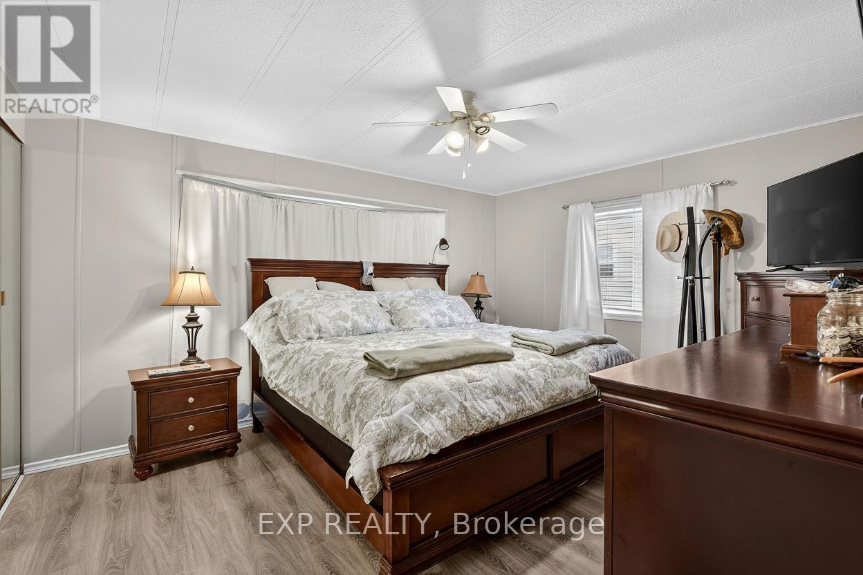Comfort, Community & Carefree Living... Welcome to Unit 308 at 3033 Townline Road (Pinewood Dr), located in the highly desirable Black Creek Adult Lifestyle Community in Stevensville. This well-maintained 2-bedroom, 2-bathroom home offers a bright, easy-flow layout designed for comfortable everyday living. The primary bedroom provides privacy with its own ensuite, while the second bedroom is ideal for guests, hobbies or a quiet home office. Generous living and dining spaces create a welcoming setting for both relaxation and entertaining. Step outside and enjoy not one, but two decks, perfect for morning coffee, afternoon reading or entertaining friends on warm summer evenings. Two sheds plus a convenient storage bin provide excellent space for tools, gardening supplies, and seasonal items, while the double-wide concrete driveway offers effortless parking and accessibility. Life at Black Creek is about more than just the home, it's about lifestyle. Residents enjoy access to a clubhouse, indoor pool, sauna, tennis and pickleball courts, fitness classes, social events and a full calendar of activities in a friendly, welcoming community. Monthly fees of $1,071.71 ($850 land lease & $221.71 estimated taxes) provide simplified, predictable budgeting and access to the amenities that make this community so desirable. Surrounded by nature yet close to everyday amenities, this is downsizing done right, where the low-maintenance lifestyle allows you to spend more time enjoying what matters most. If you're ready to downsize and upgrade your lifestyle, Unit 308 offers the comfort, convenience and vibrant community you've been waiting for. (id:64974)