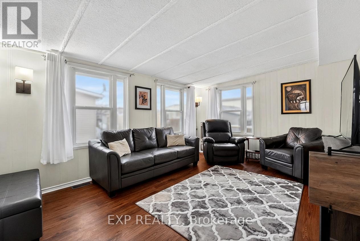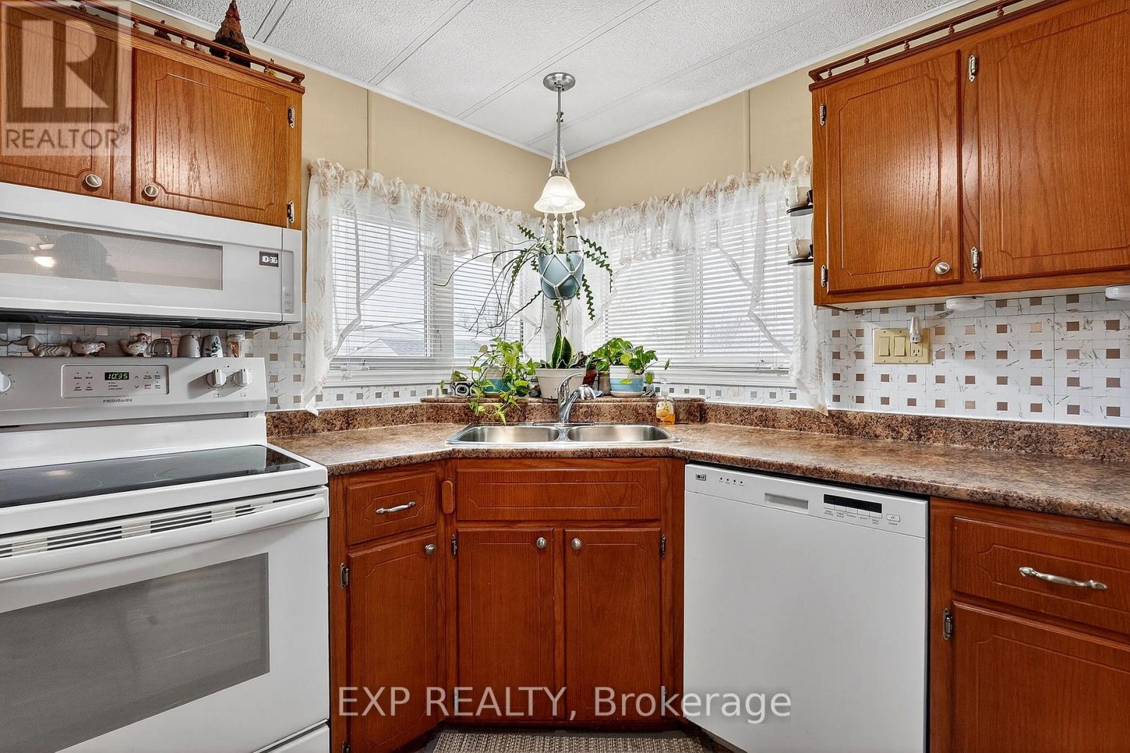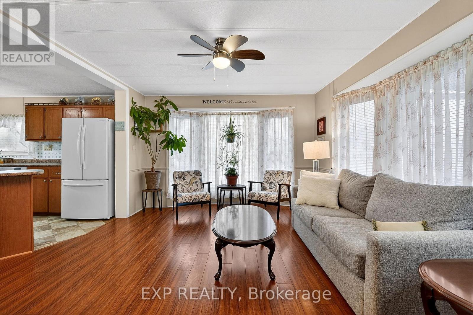 Comfort, Community & Carefree Living... Welcome to Unit 308 at 3033 Townline Road (Pinewood Dr), located in the highly desirable Black Creek Adult Lifestyle Community in Stevensville. This well-maintained 2-bedroom, 2-bathroom home offers a bright, easy-flow layout designed for comfortable everyday living. The primary bedroom provides privacy with its own ensuite, while the second bedroom is ideal for guests, hobbies or a quiet home office. Generous living and dining spaces create a welcoming setting for both relaxation and entertaining. Step outside and enjoy not one, but two decks, perfect for morning coffee, afternoon reading or entertaining friends on warm summer evenings. Two sheds plus a convenient storage bin provide excellent space for tools, gardening supplies, and seasonal items, while the double-wide concrete driveway offers effortless parking and accessibility. Life at Black Creek is about more than just the home, it's about lifestyle. Residents enjoy access to a clubhouse, indoor pool, sauna, tennis and pickleball courts, fitness classes, social events and a full calendar of activities in a friendly, welcoming community. Monthly fees of $1,071.71 ($850 land lease & $221.71 estimated taxes) provide simplified, predictable budgeting and access to the amenities that make this community so desirable. Surrounded by nature yet close to everyday amenities, this is downsizing done right, where the low-maintenance lifestyle allows you to spend more time enjoying what matters most. If you're ready to downsize and upgrade your lifestyle, Unit 308 offers the comfort, convenience and vibrant community you've been waiting for. (id:64974)