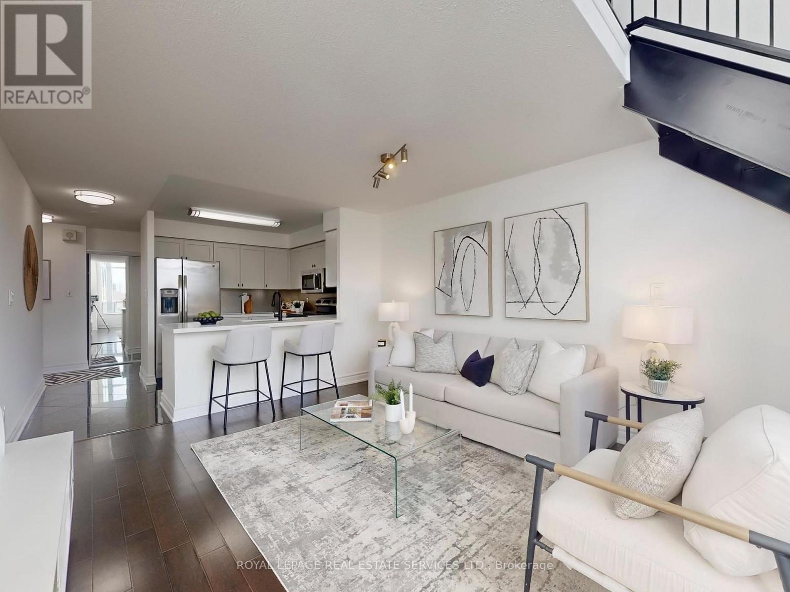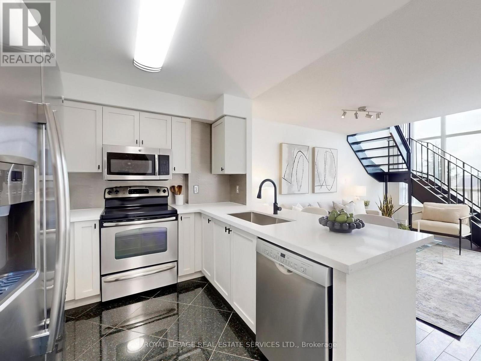 Hard To Believe Its In Richmond Hill! One Bedroom Two Bathrooms, 2 Storey Loft Condominium. Its Upscale Loft Living At The Gates Of Bayview Glen 2 Condominium With A Downtown Chic Feel. Bathrooms Have Been Renovated, Kitchen Has Been Updated And Has A Brand New Quartz Countertop Which Provides Space For Dining, And Brand New Sink And Faucet. It Has Stainless Steel Appliances. Suite Has Been Freshly Painted. Open Concept Kitchen And Comfortable Living Space And A Stunning Hardwood Staircase To Second Level. Engineered Hardwood FloorsThroughout As Per Seller, There Are Entrances To Unit On Two Separate Floors. Laundry Is Conveniently Located On Second Level With Storage Space. There Is A Foyer Upon Entrance In This Model Which Is Rare. The Building Has Begun An Extensive Renovation Including All Hallways And Lobby. It Will Look Spectacular And Brand New. Close To Langstaff Go Station, Community Centre, Shopping & Future Subway. Great Locationat Hwy 7 & The 407 Highways! Shows Extremely Well, Move Right In! Also available for sale! (id:64974)