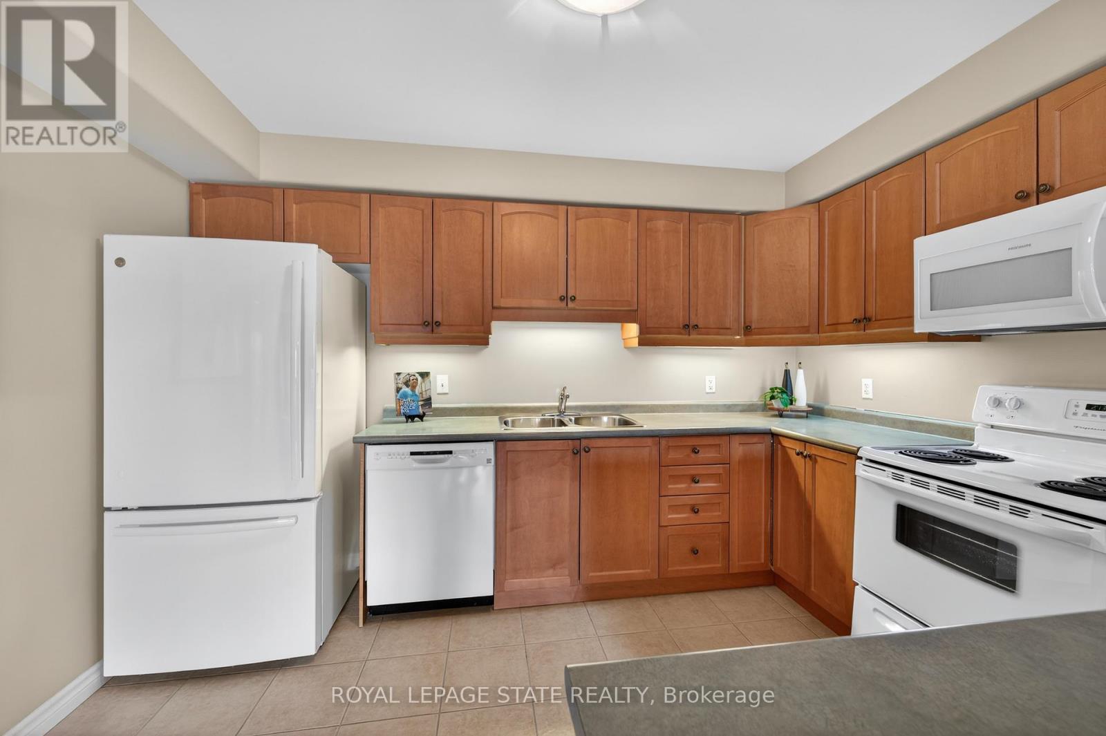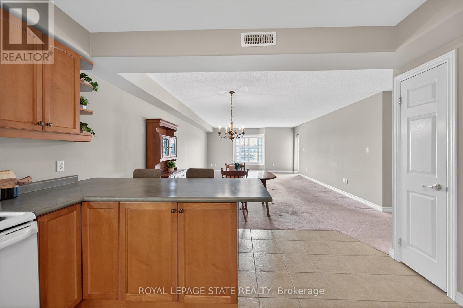 Condo living in a desirable East Hamilton Mountain neighbourhood, perfectly positioned near local recreation, nature, and everyday conveniences. This spacious two-bedroom, two-bathroom condominium offers approximately 1,362 sq ft of well-planned living space. The kitchen features warm wood cabinetry, a pantry, ample counter space, and a peninsula with breakfast bar ideal for casual meals or entertaining. The generous dining room flows seamlessly into the bright living room, with walk-out access to a covered balcony for year-round enjoyment. The thoughtful layout includes a main 3-piece bathroom with a tiled shower with glass door, while the large primary bedroom boasts a walk-through closet and a private ensuite bathroom. A second well-sized bedroom provides flexibility for guests, a home office, or hobbies. Enjoy the convenience of one underground parking space, a extra large storage unit, and building amenities that include a small gym with a washroom on the lower level. The building offers accessible features throughout the common areas, along with visitor parking located on the west side. Ideally located close to Bernie Arbour Memorial Stadium, Liuna 4 Ice Centre, scenic trails along the mountain brow, and the natural beauty of Albion Falls. Close to public transit, shopping and public library. This home is a fantastic opportunity to enjoy comfortable, low-maintenance living in a vibrant community. Some photos are virtually staged. (id:64974)