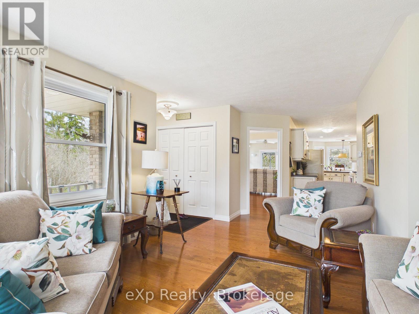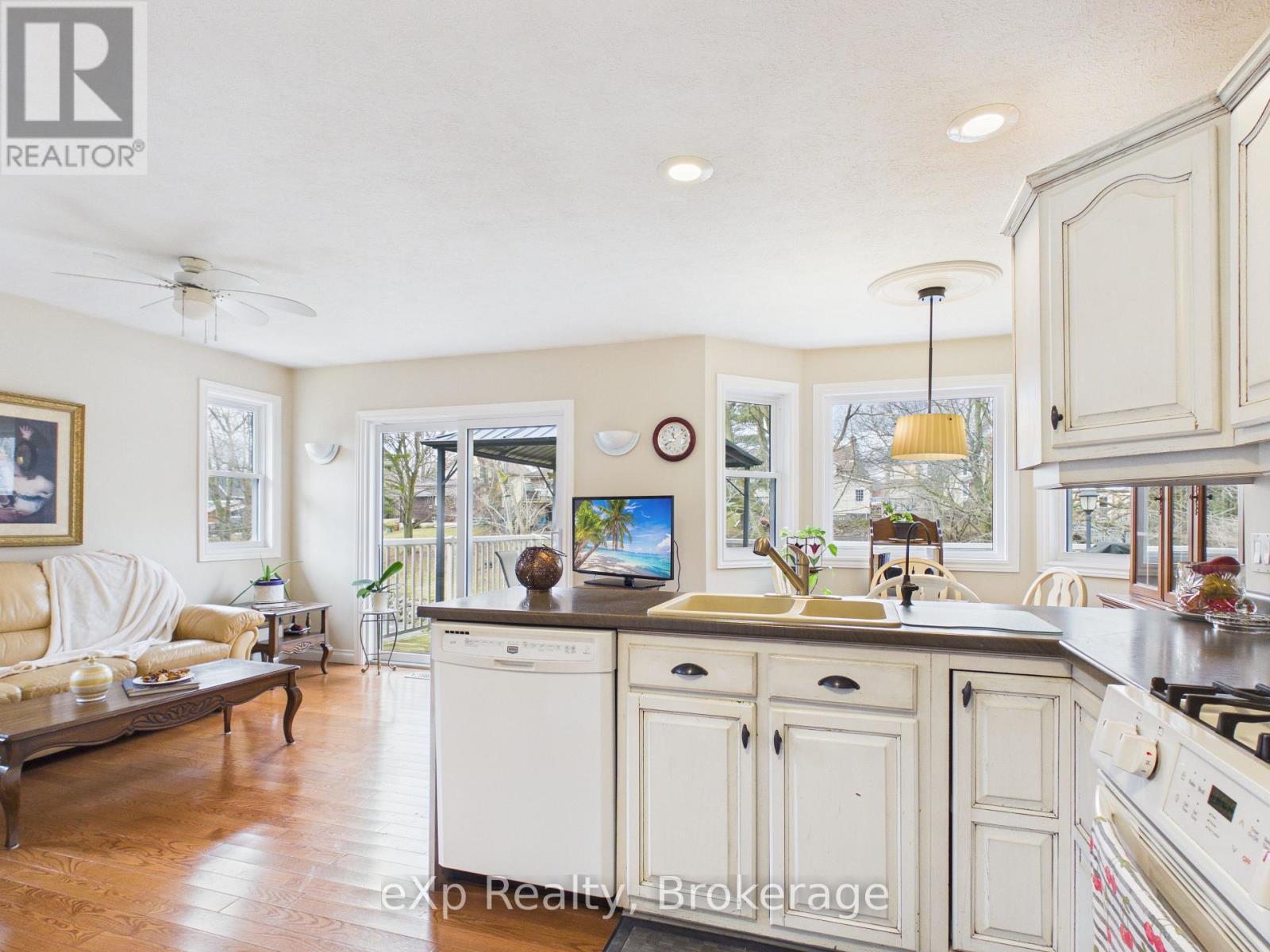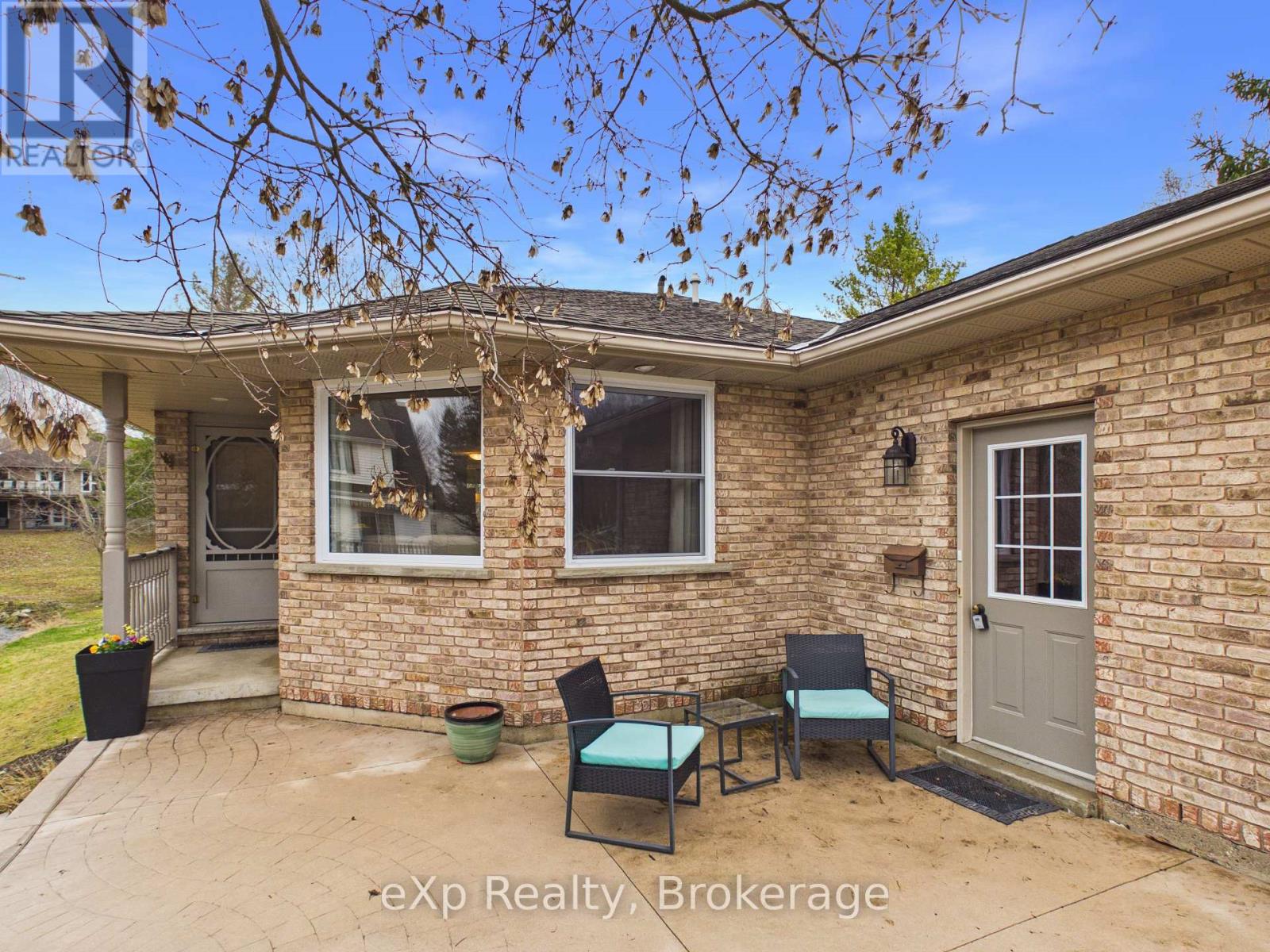 Situated on a quiet dead-end street in Walkerton, this bright and inviting three-bedroom bungalow offers a peaceful setting with Silver Creek flowing alongside the property. The home is filled with natural sunlight and features a spacious living room, dining room, and an eat-in kitchen with patio doors leading to a private deck - perfect for relaxing or entertaining. Recent updates include new windows and fresh paint throughout (2024), a new air conditioning unit (2024), and a fully carpet-free interior for a clean, modern feel. The main floor offers three bedrooms, including a primary suite with a three-piece ensuite. Additional highlights include a double car garage, oversized driveway, and stamped concrete patio. A well-maintained home in a desirable location-move-in ready and waiting for you to enjoy. (id:64974)