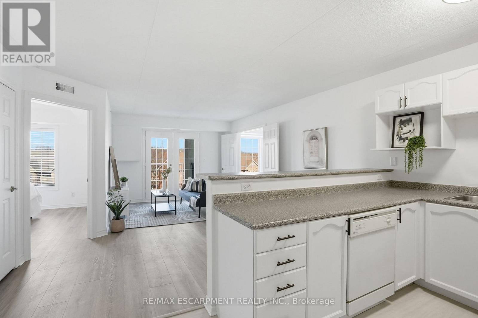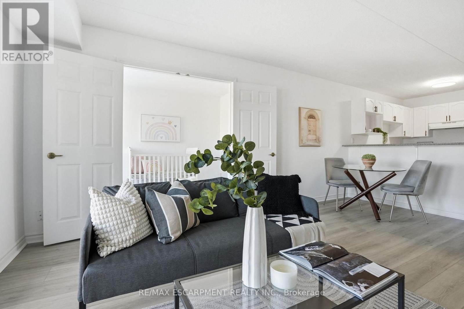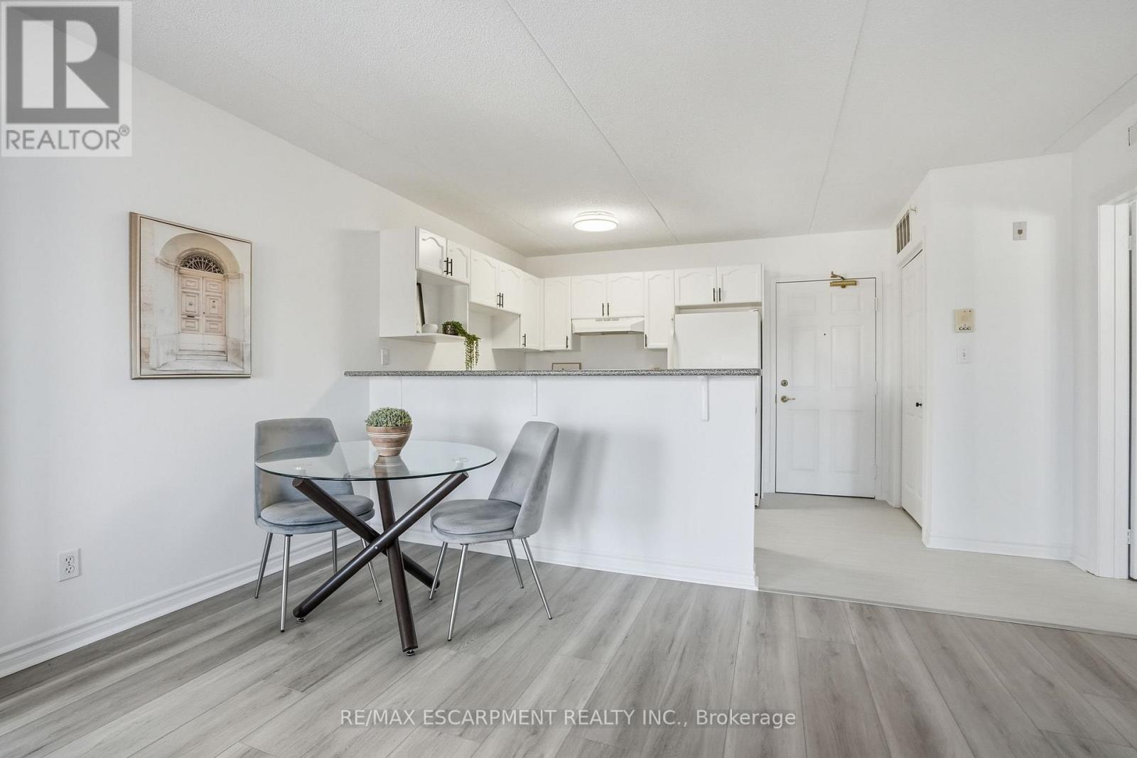 Spacious, open, and sun-filled, this fantastic condo offers 1 generously sized bedroom plus a den, a lovely balcony, 1 underground parking space, and 1 storage locker, all situated in the desirable Tansley neighbourhood of Burlington! Just steps from the scenic Tansley Woods Park and Community Centre and with easy access to major commuting routes, this condo is the perfect place to call home for first-time buyers, families, downsizers, and investors alike. The front foyer welcomes you with loads of natural light as it leads into the open dining area and living room. The balcony is the ideal spot to fire up the barbecue and enjoy homemade meals, relax outdoors, and take in the peaceful sounds of nature. The kitchen offers plenty of cabinetry and counter space and is positioned for easy everyday living and hosting. The bedroom and den are both spacious and offer beautiful neighbourhood views through the large windows. Completing this lovely condo is a tasteful 4-piece bathroom with a laundry and storage closet. Move-in ready, updates completed in 2026 include the flooring and fresh paint throughout, along with the kitchen and bathroom light fixtures and hardware. Enjoy ample parking for visitors and access to a clubhouse with a fitness centre and party room. Take advantage of this excellent location near great restaurants, shopping centres, parks, trails, schools, the beautiful Escarpment and its many renowned golf courses, public transportation including the Appleby and Burlington GO Stations, easy access to the QEW, and more. Offering charm, convenience, and space, this is a great condo to call home. (id:64974)