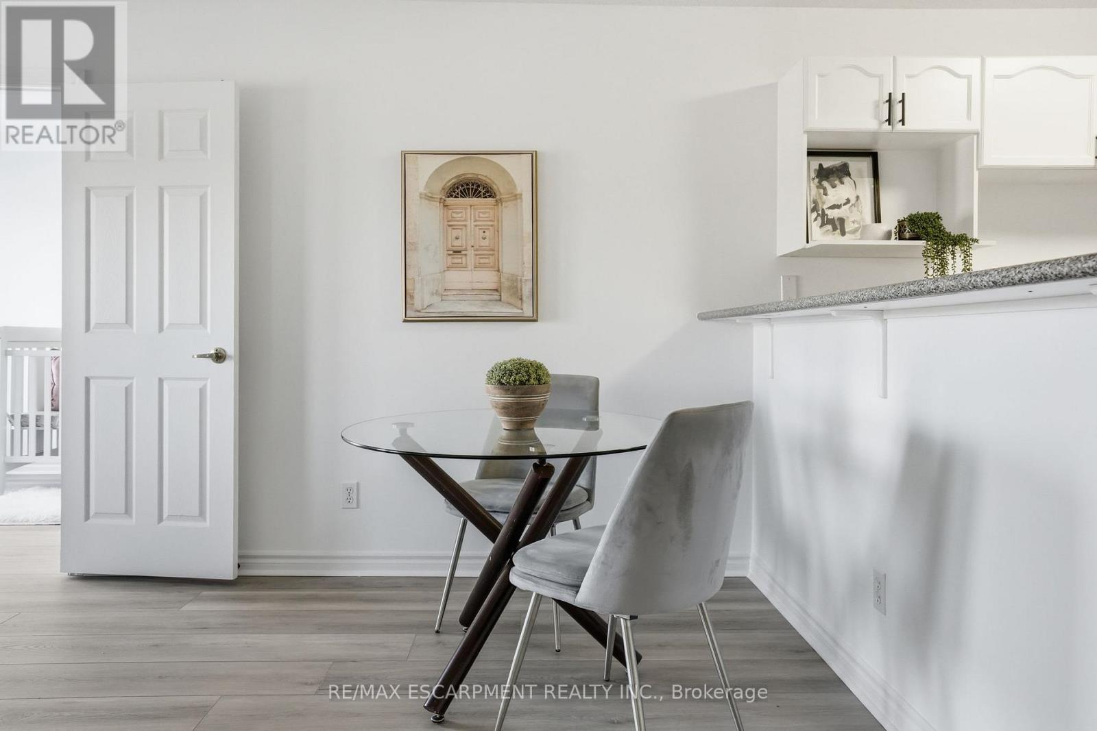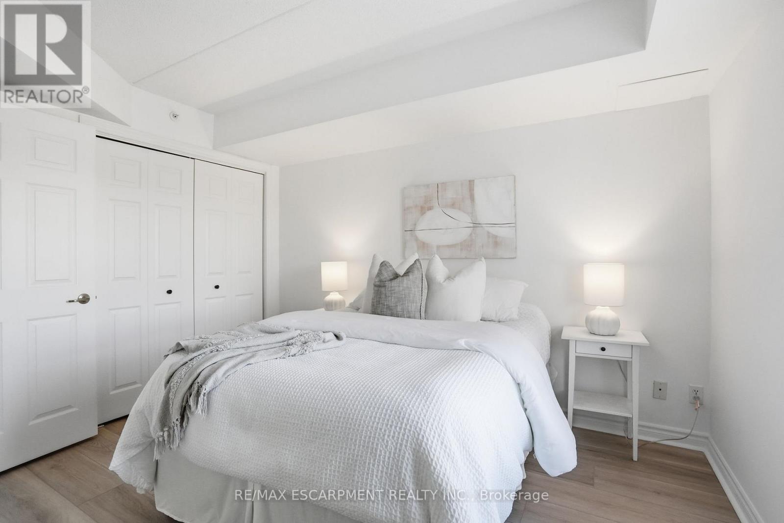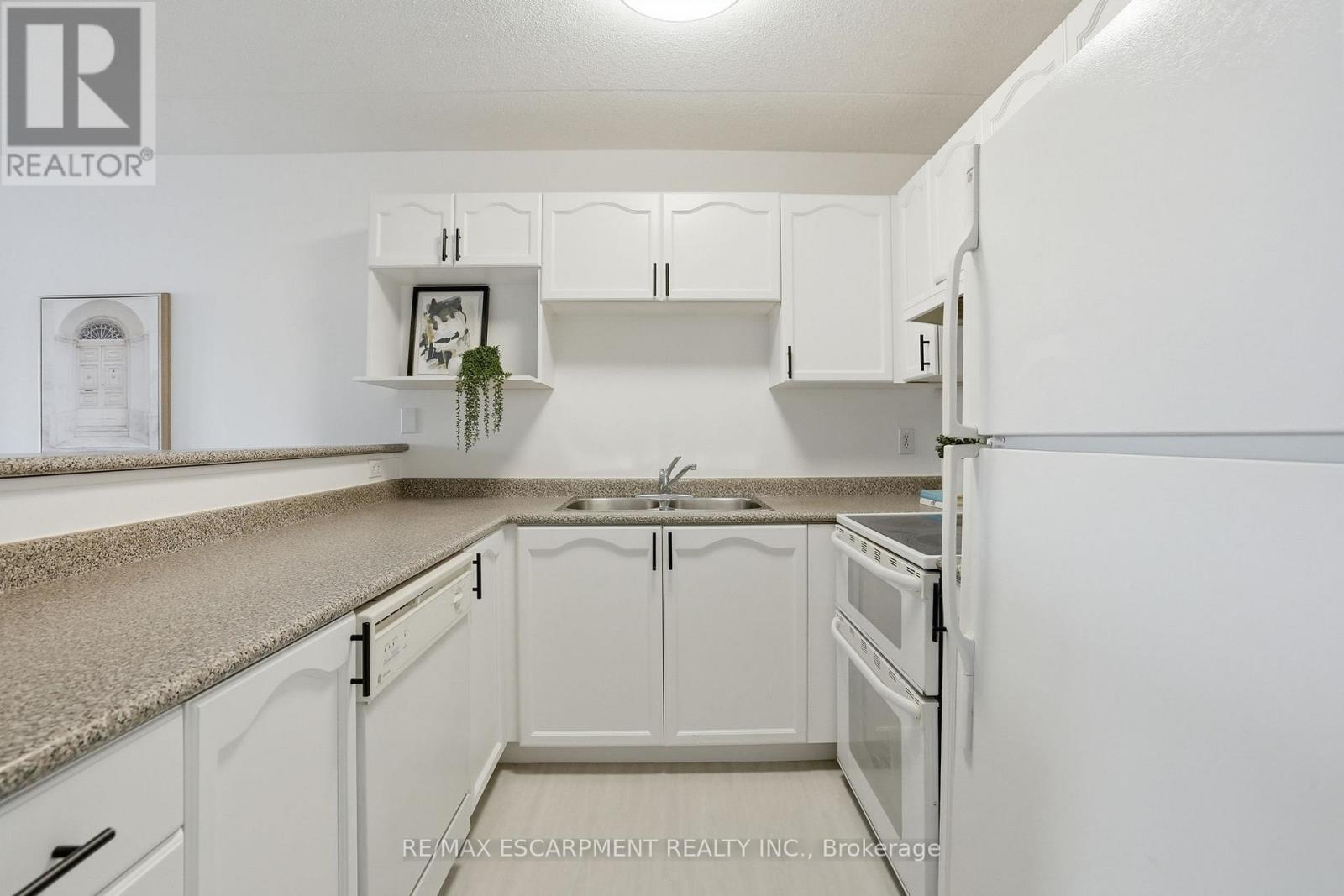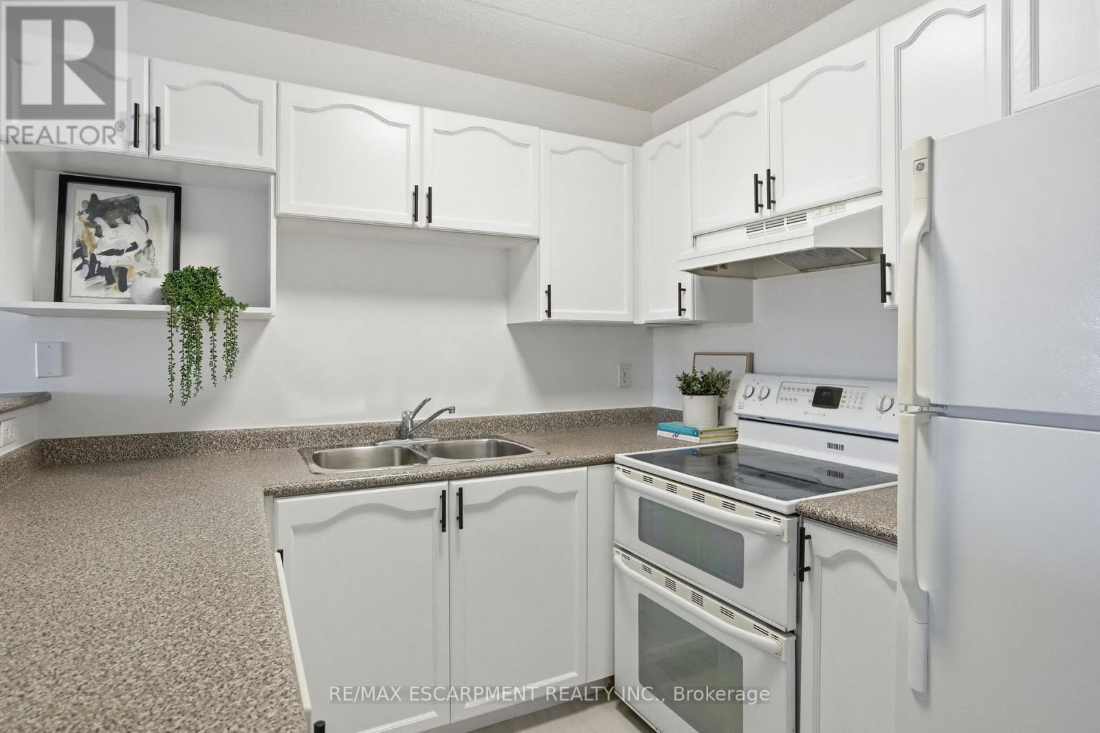 Spacious, open, and sun-filled, this fantastic condo offers 1 generously sized bedroom plus a den, a lovely balcony, 1 underground parking space, and 1 storage locker, all situated in the desirable Tansley neighbourhood of Burlington! Just steps from the scenic Tansley Woods Park and Community Centre and with easy access to major commuting routes, this condo is the perfect place to call home for first-time buyers, families, downsizers, and investors alike. The front foyer welcomes you with loads of natural light as it leads into the open dining area and living room. The balcony is the ideal spot to fire up the barbecue and enjoy homemade meals, relax outdoors, and take in the peaceful sounds of nature. The kitchen offers plenty of cabinetry and counter space and is positioned for easy everyday living and hosting. The bedroom and den are both spacious and offer beautiful neighbourhood views through the large windows. Completing this lovely condo is a tasteful 4-piece bathroom with a laundry and storage closet. Move-in ready, updates completed in 2026 include the flooring and fresh paint throughout, along with the kitchen and bathroom light fixtures and hardware. Enjoy ample parking for visitors and access to a clubhouse with a fitness centre and party room. Take advantage of this excellent location near great restaurants, shopping centres, parks, trails, schools, the beautiful Escarpment and its many renowned golf courses, public transportation including the Appleby and Burlington GO Stations, easy access to the QEW, and more. Offering charm, convenience, and space, this is a great condo to call home. (id:64974)