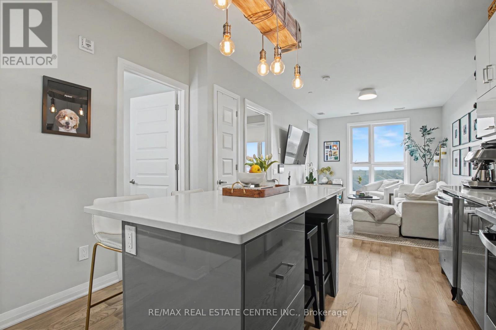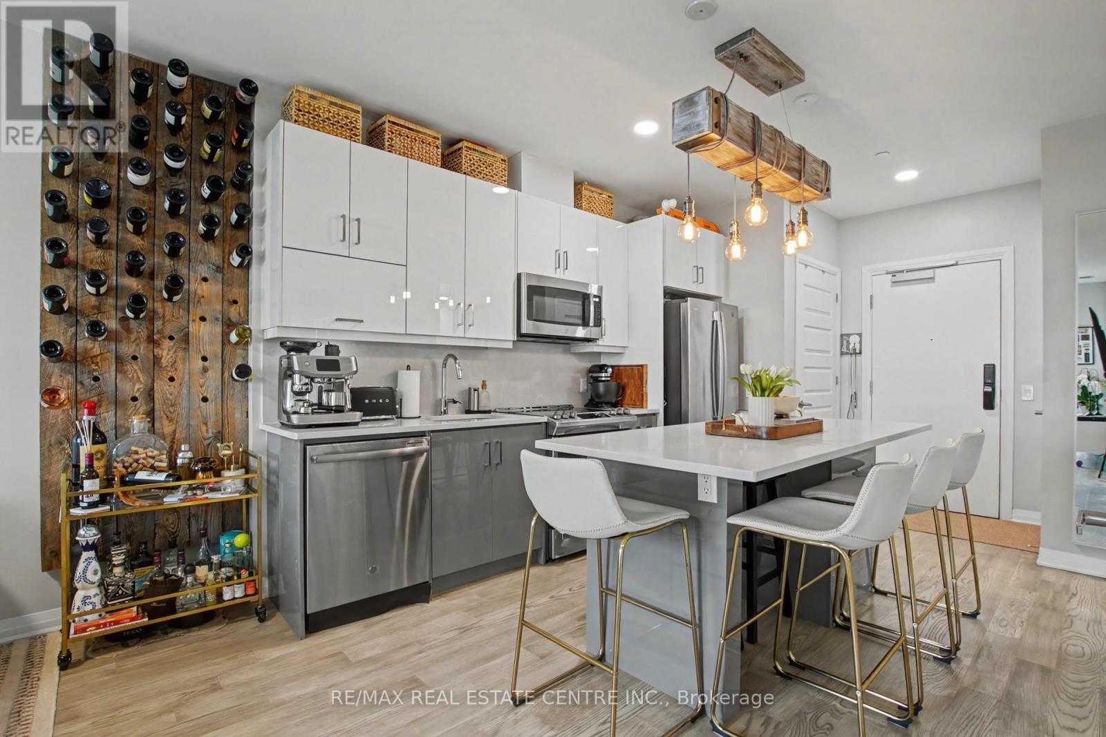 **RARE TWO CAR PARKING** This beautifully upgraded 1 Bedroom + Den condo features over $20,000 in premium Mattamy upgrades, including a rare extended kitchen island with beautiful quartz countertops that not only offers seating for up to six, but also provides valuable additional counter space. The open-concept living space is filled with natural light thanks it's south-facing exposure. Enjoy upgraded fixtures throughout, including a a beautiful shower, raised bathroom vanity and upgraded washer and dryer. One of the most exceptional features of this property is the inclusion of a storage locker and TWO underground parking spaces - a rare find in condo living. Even better, one space is equipped with an EV charger. Step outside to your private balcony to enjoy warm summer evenings, or take advantage of the building's impressive amenities. Residents have access to a spacious party room and lounge, gym and a stunning rooftop patio complete with a BBQ, fire tables, and plenty of seating, perfect for hosting friends & family. Located in a vibrant and growing community close to parks, shopping, dining, public transit, GO station, Oakville hospital, Sheridan College and major highways (407, 403, QEW), this condo offers an exceptional lifestyle opportunity in one of Oakville's most desirable areas. Offering a perfect blend of style, comfort, and convenience, this thoughtfully designed unit is ideal for professionals, couples, or investors alike. You won't want to miss the opportunity to call this condo home! (id:64974)