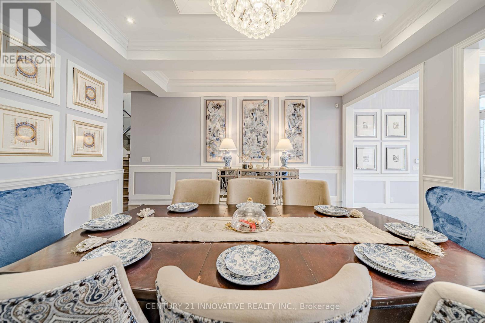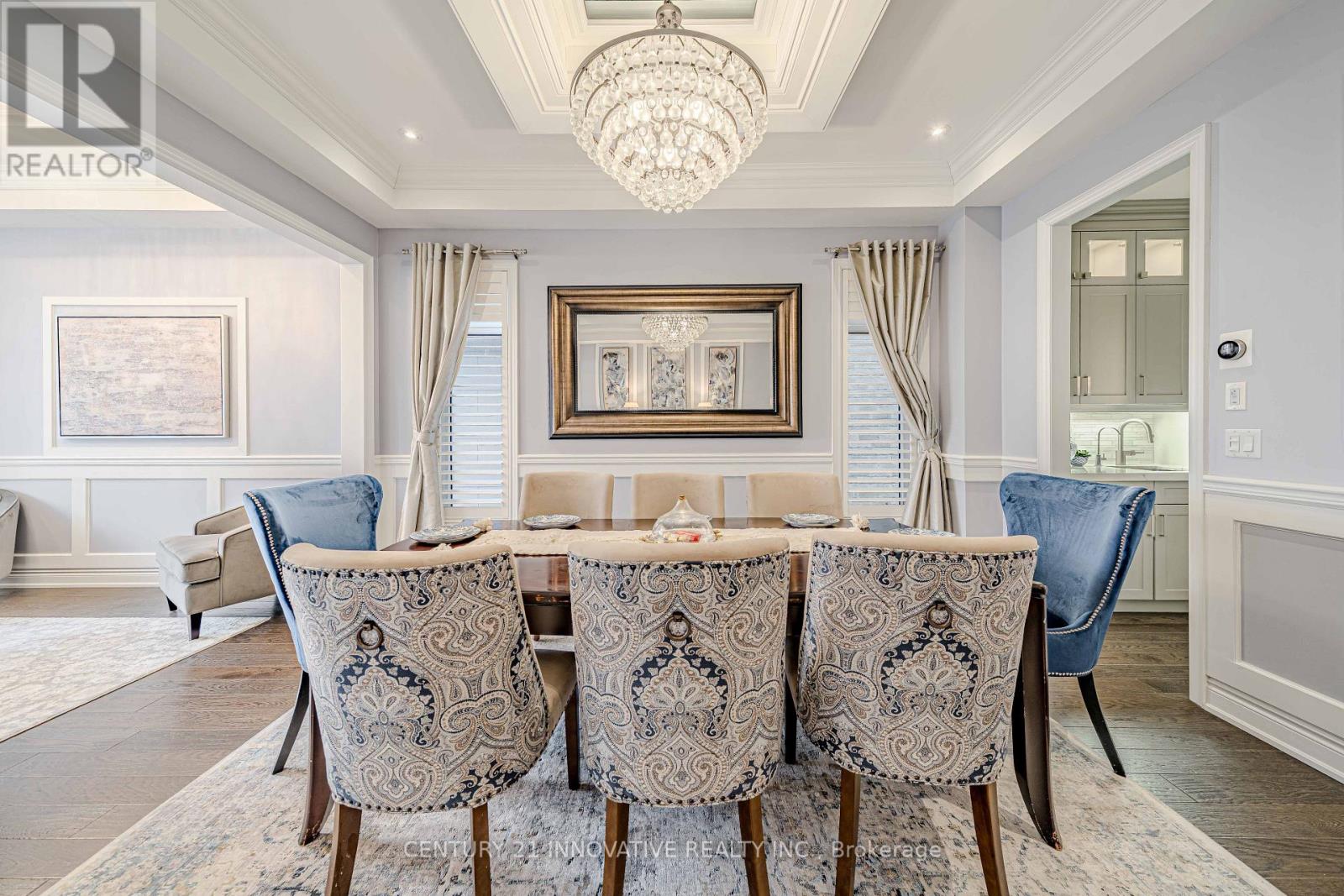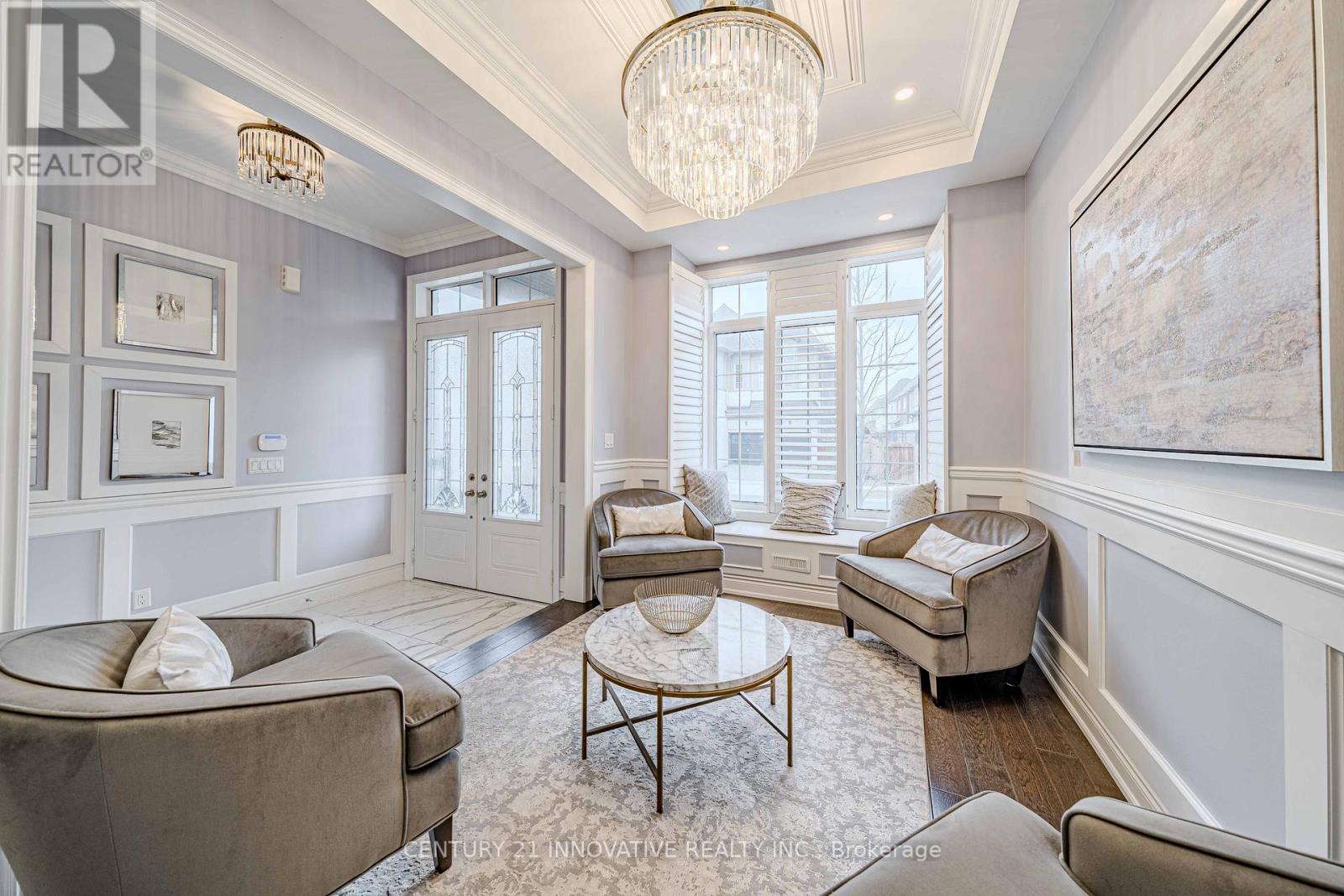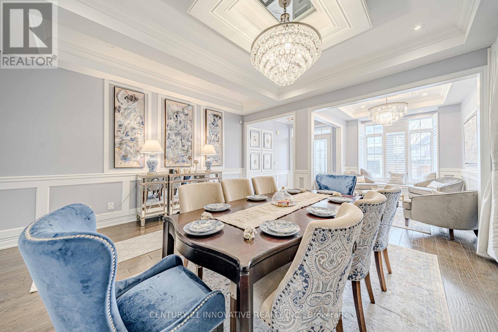 Exquisite Luxury Home on a Ravine Lot in Prestigious Seven Oaks! Boasting over 5,400 sq. ft. of opulent living space, including 3,600+ sq. ft. above grade, this masterpiece is designed for those who appreciate fine craftsmanship and unparalleled detail.Step into grandeur with soaring 11' ceilings on the main floor and solid 9' wood doors throughout. Crystal chandeliers illuminate the elegant living and dining areas, creating an entertainer's dream with custom wainscoting and detailed ceiling designs.The chef's kitchen is a showstopper, featuring built-in Sub-Zero & Wolf appliances, Italian quartz countertops, and dual-tone extended cabinetry. The family room exudes warmth, showcasing a waffle ceiling, gas fireplace with stone mantle, and oversized windows that flood the space with natural light. A grand staircase with glass railings adds to the home's sophisticated charm.The primary suite is a retreat with double walk-in closets leading to a spa-inspired ensuite with upgraded marble countertops. The second bedroom boasts a wall of windows, walk-in closet, and a private 3-piece ensuite, while the third bedroom rivals the primary in size, featuring a deep walk-in closet and Jack & Jill ensuite with 9'ceilings.A professionally finished basement with soaring 10' ceilings offers a soundproofed theatre room, linear gas fireplace, and custom shelving. A roughed-in sauna/steam room and second kitchen add future potential, complete with gas range, cabinetry lighting, and appliance rough-ins.Backing onto lush green space, this home is perfectly situated near top-rated schools, parks, shopping, dining, community centers, and major highways.This is the new definition of luxury! (id:64974)
