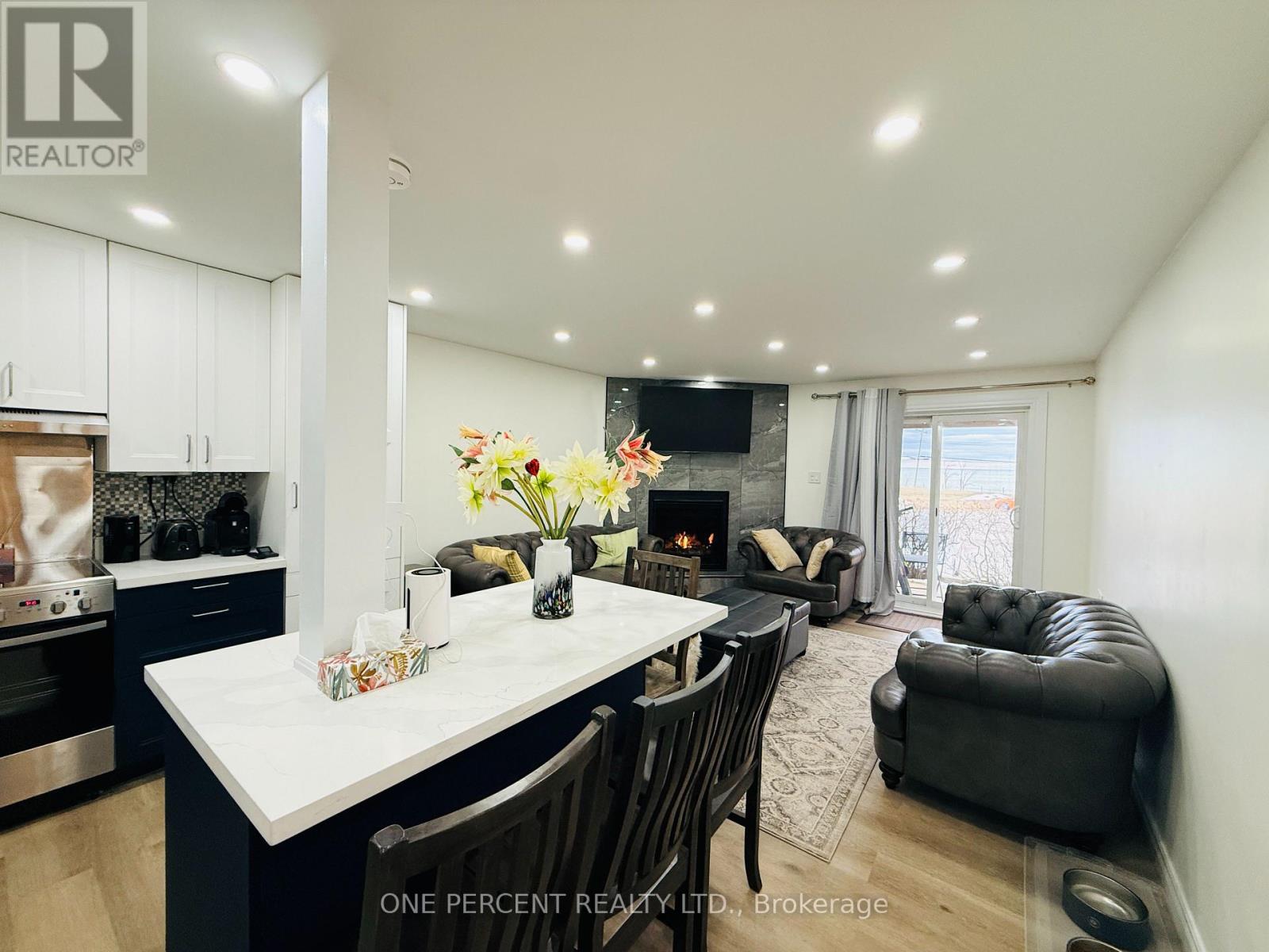 Welcome to Craigleith Shores, one of Blue Mountain's best kept secrets. Unit 31 is a rarely offered ground-floor condo with a lake view and direct walkout to parking. Inside, the unit has been fully renovated with a brand new kitchen featuring updated cabinetry, appliances, and a functional island, perfect for entertaining after a day on the trails or the slopes. Additional upgrades include fresh flooring, pot lights, a renovated 4-piece bathroom, new electrical panel, a full-sized owned natural gas water heater, and fresh paint throughout. Comfort is covered year-round with new electric baseboards as supplemental heat to the brand new gas fireplace, the focal point of this unit. Just bring your suitcase as this Unit comes completely furnished and outfitted. Enjoy your own private patio with an exterior storage locker. Craigleith Shores is known for its amenities: an inground outdoor pool, sauna, fitness room, laundry facilities, bike storage, kayak/canoe racks, a newer outdoor fire pit and patio area, newly renovated hallways and lobby, plenty of visitor parking, direct access to the Georgian Trail and steps to Georgian Bay. Exceptional value as a weekend getaway or comfortable full-time home, either way, Unit 31 is an easy one to love. (id:64974)