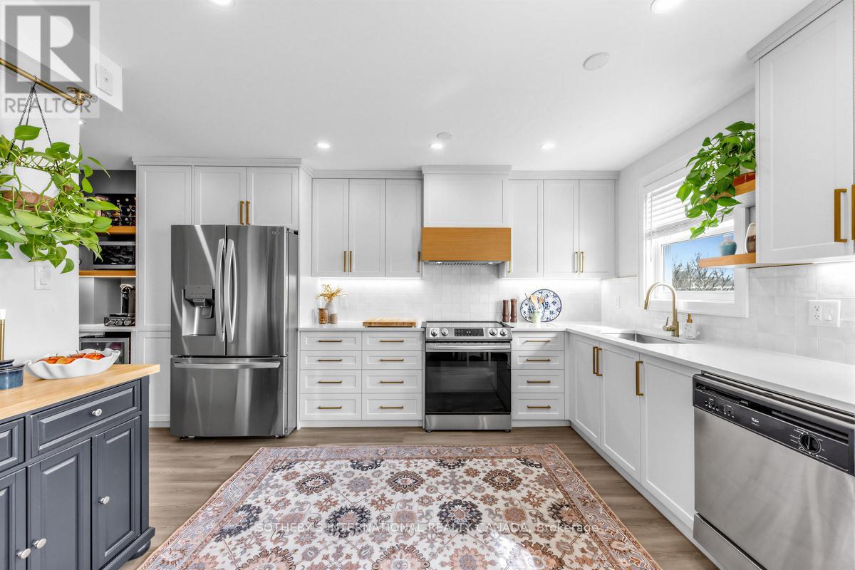 Nestled in one of Miltons' most desirable neighbourhoods is this beautifully maintained 3 bedroom end unit townhouse, with stylish and modern updates. Ideal for first time buyers or investors, this house offers plenty of space for everything you wish for in a home. Relax in the warm and spacious living room that is easy to entertain in, with a walk-out to the pretty, enclosed patio/ garden with space for a BBQ and garden storage.A stunning kitchen with a butler station, pantry (we all love storage), and eat in breakfast corner is perfect for every day living or hosting family and friends. The upper levels include three good sized bedrooms, the primary bedroom comes with built-in closets and an ensuite bathroom with heated floor, so no need to share with the rest of the family! Bedroom two and three are perfect for guests or children, and are next to a modern 4 pc bathroom and linen closet.The basement level offers a very versatile space that can be used as a home office, or an extra sleeping area for guests, or yoga/ gym area or kids play area - the possibilities are up to you.The whole house was recently painted, and with this many updates you can move in and enjoy the space for years before having to think about doing anything new. Front Door Replacement 2024. Roof replacement & new Shingles 2025. Garage Door Aluminium Capping Replacement 2024. Entrance Powder Room (2pc washroom) Refinished - 2025. Main Bedroom - Custom built in closet system installed 2022. Upstairs rooms - new ceiling fans 2024, new closet inserts 2025. Kitchen - full custom kitchen renovation 2022, new fridge 2025. This is the only unit that includes kitchen exhaust system that exhausts to exterior.. New Washer/Dryer 2021. Water Softener Installation and Rental 2023. This is an amazing opportunity to own a home where everything has been thought of, and is ready to move in and make your own. (id:64974)