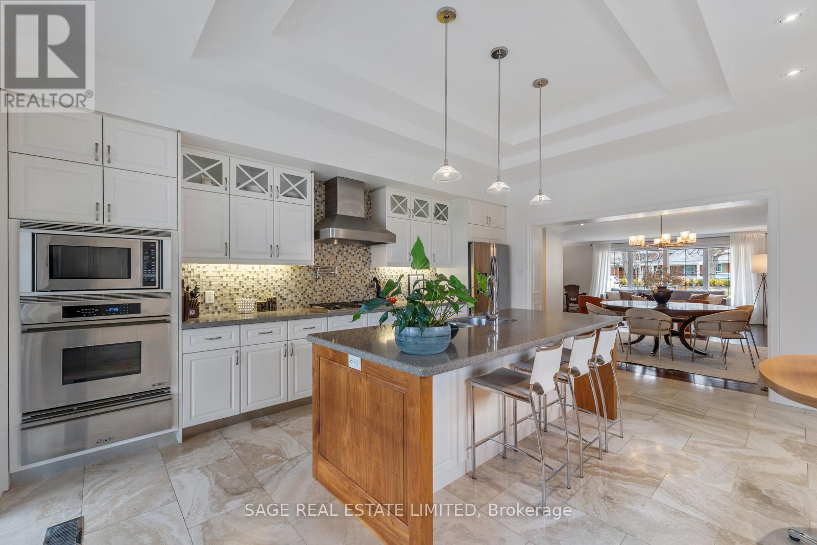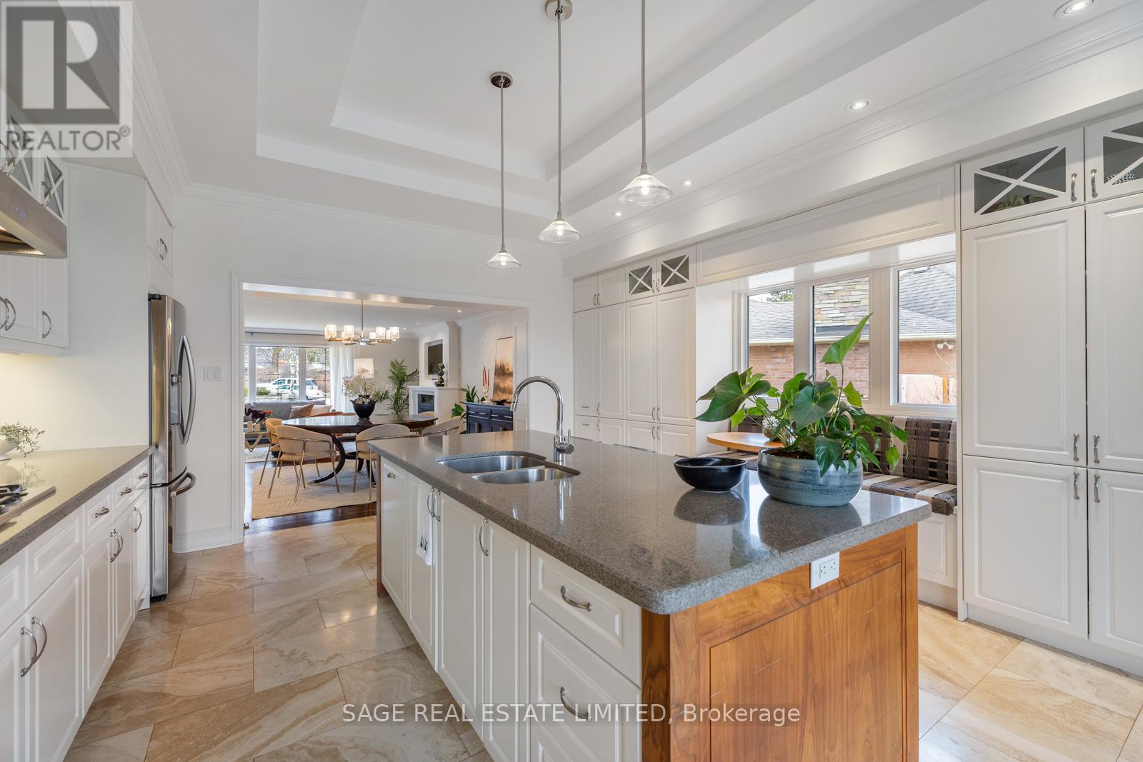 A private retreat in the heart of the city-where Muskoka-inspired living meets everyday Toronto convenience. 31 Ashwood Crescent is a highly desired detached bungalow with 3+1 bedrooms, 3-bathrooms , ideally situated in the exceptional community known as "The Manor." Professionally designed, beautifully updated, and meticulously maintained, this 4400+ square foot home sits on a generous pie-shaped lot, offering an impressive sense of space both indoors and out. The backyard is a true sanctuary, complete with a large covered deck, outdoor fireplace, hot tub, towering fence, and a large shed, a space perfect for relaxing evenings or effortless entertaining, big enough for a pool! The stunning kitchen is both refined and functional, featuring stainless steel appliances, a gas stove, travertine flooring, tons of built-in storage, a well-appointed breakfast bar, and elegant high ceilings. It flows seamlessly into bright, inviting living and dining areas, highlighted by a stylish hosting bar and a striking gas fireplace that anchors the space. The primary suite is a serene escape, offering a large walk-in closet and a luxurious five-piece ensuite with a deep soaker tub and walk-in rain shower. Completing the main level are two more large bedrooms and a well-appointed 4-piece bathroom. The lower level adds incredible versatility, featuring a private office ideal for working or hosting clients from home, a huge family room, and an additional bedroom for guests or extended family. A large, bright laundry room with multiple sinks, cold storage room, and a dedicated home gym complete this expansive lower level. With a rare two-car heated garage/workshop with storage, parking for up to six vehicles, and the added peace of mind of a Generac generator, this home delivers both comfort and practicality in one of the area's most sought-after communities. A refined blend of elegance, lifestyle, and space-this is Muskoka living in the city. Some outdoors photos altered using AI. (id:64974)