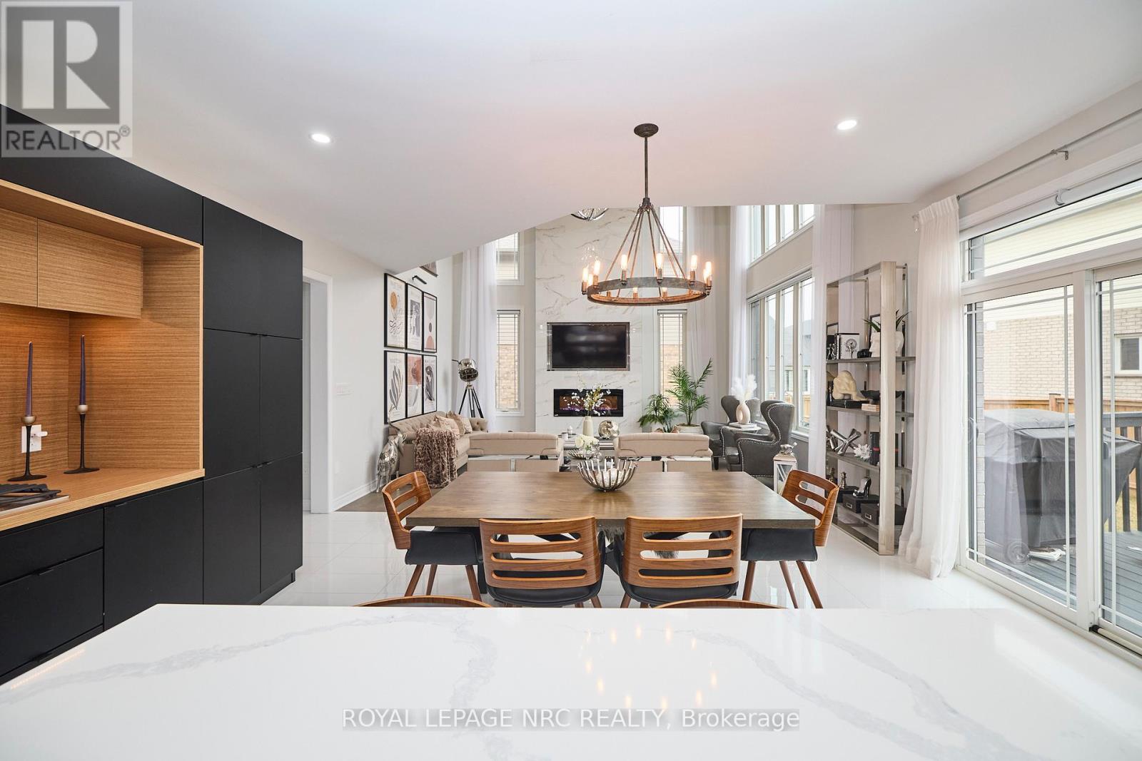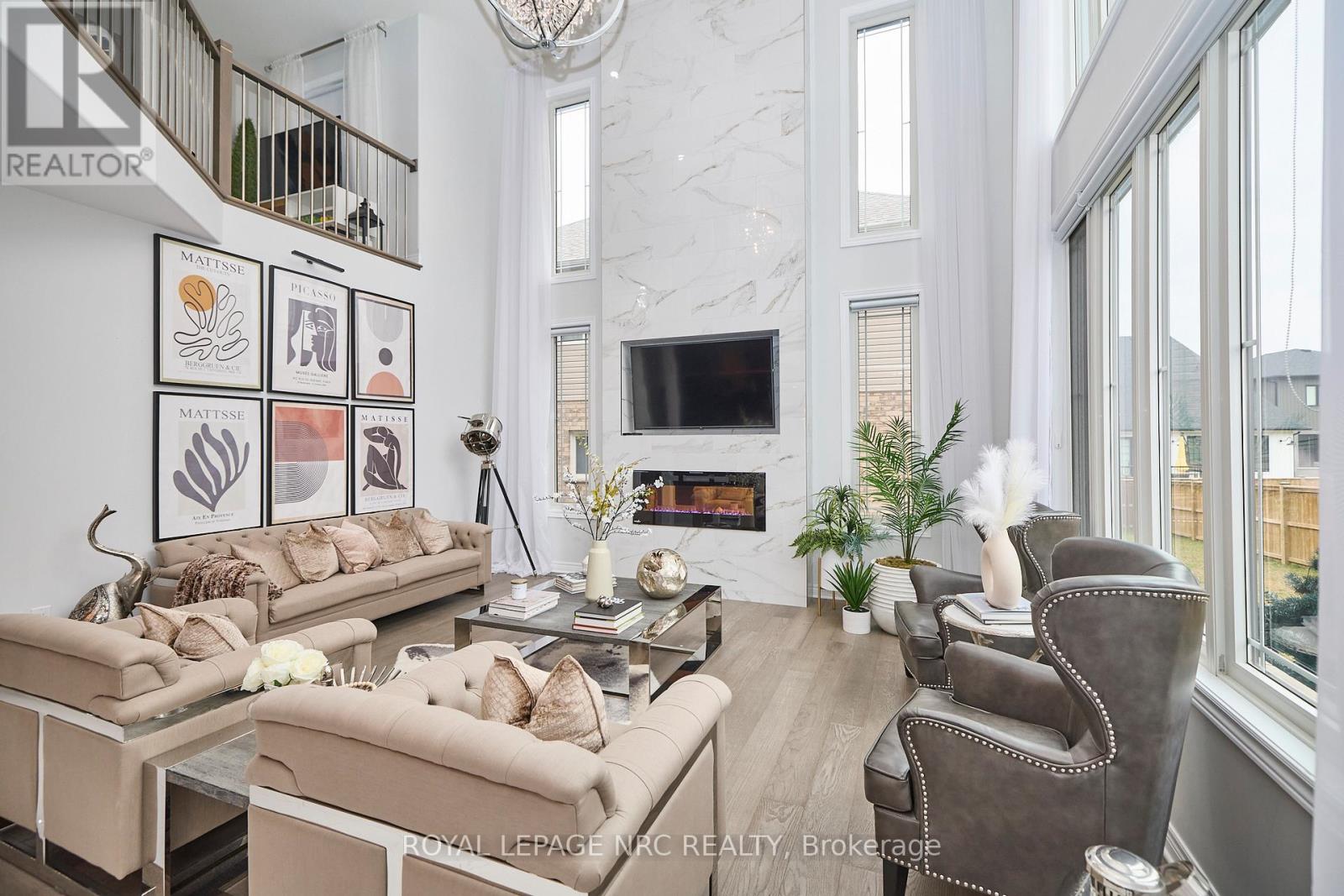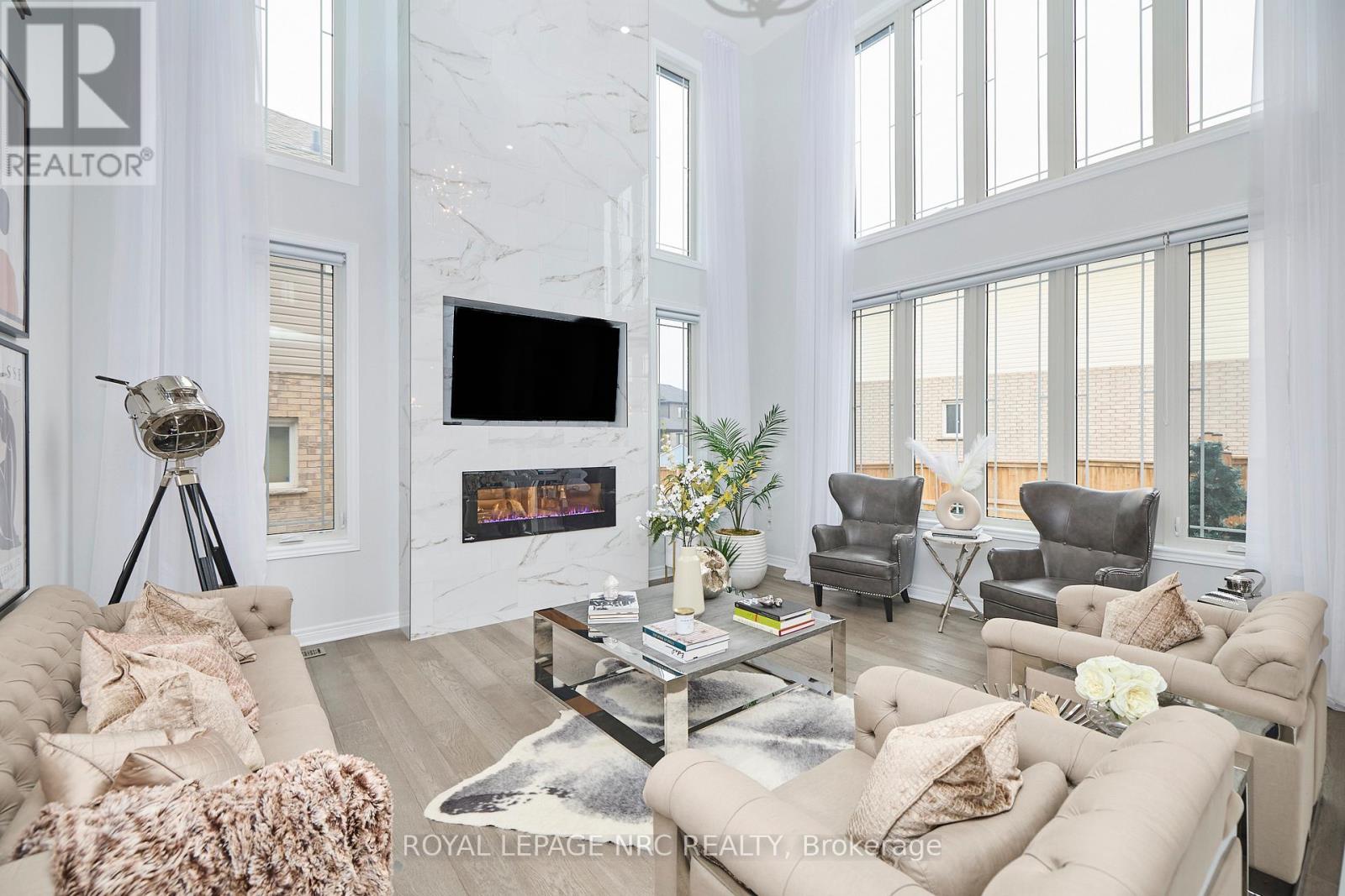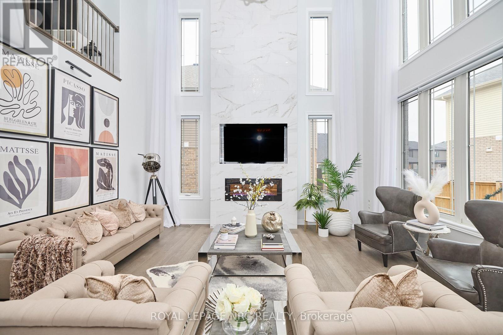 Welcome to 31 Bergenstein Crescent, an exceptional showpiece in the heart of Fonthill, masterfully built by reputable Marken Homes where innovation, and custom home excellence is built throughout Niagara. Showcasing sleek modern design and impressive architectural detail, this stunning residence offers 4 bedrooms, 2 full baths, 2 half baths, and over 3,200 sq. ft. above grade, creating the perfect balance of sophistication, comfort, and family functionality.From the moment you arrive, the striking two-storey pillared entry sets the tone for what awaits inside. Step into the grand foyer where soaring 20-ft ceilings, gleaming white tile flooring, and elegant sand-toned engineered hardwood create a bright, airy, and unforgettable first impression. The front den and spacious formal dining room offer ideal spaces for working from home or entertaining in style.At the heart of the home, the dramatic Great Room stuns with 22-ft ceilings, expansive cascading windows, and a spectacular floor-to-ceiling marble linear fireplace that anchors the space with refined elegance. Seamlessly open to this impressive living area is the breathtaking designer kitchen by Phoenix Kitchens Ltd., where expert craftsmanship shines. Designed for everyday living and entertaining alike, it features a large quartz centre island, custom cabinetry, and a striking stove niche/coffee centre framing the gas cooking area. A concealed servery/butler's pantry with second stove, sink, and added storage keeps preparation neatly behind the scenes.The 2nd level continues to impress with an open loft and balcony accented by brushed stainless and wood railings overlooking the Great Room below. The serene primary suite offers a luxurious 5-piece ensuite with soaker tub and glass walk-in shower. Three additional bedrooms, a stylish 4-piece bath, and convenient upper-level laundry complete this outstanding home.Modern luxury, grand proportions, and a prime Fonthill location-this is where your next chapter begins! (id:64974)