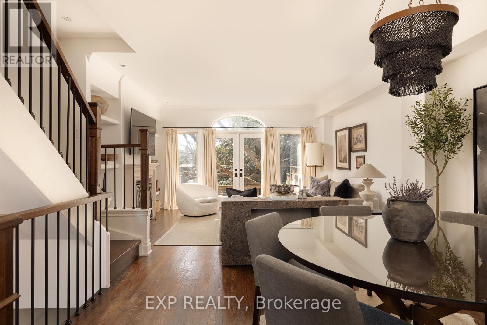 Welcome to your Georgian custom finished townhome in the highly coveted South Kingsway community. Completely renovated in 2021, this freehold luxury townhome filled with sunlight from a wall of south facing windows and doors offers 3 generous sized bedrooms on the second floor including the primary suite which feels like a living quarter of its own on the third floor. The ground floor offers a bedroom and ensuite perfect for guests, a teen or as a nanny suite. As well, the ground floor offers an additional flex space which functions perfectly as a home office. The renovation of this home included a brand new custom built kitchen with a paneled dishwasher, a gas line to allow for a gas range and a more conducive kitchen layout to a busy family. New flooring was laid throughout the entire home, the banister was replaced with modern spindles and posts, popcorn ceilings were removed throughout the entire home and an additional full bath was added in the basement to allow for an ensuite. Finally, with special attention paid to the aesthetics of beautiful living, romans were installed customized to the kitchen windows and plaster shelving was installed in the family room as well as a cast stone mantel to set the mood perfectly on winter evenings. Custom height baseboards were installed throughout the home making sure that no small detail was overlooked in giving this home the feeling that any custom finished home in the Kingsway would offer. Just steps to the coveted Lambton Kingsway J.M. School, shops on Bloor Street, transit by TTC and minutes from both downtown and the airport make this home the perfect place to land in Toronto. (id:64974)