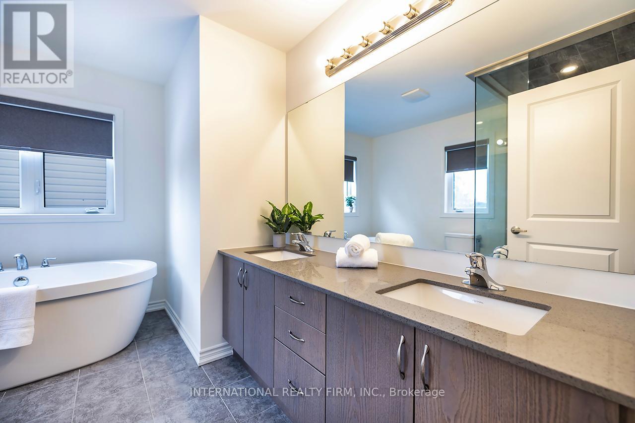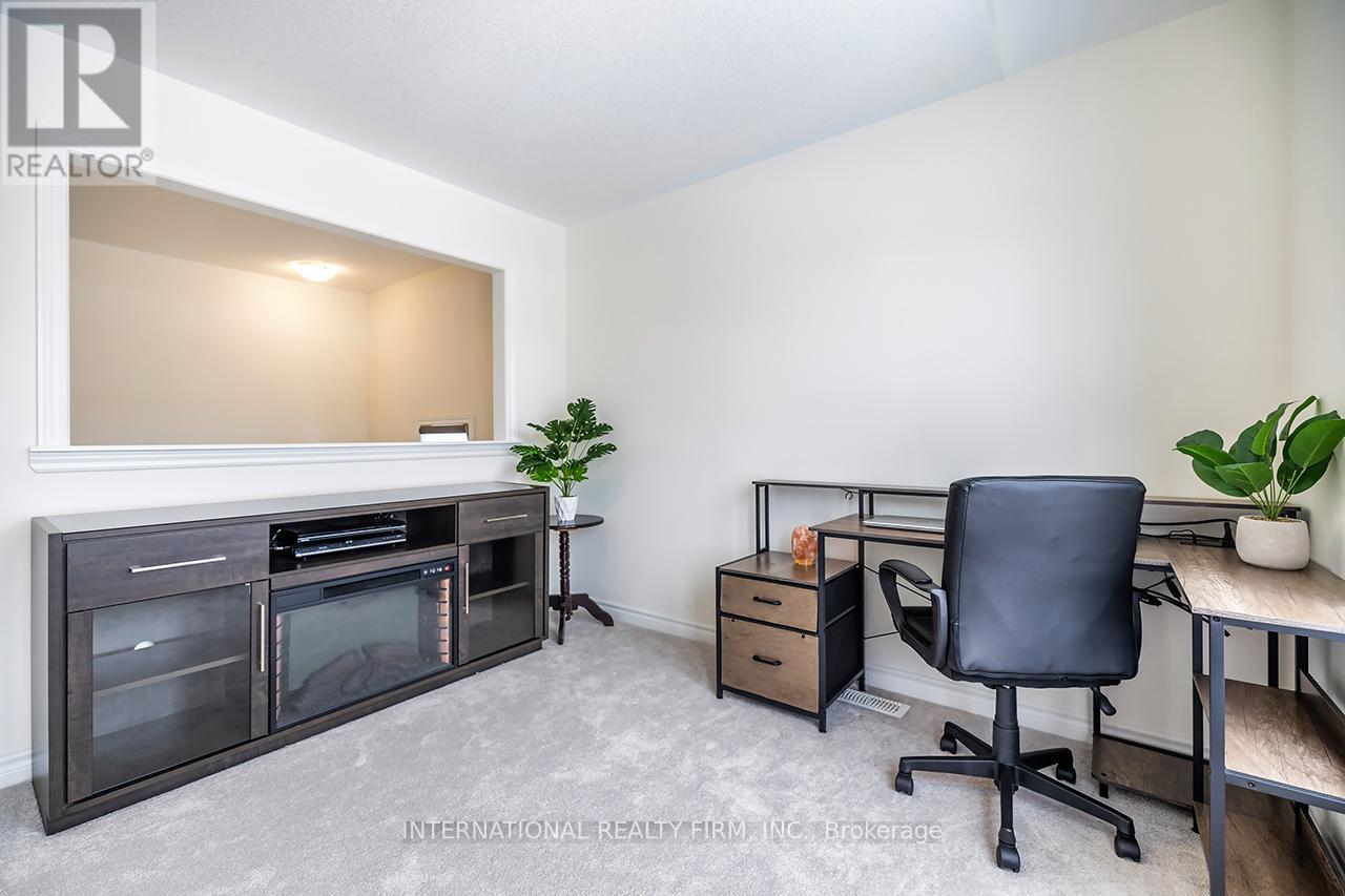 Welcome to this beautifully maintained 4-year old home, the perfect starter for any family. With a functional layout and filled with natural light throughout, this 3 bedroom, 3 bathroom home offers comfort, style and everyday practicality. The inviting great room features a cozy gas fireplace and flows seamlessly into the dinning room and upgraded kitchen, complete with quartz countertops, upgraded appliances, and walk-in pantry for exceptional storage. Quartz surfaces continue throughout all bathrooms creating a refined and cohesive finish. A main floor laundry room connects to the mudroom with direct garage access, while a walk-in closset off the foyer adds even more convenient storage upon entry. The extremely spacious primary bedroom boasts a bright walk-in closet and a 5 pc spa-like ensuite designed for relaxation. The second level is complemented by two well-sized additional bedrooms and a versatile media room, currently used as a home office that can easily be conververted into a fourth bedroom. The unspoiled basement with bathroom rough-in is ready for your vision, whether a rec space, gym, or additional living area. Outside, an irrigation system services both front and back yards on a premium property backing onto Joan Park. Additional upgrades include custom zebra blinds, water softener and wired-in security cameras. Meticulously cared for and truly move-in ready, this bright and thoughtfully upgraded home offers the perfect blend of modern finishes, smart design, and long-term value. (id:64974)