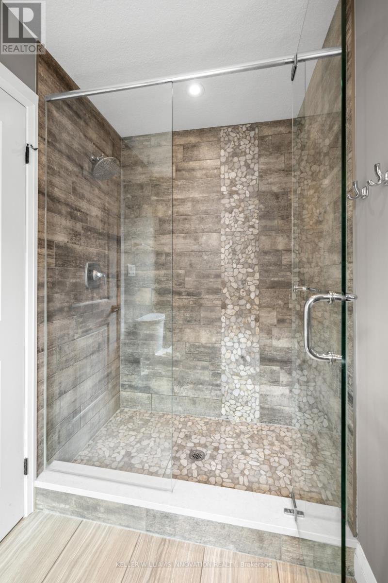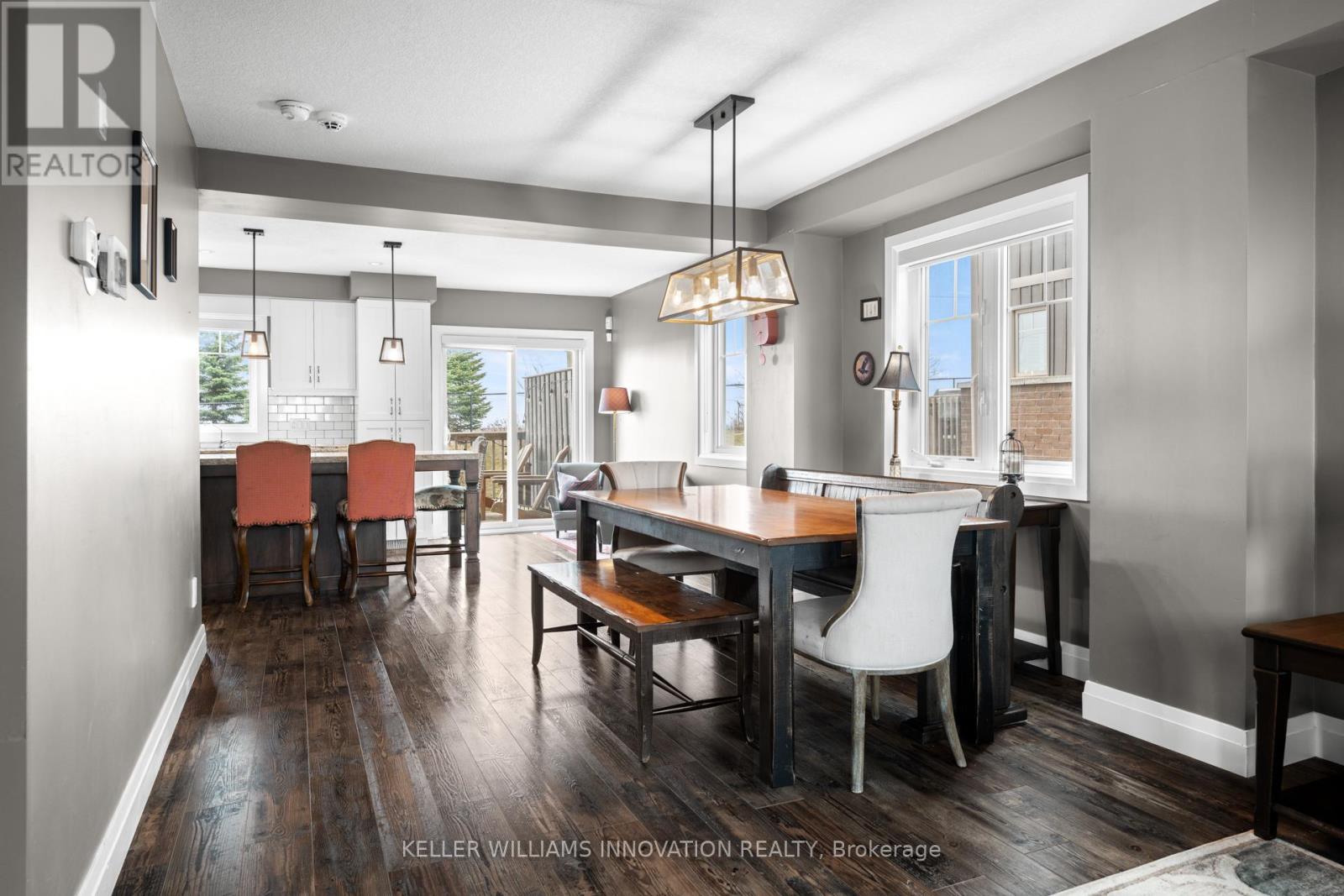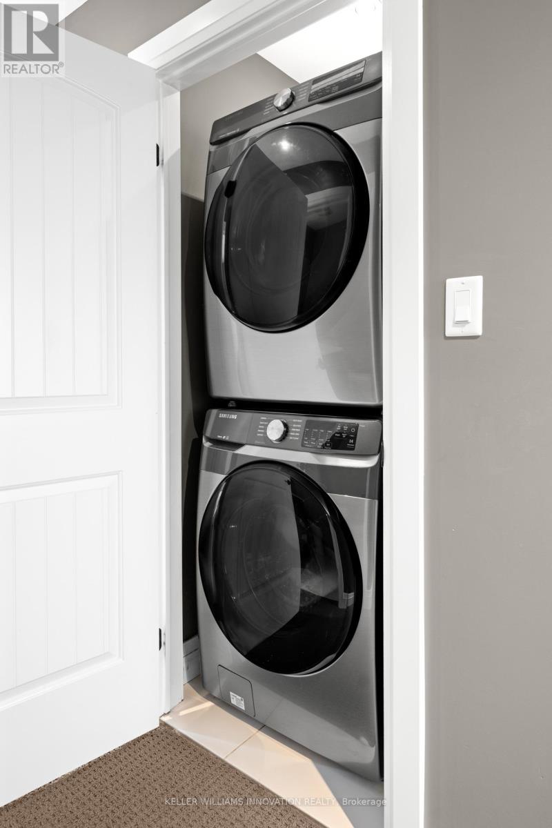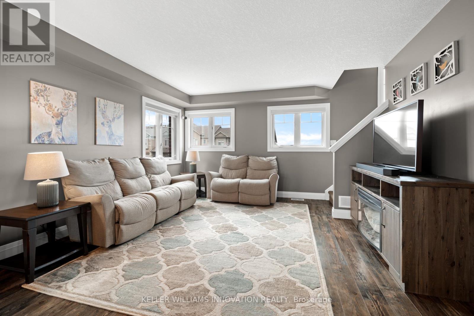Welcome to this beautifully upgraded END-UNIT townhouse offering the perfect blend of space, style, and convenience. Featuring 3 bedrooms, 2.5 bathrooms, and 4 parking spaces, this home is ideal for families, first-time buyers, or anyone looking for stylish, low-maintenance living. One of the standout features of this home is the rare double car garage paired with a double driveway; an exceptional find for a townhouse and perfect for hosting guests without worrying about street parking. The extra space can also double as convenient storage. Inside, you'll find extensive upgrades throughout, including custom real slate tile flooring in the entrance, luxury vinyl flooring on the second level, custom bathroom tile work, and a modern kitchen with quartz countertops with a movable island for flexible entertaining. Upstairs features 3 spacious bedrooms, and 2 bathrooms, which includes a primary bedroom with its own ensuite, another rare feature in a townhouse. The basement also includes a rough-in for a future 4th bathroom and offers extra storage space or a kids play area. Lastly, enjoy low-maintenance outdoor living on your private deck, offering a great space to relax, enjoy your morning coffee or host BBQs. Recent upgrades: KitchenAid Stove + Fridge (2025), AC (May 2024), Washer + Dryer (2023), Phillips hue bridge + lighting system, Custom one piece bathtub + shower (id:64974)