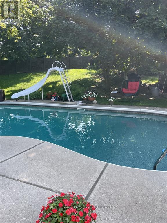 Welcome to this beautiful yellow brick two-storey in the unbeatable, family-friendly neighbourhood of Byron! From the charming covered front porch to the spacious backyard retreat, this home offers the perfect blend of warmth, function, and room to grow. Inside, you'll find hardwood flooring throughout and a bright, inviting living room featuring a stunning bay window. The formal dining room is perfect for hosting, while the eat-in kitchen offers everyday convenience and great flow for busy family life. A cozy family room with fireplace and direct backyard access creates the ideal space for relaxing evenings. The main floor laundry and a 2-piece bath add practical convenience. The upper level offers four generous bedrooms and two full baths, including a primary suite with double closets and an updated 3-piece en-suite. The fully finished basement provides a large recreation room - perfect for movie nights, play space, or a home gym - plus ample storage. Step outside to your own backyard oasis featuring an in-ground pool and a large, treed yard with plenty of space for kids, dogs and entertaining. This is the total package in a sought-after neighbourhood close to schools, parks, and amenities - a true forever family home! Loaded with recent updates including: pool pump and filter approx. 1 year, pool liner approx. 7 yrs, roof approx. 15 yrs, furnace and A/C approx. 12 yrs, electric fireplace approx. 5 yrs, main floor windows approx. 2 yrs, upper primary and ensuite windows approx. 1 yr, all other upper windows approx. 6 yrs, insulation approx. 1 yr, basement flooring approx. 4 yrs, rear fence approx. 5 yrs, exterior doors approx. 2 yrs, upper level interior doors and trim 2026, kitchen backsplash/counters approx. 7 yrs. (id:64974)