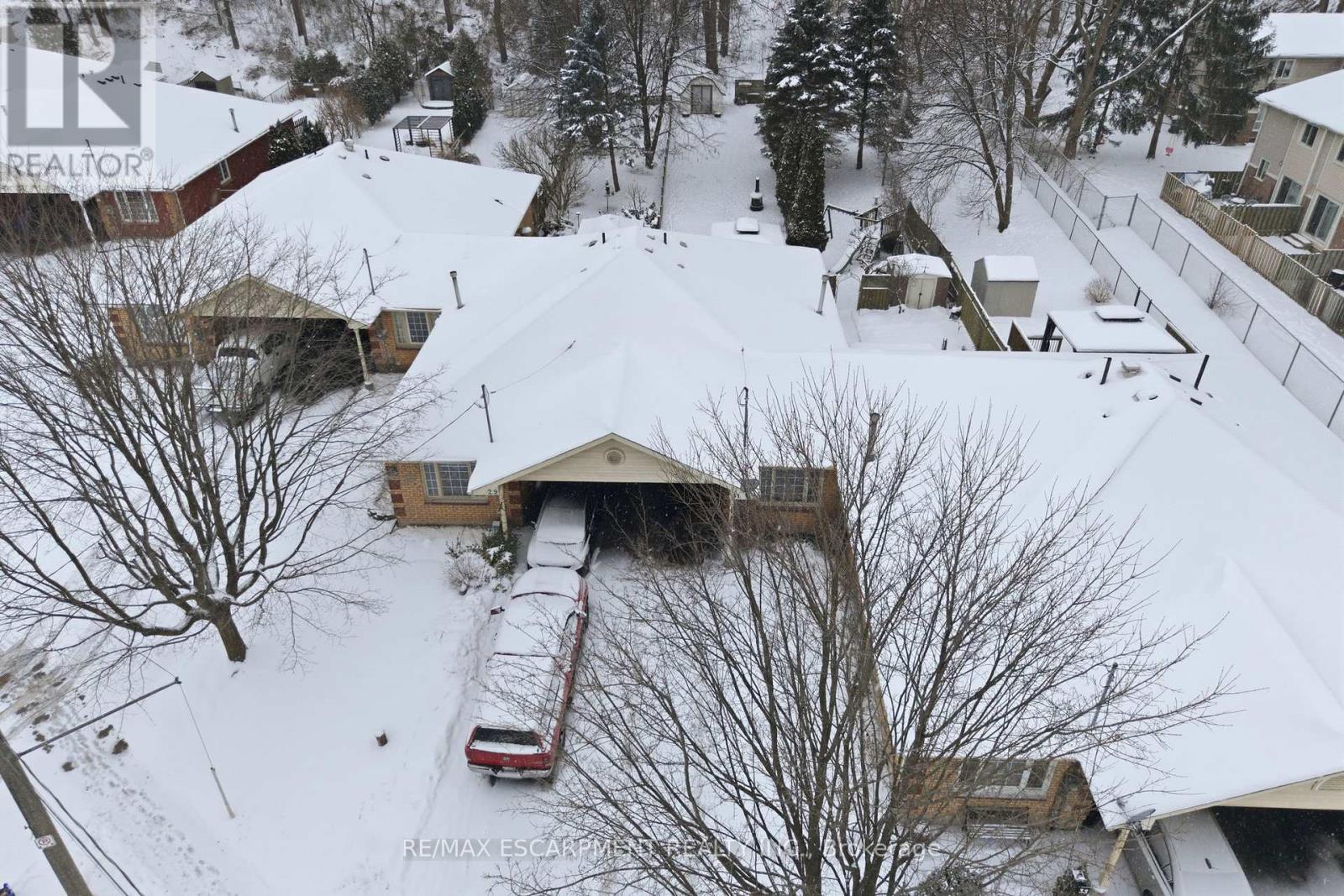 Beautifully nestled on an exceptionally deep lot in the Terrace Hill neighbourhood, this charming and spacious freehold bungalow townhome features 2 bedrooms and 2 full bathrooms. Enjoy a carport as well as additional driveway parking for 2 vehicles. As you enter the home, you're welcomed into the open and bright living room that features an expansive window overlooking the front yard and leads into the dining area. The kitchen offers ample cabinetry and a tasteful backsplash, with some appliances newly updated, including the fridge (2025) and dishwasher (2024). The spacious primary bedroom offers ample closet space and a sliding door walkout to the breathtaking backyard, the perfect spot to enjoy your morning coffee outdoors. The second bedroom is also generously sized with abundant closet space and offers a view of the backyard. Completing the main level is a stunning, renovated 3-piece bathroom and a laundry room with cabinetry. In the basement, you will find a recreation area and a great-sized family room, the ideal spot for enjoying movie nights or game days, two additional rooms ideal for use as a home office, gym or hobby room, a stylish 4-piece bathroom, and abundant storage space. The remarkably deep backyard is the real showstopper! Enjoy an expansive wooden deck with a gazebo and a gas line for the barbecue, a huge green space area, a shed and garden beds, complemented by breathtaking mature trees. This lot soars with beauty in the summertime, and it's the perfect home for families, couples, and those who enjoy entertaining. With many key updates already complete, including the furnace (2025), the hot water tank and the water softener (2023), this home is move-in ready. Located in a cul-de-sac in a family-friendly neighbourhood, this home is close to parks, trails, the scenic Grand River, schools, all amenities, restaurants, highway access, golf courses, downtown Brantford, and so much more. Seize the moment and call this great home and property yours! (id:64974)