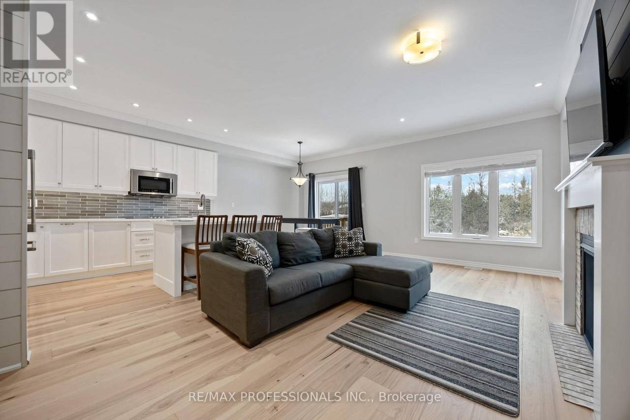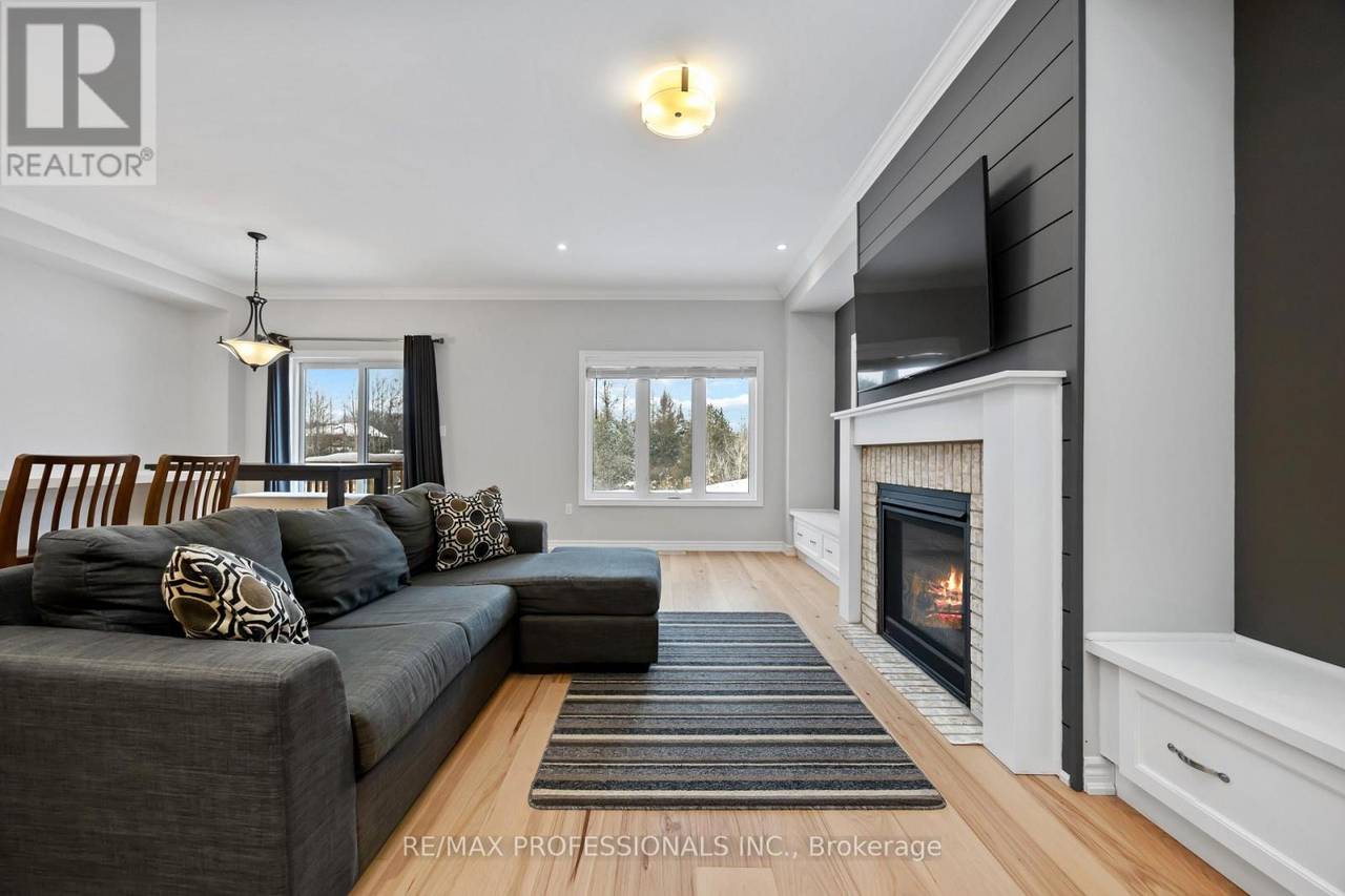Located in the heart of Uxbridge, this thoughtfully upgraded end-unit townhome delivers style, space, and unmatched privacy, backing onto protected green space for a tranquil setting. The home features 3 bedrooms and 4 bathrooms, with wide plank hardwood flooring throughout, & high-end finishes. The living room is warm and inviting, highlighted by a gas fireplace with custom-built in reading alcoves and storage on both sides. The chef-inspired kitchen is beautifully finished with upgraded stainless steel appliances, quartz countertops, and a large island/breakfast bar. The second level offers a spacious primary suite with a walk-in closet, and a 5 piece ensuite bath. The two spacious secondary bedrooms are connected by a 5-piece Jack-and-Jill bath and complemented by conveniently situated upper-level laundry. The property features a finished basement with a separate side entrance, a 3-piece bathroom, and a complete kitchen rough-in-ideal for a future in-law suite. Enjoy a fenced, professionally landscaped backyard oasis, perfect for entertaining, and backing onto protected green space. Conveniently located close to charming shops, box stores, dining options, and all the amenities Uxbridge has to offer. (id:64974)