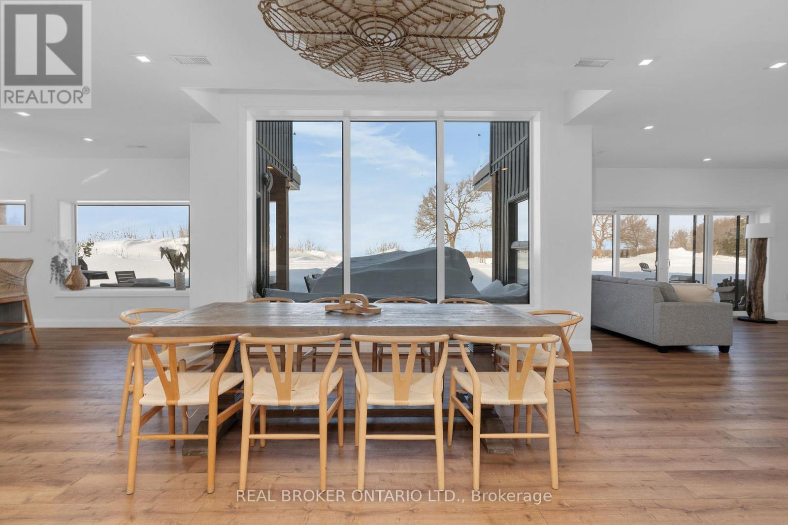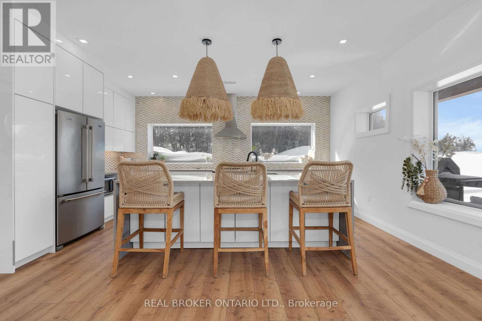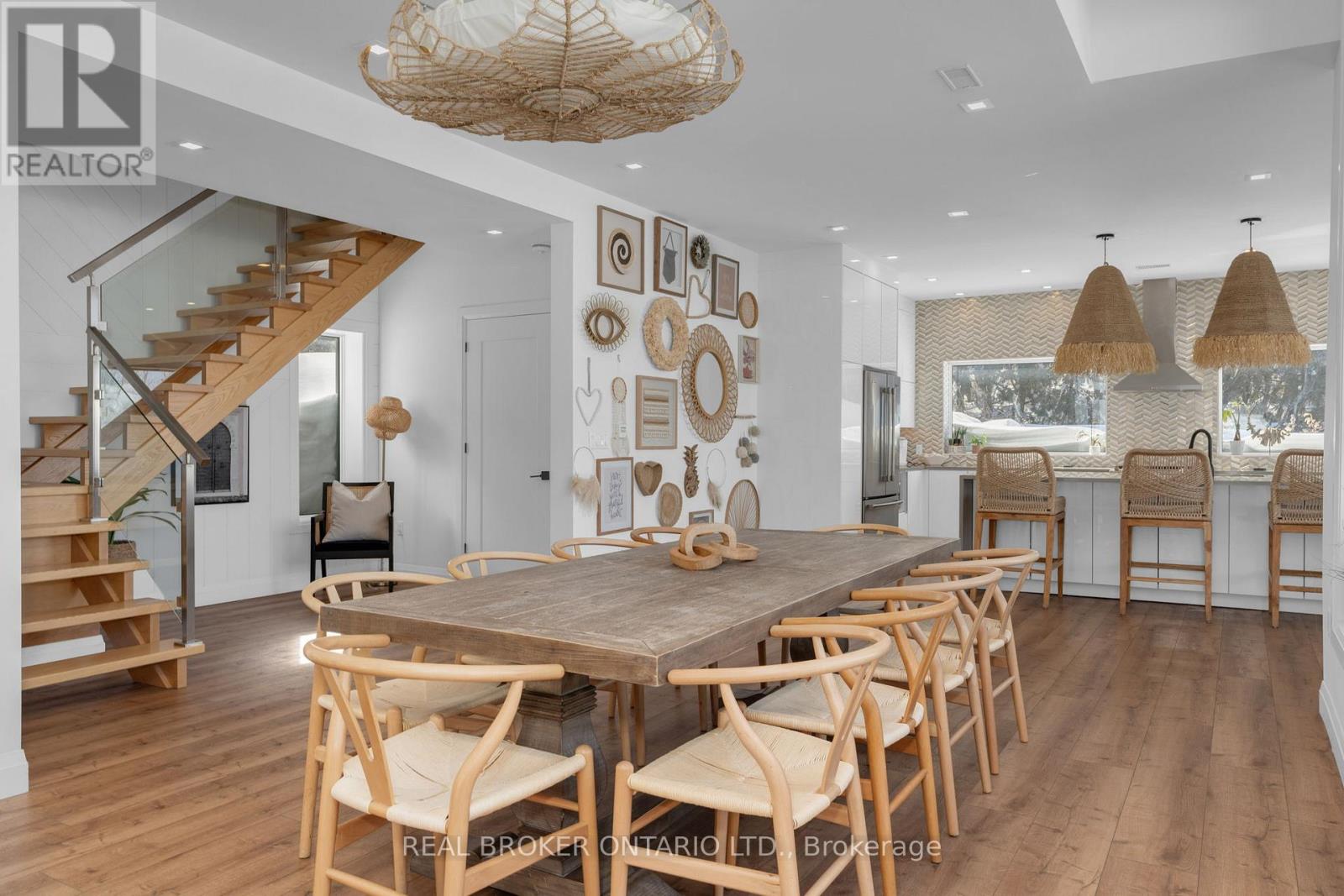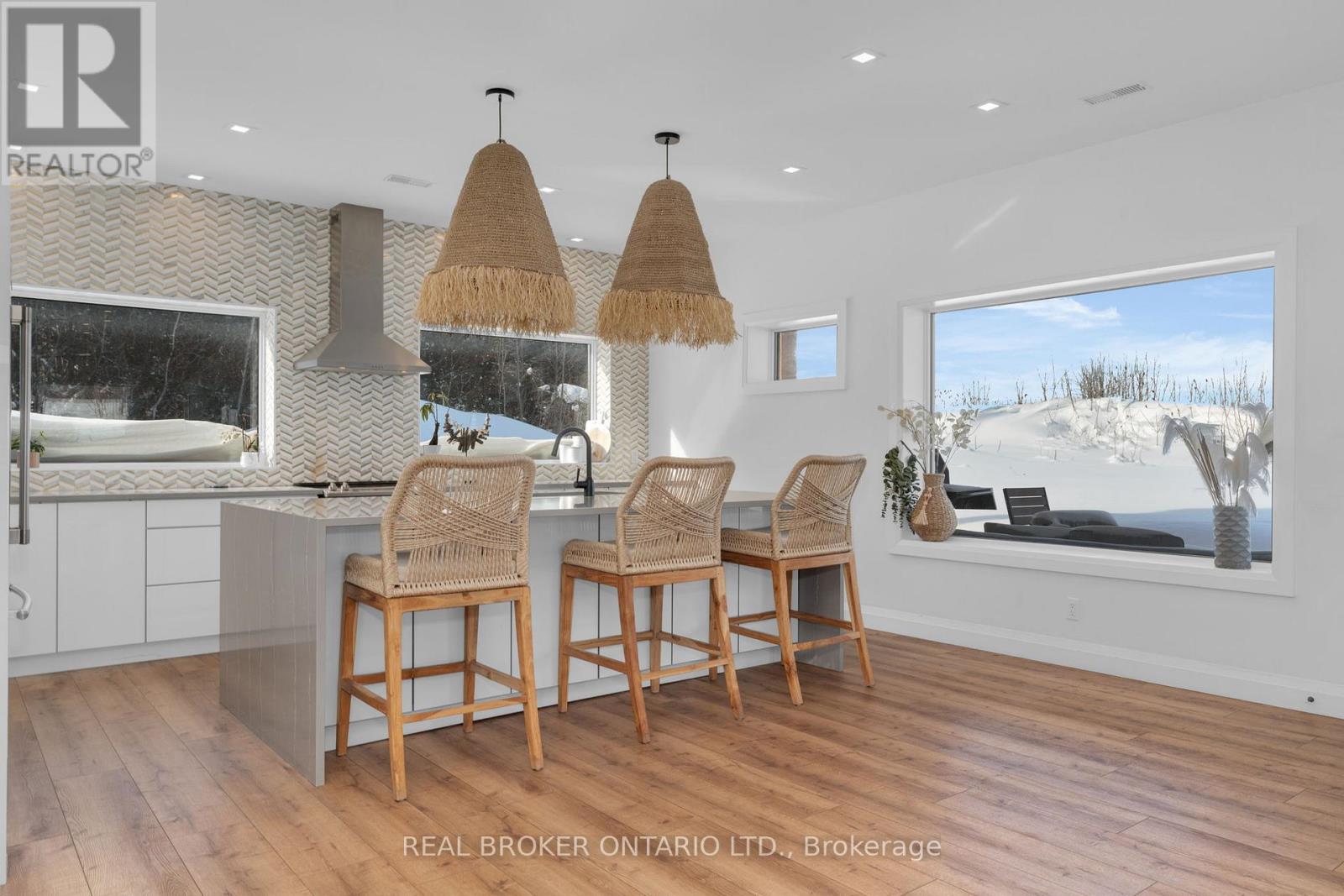 Stunning custom home with views of Georgian Bay at the end of dead-end street on 294-foot-wide lot! This modern cross bohemian home is straight out of a magazine on over 0.5 of an acre. The main level is vast and open with 9-foot ceilings, a great room with plenty of windows and patio doors out to the wraparound interlocked patio and of course a cozy fireplace. The dining room has main to 2nd floor windows and will suit all of your family gatherings (as will the driveway for parking). Onto the oversized custom kitchen with tons of cabinet space, Cambrian quartz waterfall island and countertops and sleek herringbone mosaic backsplash. There is also access to the yard from the kitchen which is perfect for barbequing or just hanging outside with loved ones. This floor finishes up with the main floor laundry and large storage area, powder room and walk-in closet. Up the open staircase and glass railing you reach the 2nd floor where the 9-foot ceilings continue (the home is ICF). A flex space is perfect for the kids to get away from the parents or could be used as an office space with Juliette down to below and a massive window facingthe vast waterfront. An ideal spot to watch all of the windsurfers and boats go by. Four large bedrooms on this level with vinyl and heated floors all with at least a double closet, if not two doubles. Two full bathrooms, each with 5-pieces (dual vanities) and two covered balconies (with composite decking) facing the water perfect for the pink and purple regular sunsets. Enjoy nature at your doorstep with tons of trees, the Tay Trail with over 18 kilometer's to explore or Waubaushene Beach and Pier just a short walk away. 5 minutes to 400 HWY, LCBO and Tim Hortons, 30 minutes to Barrie, 80 minutes to Pearson Airport. Waubaushene's quiet loving town will win you over. Painted with Benjamin Moore March 2025. Driveway 2025 (crusher run) (id:64974)