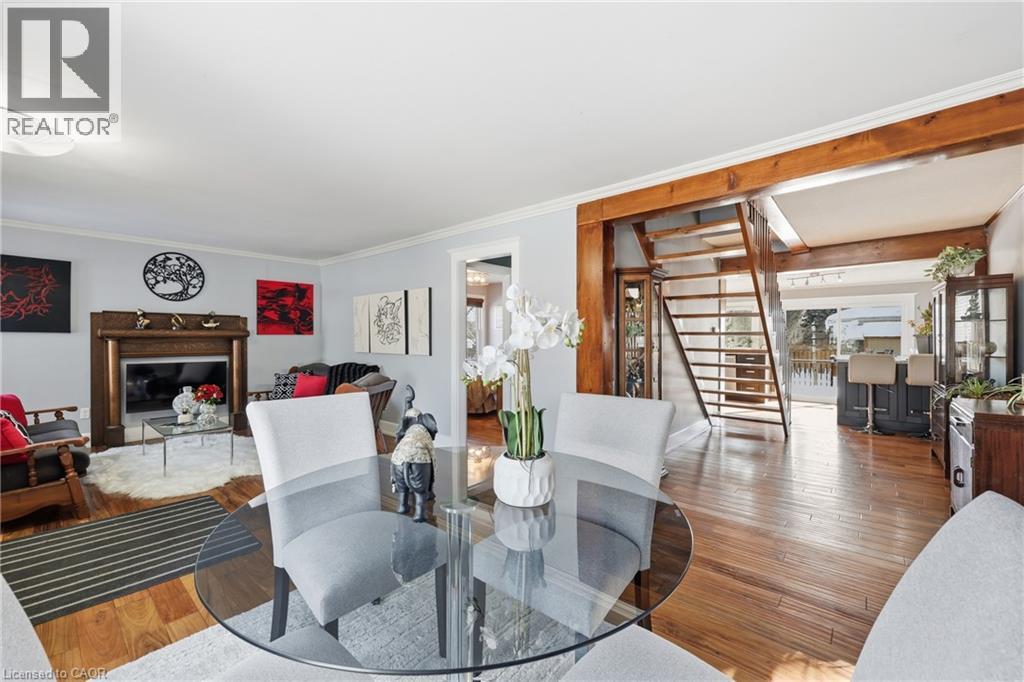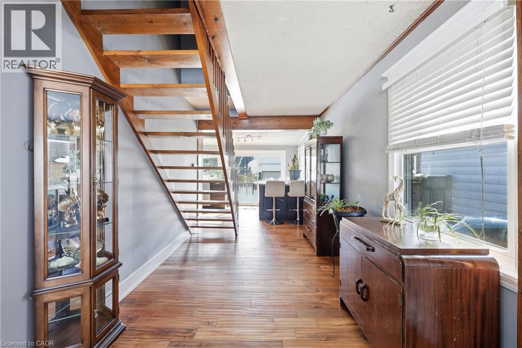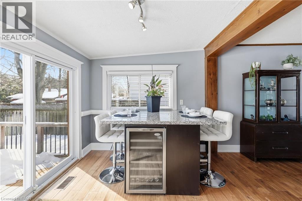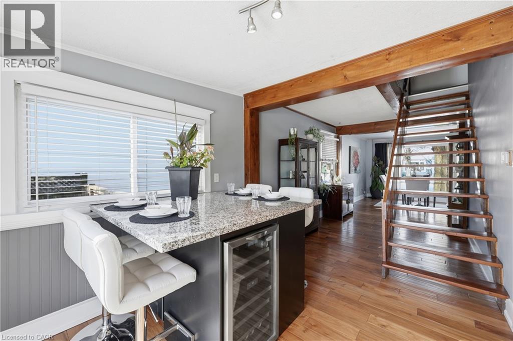 Located on a premium lot in desirable Dundas, this charming home offers three levels of fully finished living space on a quiet street with exceptional walkability, just minutes from McMaster University and downtown Dundas. Ideal for families, downsizers, or investors seeking flexibility in a highly sought-after community. The enclosed foyer welcomes you into a bright open-concept living and dining area, highlighted by a large picture window that fills the space with natural light. The main floor features a comfortable bedroom and an updated 4-piece bath, providing the convenience of one-level living. At the heart of the home, the functional kitchen is designed for gathering, featuring granite countertops, upgraded appliances, and an oversized island with built-in wine fridge, all overlooking the private, fully fenced backyard. The refurbished deck (2025) extends the living space outdoors—perfect for morning coffee, summer dinners, and entertaining. Hardwood flooring runs throughout the main and upper levels, adding warmth and continuity. Upstairs, you’ll find three inviting bedrooms, including a primary suite with a private 2-piece ensuite. The fully finished basement with a separate entrance and new carpeting (2025) adds valuable additional living space, including a recreation room, office area, and a flexible fifth room ideal for guests or in-law potential. Recent updates include furnace (2024), basement waterproofing (2021), water heater (2026) and second level windows (2024). Classic wood siding enhances curb appeal, complemented by a long three-car driveway and a large newer shed (2021). Enjoy proximity to Dundas Driving Park with trails, playgrounds, and green space, as well as easy access to Westdale Village, downtown Hamilton, Highway 403, and Hamilton & Aldershot GO stations. A true turn-key property offering comfort, convenience, and long-term value in one of Dundas’ most desirable neighbourhoods. (id:64974)