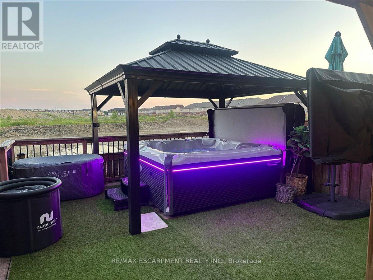 Welcome to 31 Mayland Trail - a home that has been deeply loved and thoughtfully enjoyed, now ready for its next chapter. This 3 bedroom, 4 bathroom home offers the open-concept layout today's buyers are looking for - bright, functional and designed for real life. The main floor flows seamlessly between kitchen, dining and living spaces, creating a layout that makes both everyday living and entertaining effortless. Upstairs features three bedrooms including a private primary suite, and with four bathrooms in total, there's flexibility and convenience for family and guests alike. What truly sets this property apart is the backyard lifestyle. Backing onto a peaceful pond with no direct rear neighbours, the setting offers open views year-round. A newly added hot tub sits under a covered gazebo with wiring and setup in place for a mounted outdoor TV - making it an easy go-to for relaxing or entertaining in any season. In the winter, the owners have enjoyed watching hockey games from the hot tub while neighbours skate and play on the frozen pond behind. It's a setup that's hard to replicate - and even harder to leave. The backyard also features a professionally levelled deck, thoughtfully designed to maximize usable space - a standout feature compared to neighbouring properties. The pond has been recently refreshed, enhancing the overall setting and view. Located in a highly desirable Stoney Creek Mountain neighbourhood close to schools, parks, trails, shopping and highway access, this home offers an exceptional balance of comfort, community and lifestyle. The sellers aren't leaving because they don't love it - life simply calls for a new direction. Now it's ready for the next family to create their own memories here. (id:64974)