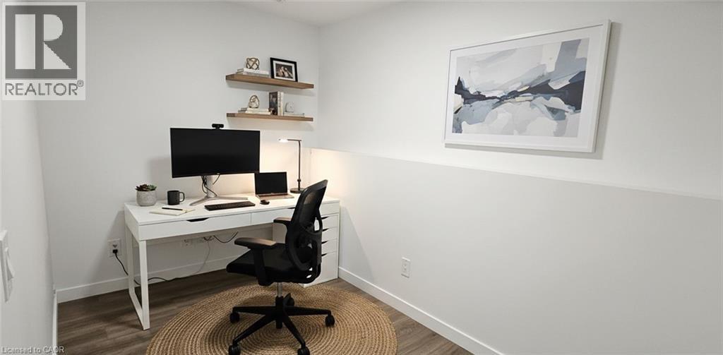 FOR LEASE IN THE VIBRANT NEW VIVA COMMUNITY. Experience modern living at VIVA, the newest and brightest addition to Downtown Kitchener. Located on Mill Street, this exclusive community offers the perfect balance of nature, neighbourhood, and nightlife. Step outside and instantly connect with the Iron Horse Trail—ideal for walking, running, and cycling—and enjoy quick access to parks, green spaces, the iON LRT, and all the vibrant amenities that downtown has to offer. Victoria Park is also just moments away, featuring scenic grounds, recreation areas, and seasonal activities. This beautifully crafted Monstera END model stacked townhome features a bright open-concept main floor designed for both comfort and entertaining. The kitchen is thoughtfully appointed with quartz countertops, a breakfast bar, stainless steel appliances, and ceramic and luxury vinyl plank flooring throughout. Offering 1114 sq. ft., this unit includes 1 bedroom + a den—perfect for a home office or reading nook—and 1.5 bathrooms. Live in a professionally landscaped community where peaceful residential living meets the convenience of city life. Whether you’re grabbing your morning coffee, running errands, or heading to yoga in the park, everything is within reach. Heat, hydro, water, and hot water heater are to be paid by the tenant(s). Good credit is required, and a full application must be submitted. AVAILABLE immediately! Photos are virtually staged AND a likeness from the interior unit. (id:64974)